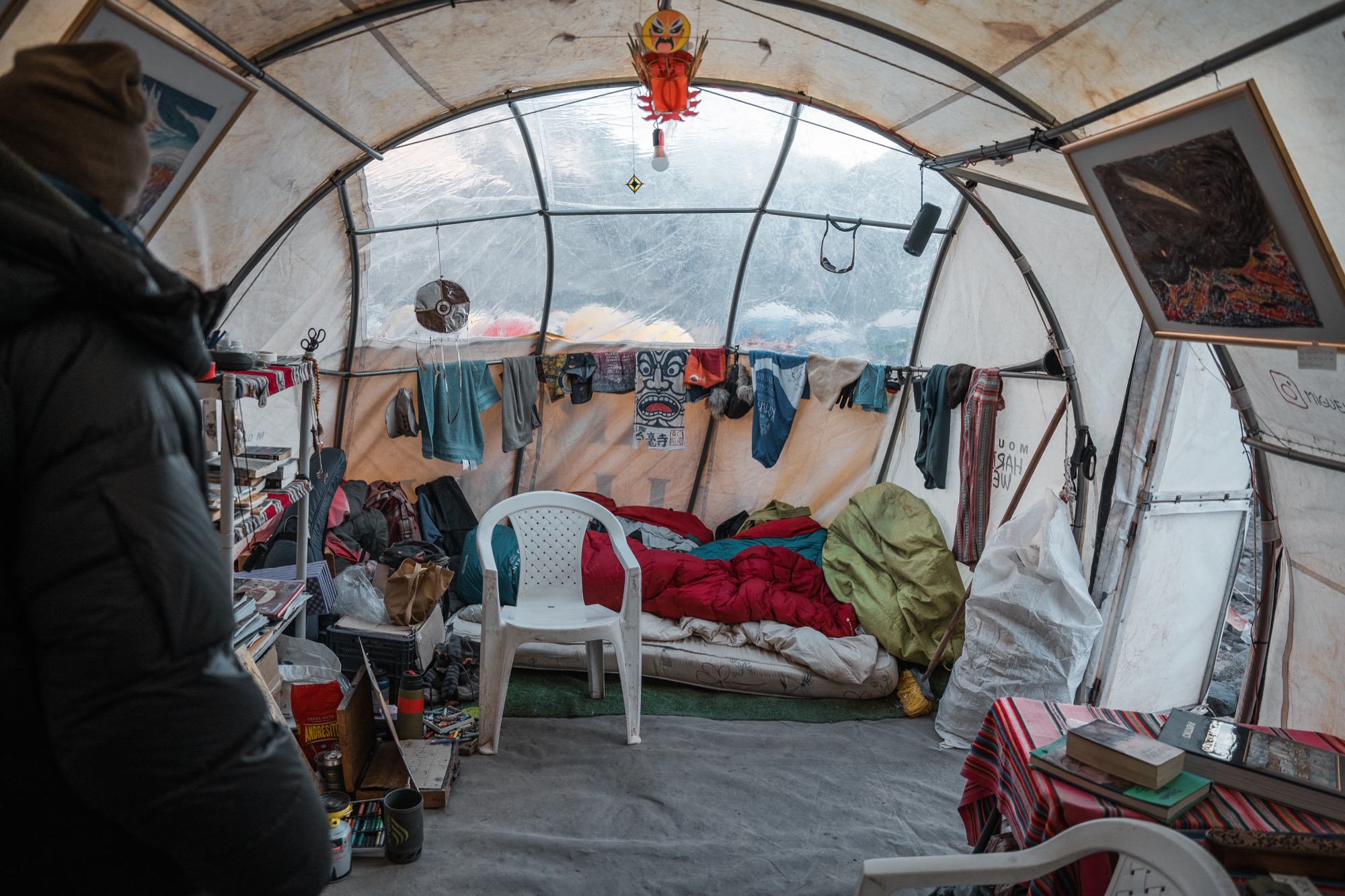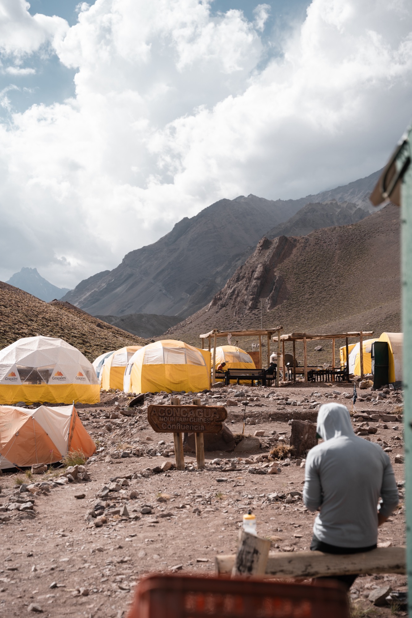 Plaza del Mulas это огромный альпинисткий городок, где есть и минигоспиталь и глемпинг от нескольких компаний, и даже есть своя арт-галерея местного художника Мигеля.