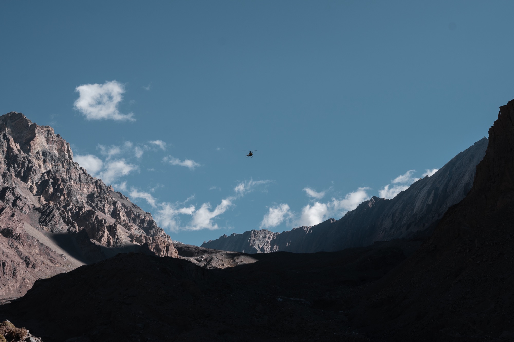 Спустя 3 часа после выхода мы достигли второго лагеря - Канада (5000 метров), поставили палатку и сложили в неё заброску. Немного поднявшись чуть выше, мы быстро спустились глиссером по сыпухе в лагерь на 4300 м.