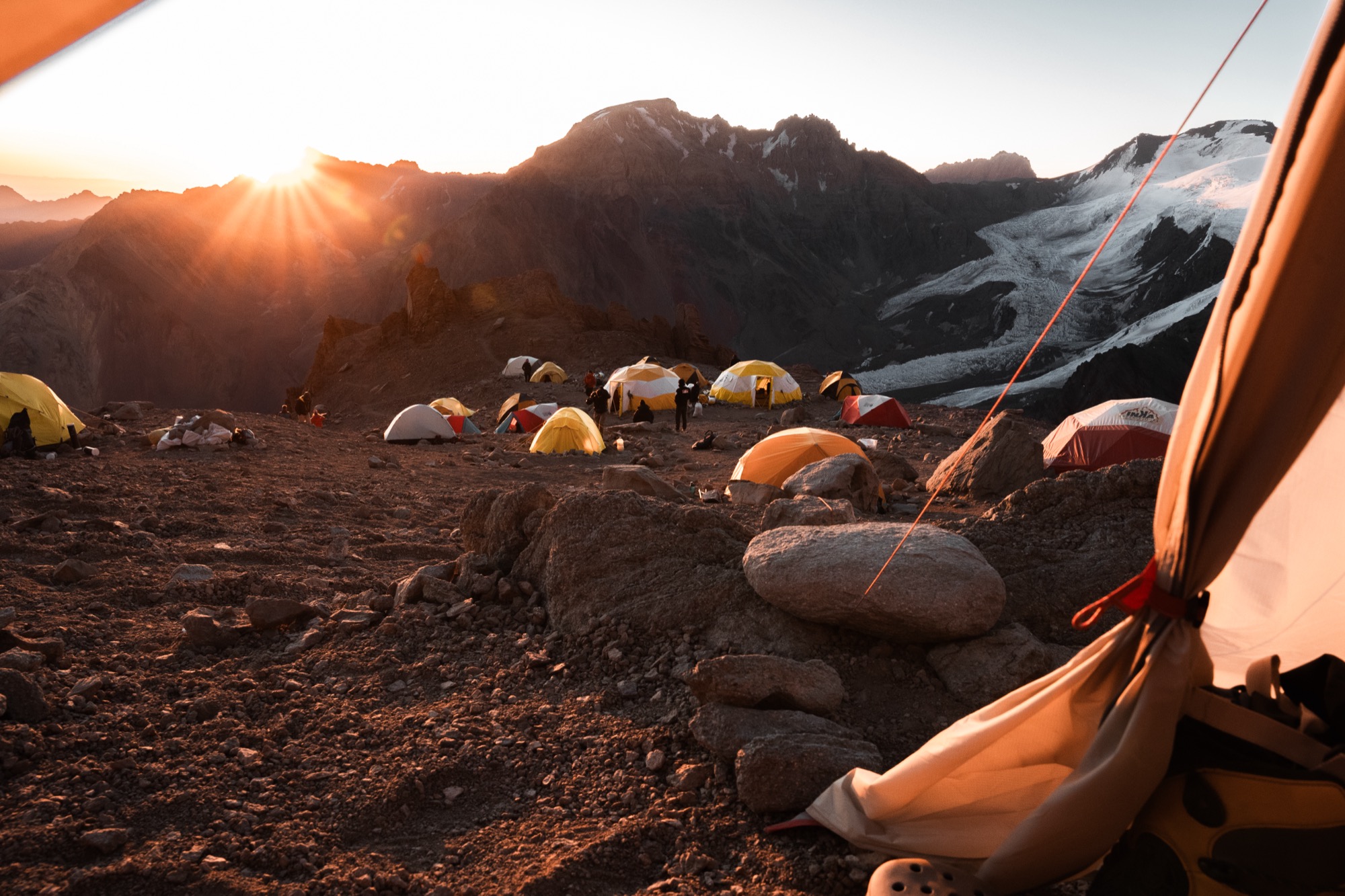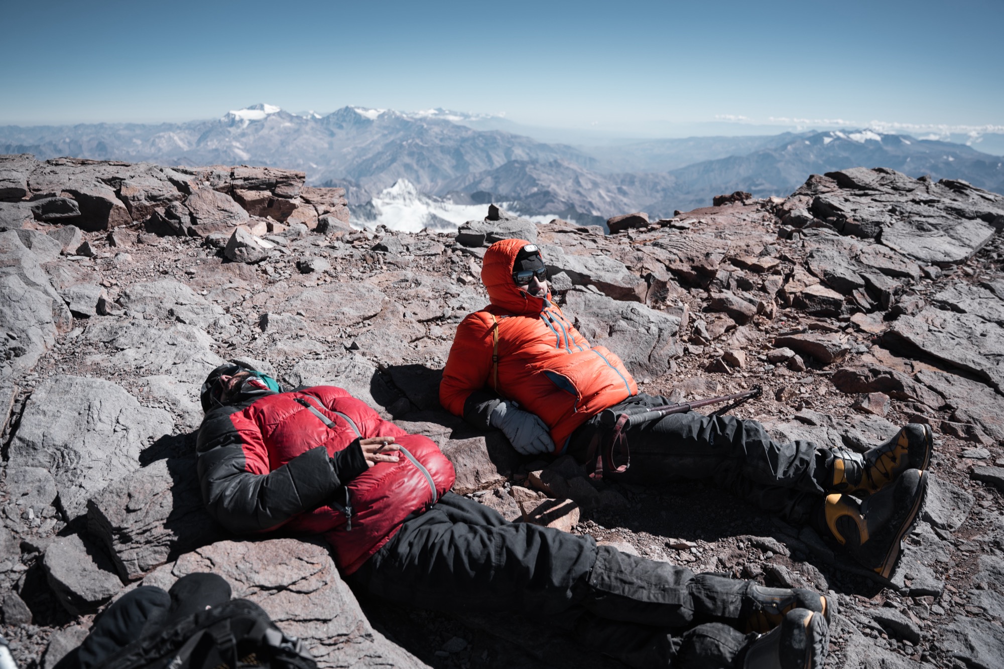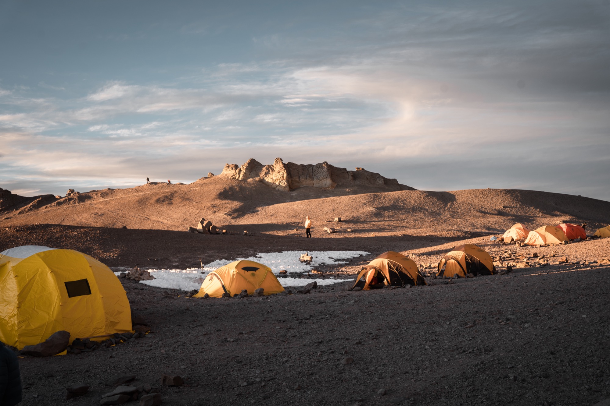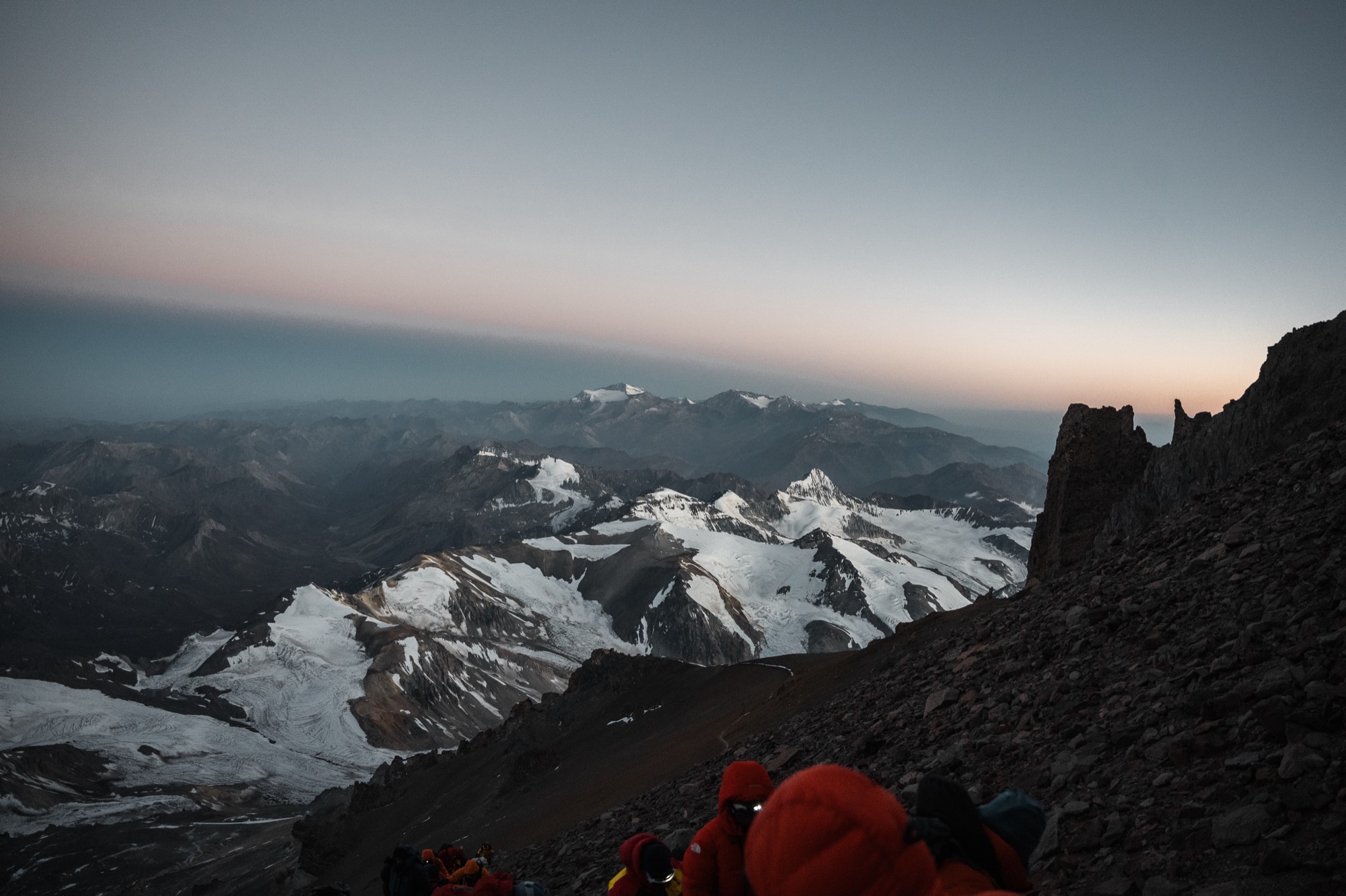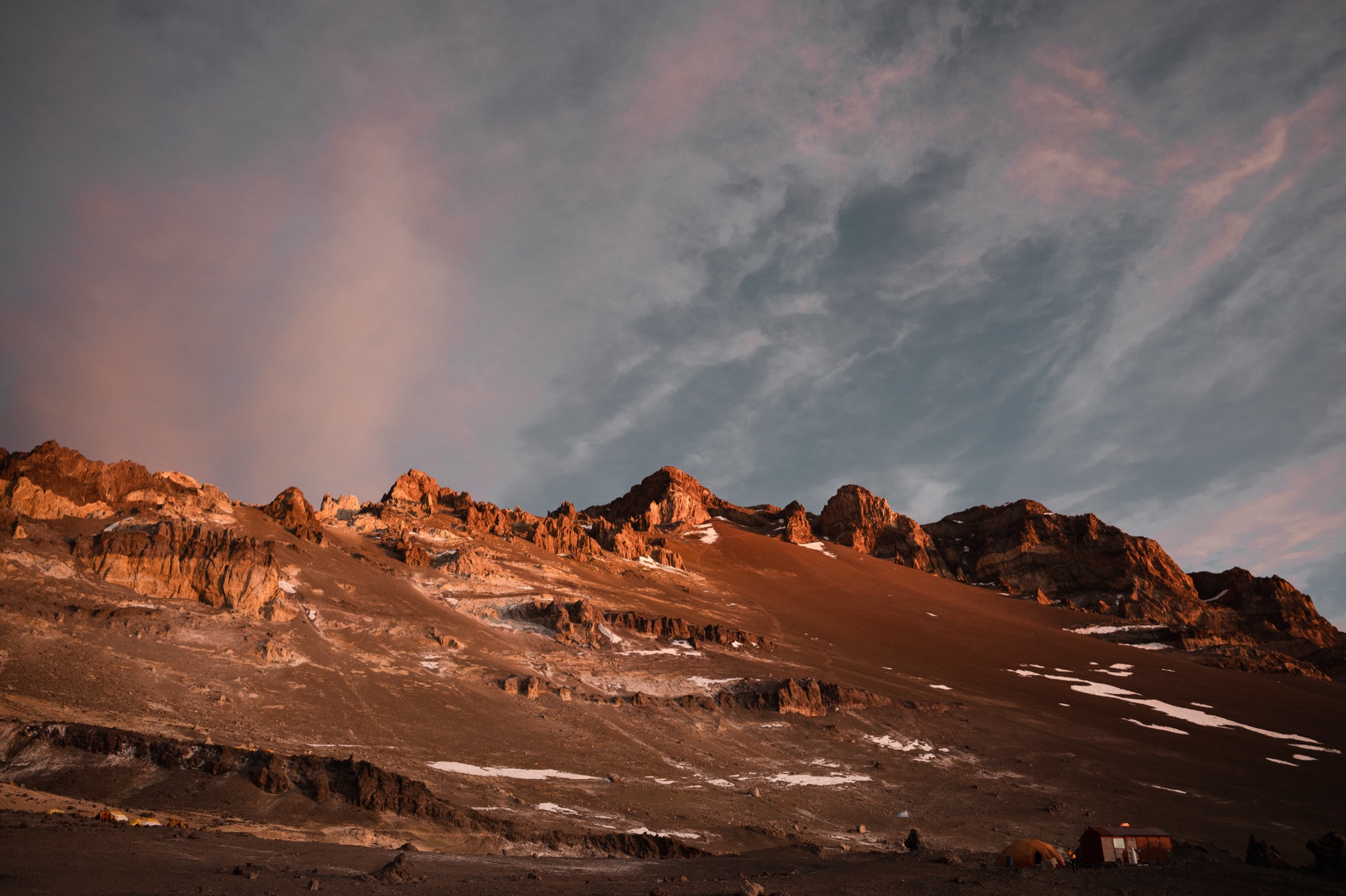 Пришли в лагерь на 5900м к обеду, отдохнули, собрали палатку и спустились на 5500 в лагерь Нидо де Кондорас. Сил и желания спускаться дальше уже не было. Да и не хотелось пропустить такой закат:
