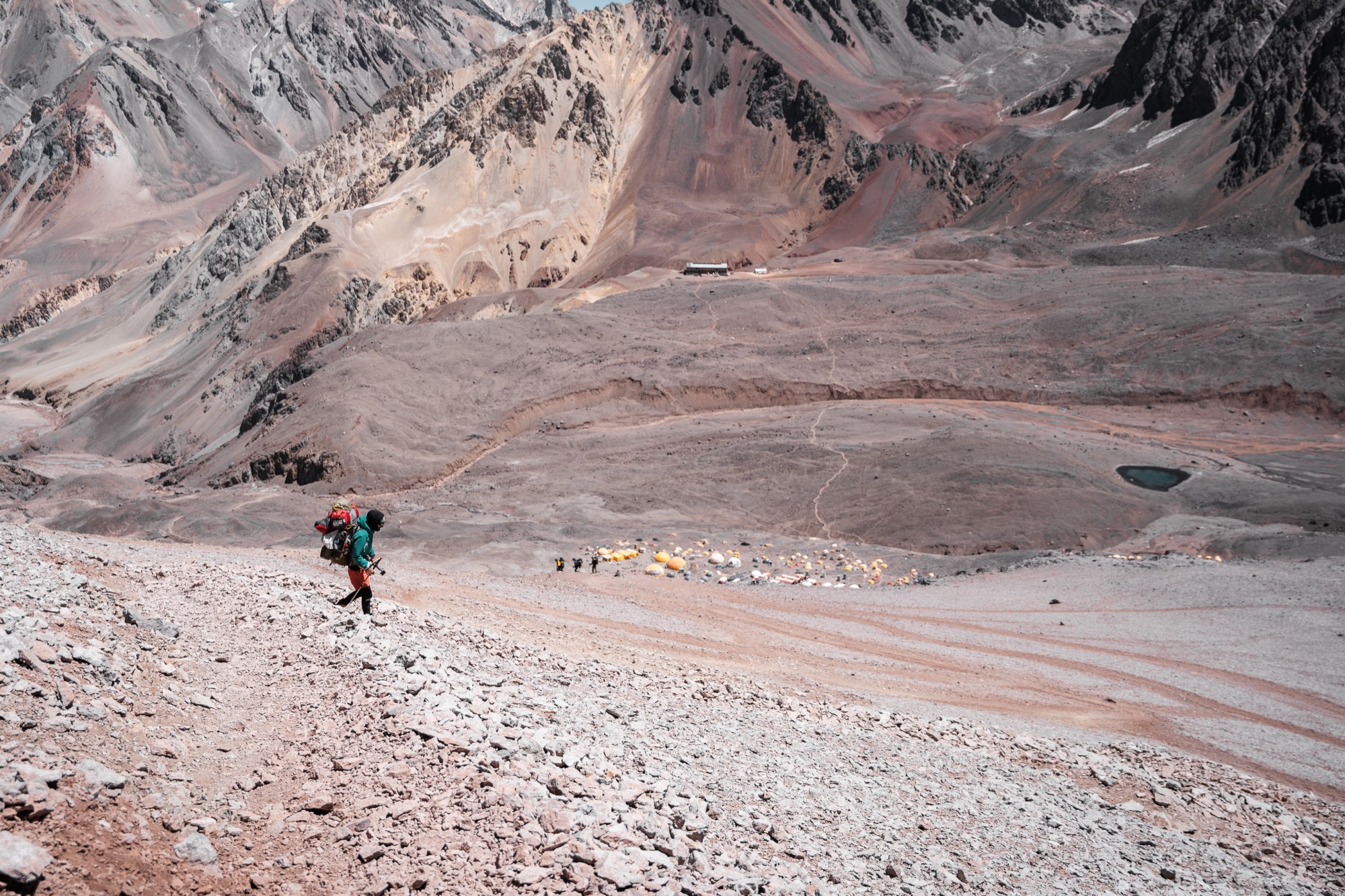 По настоящему доброе утро: проснулись с мыслью, что вчера поднялись на вершину Аконкагуа. Очень радостное утро. Но нужно спускаться. Собрали палатку, забрали весь наш мусор (в том числе и пакетик с органикой) и выдвинулись в путь