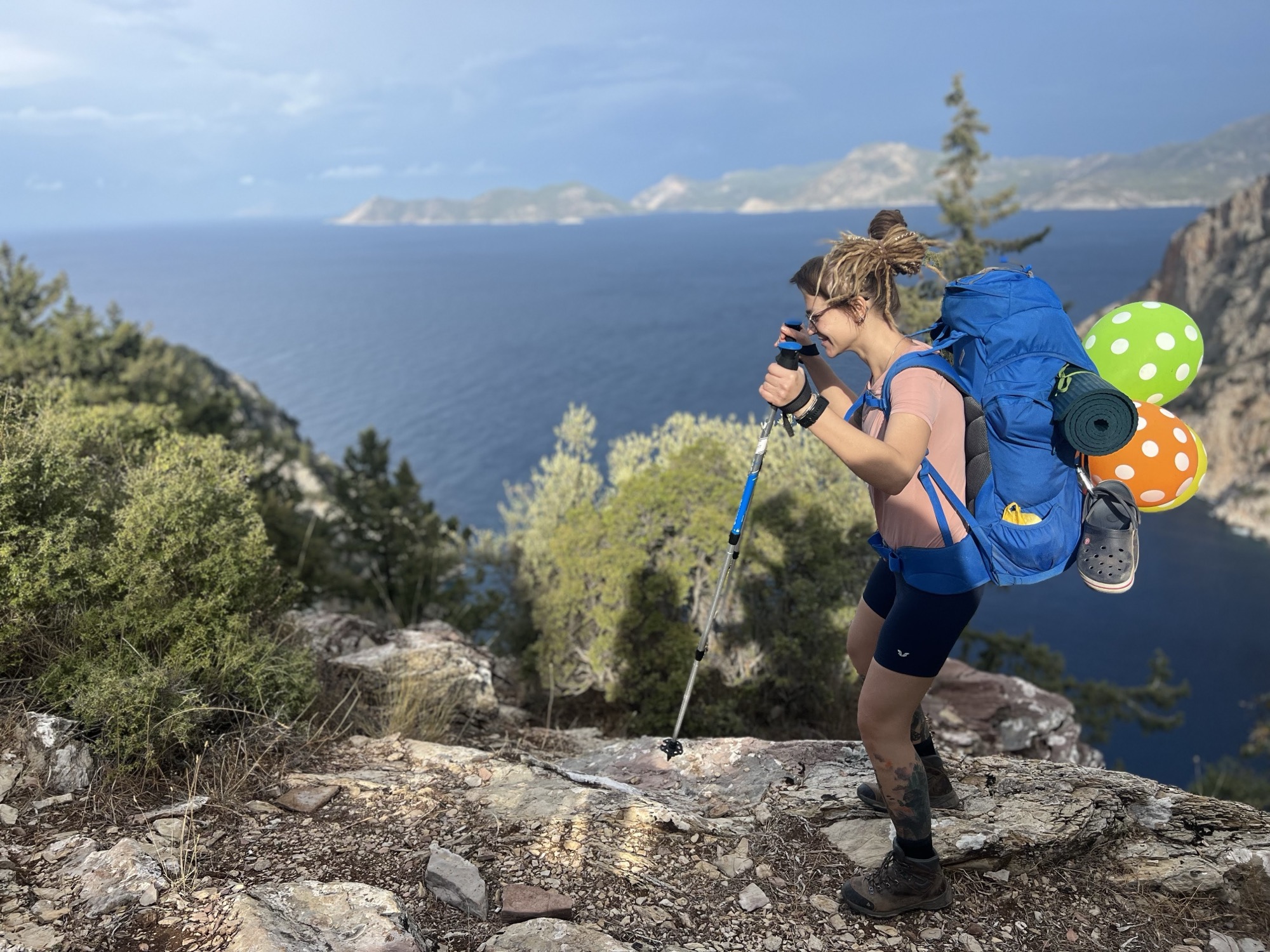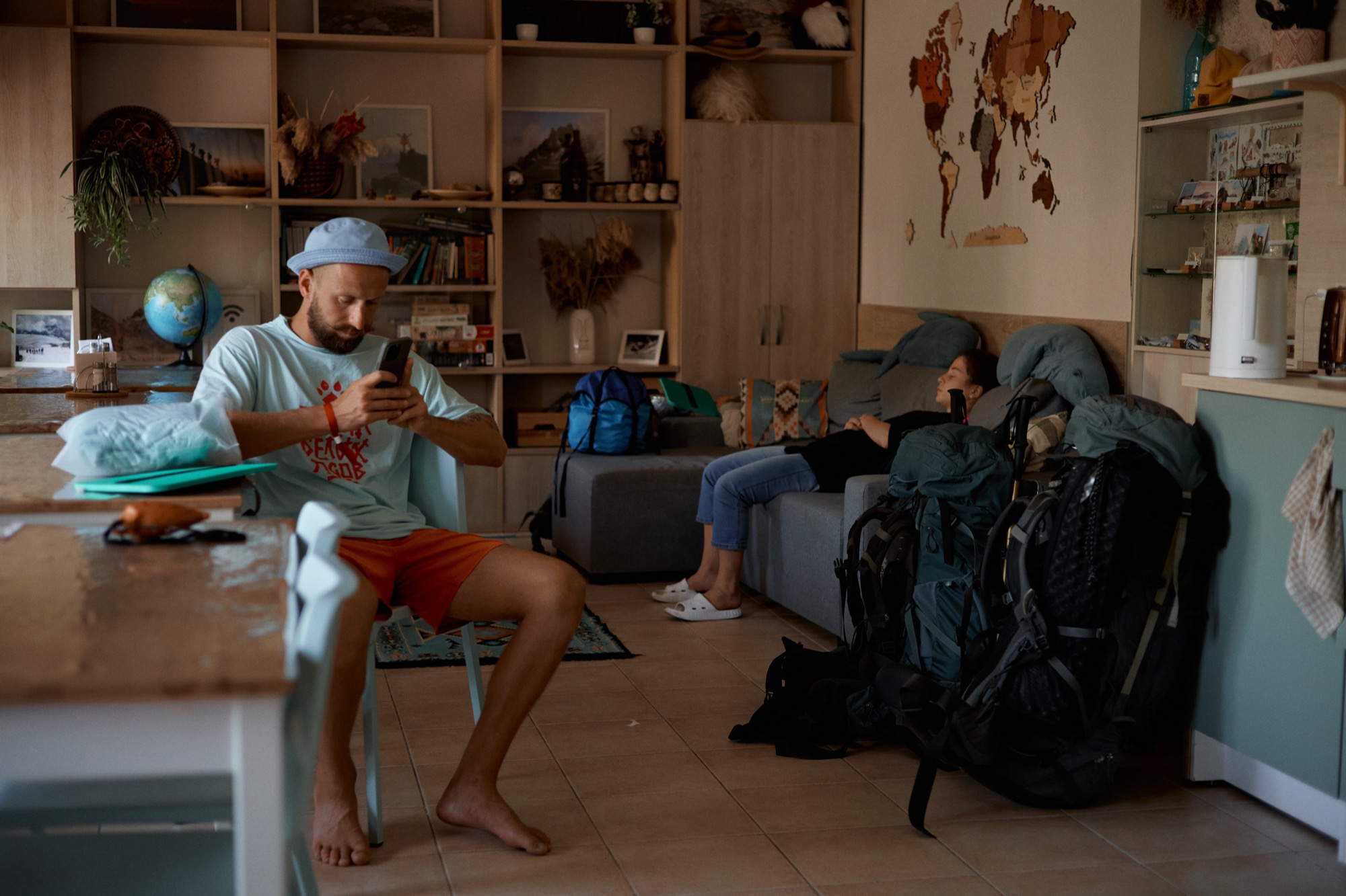 Все необходимые в пути вещи: мембрана, флиска, дождевик (если есть прогноз дождя), сменная обувь (кроксы). А также сюда идут хрупкие вещи, такие как: косметика, посуда (КЛМН)
