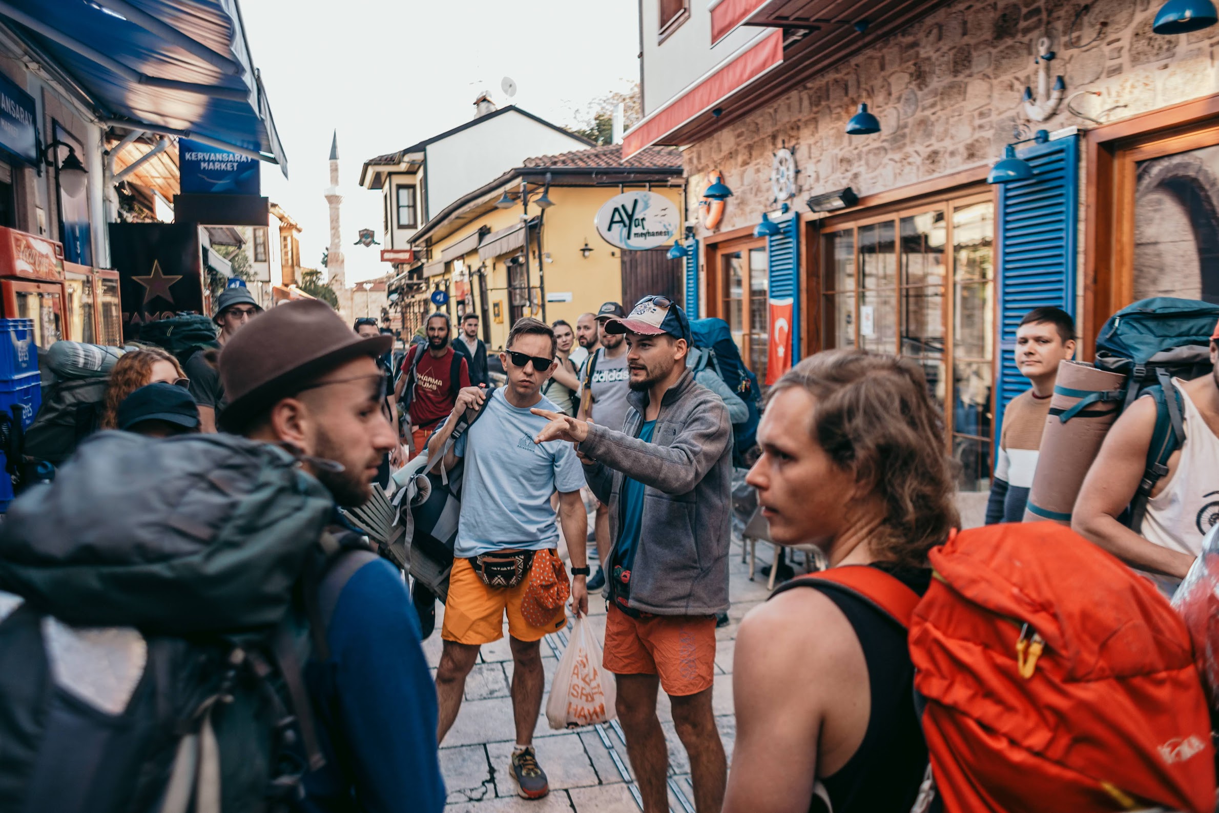После официальной части знакомства, инструктажа и раздачи футболок тусовка плавно перетекла в соседние бары. На рюкзаки, снаряжение и прочие "мелочи" всем было уже плевать. Это ж Ликийка)) К 3-ём часам ночи вроде все угомонились и я тоже пошёл спать. Или кто-то принёс еще бутылку вина...не помню уже :))