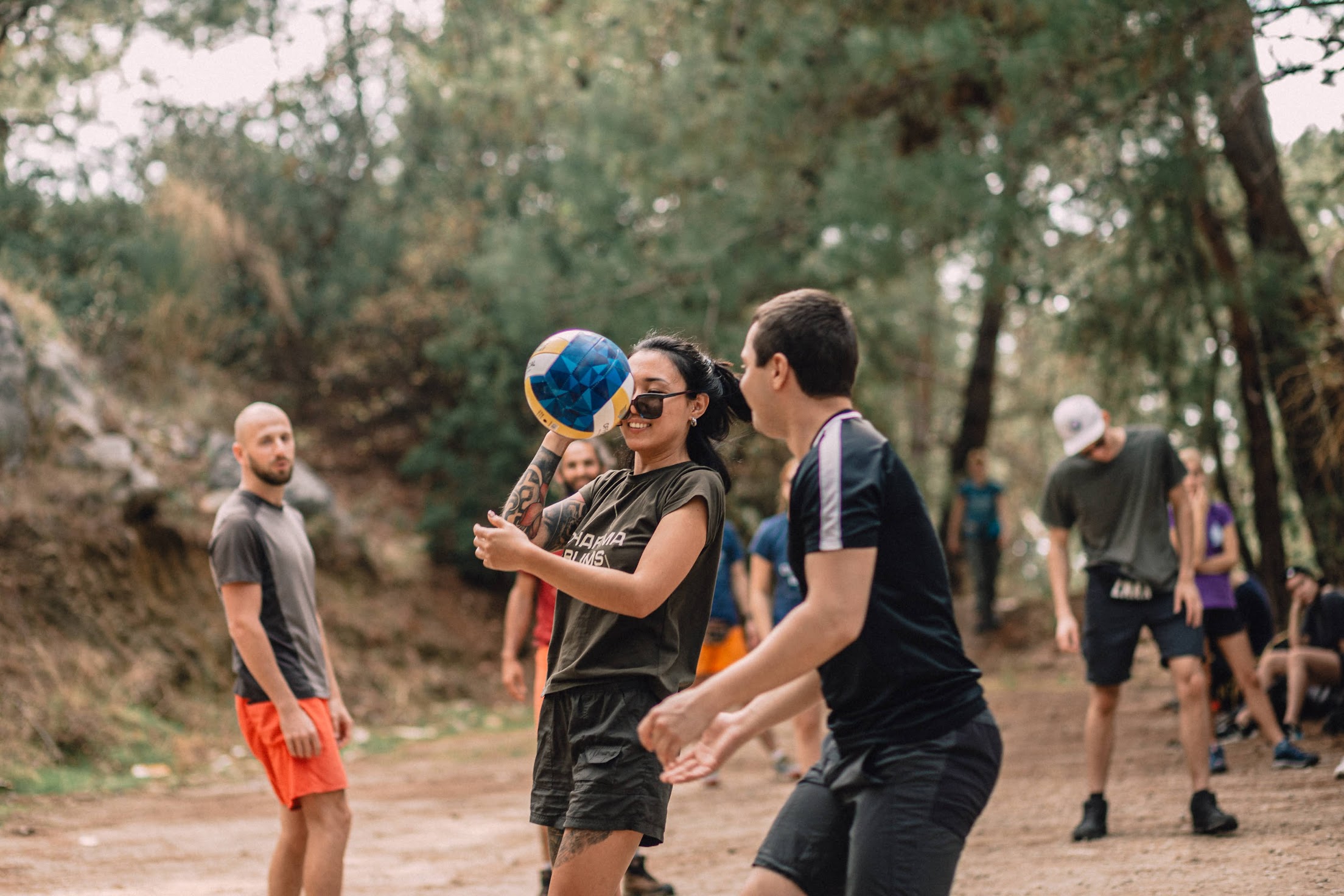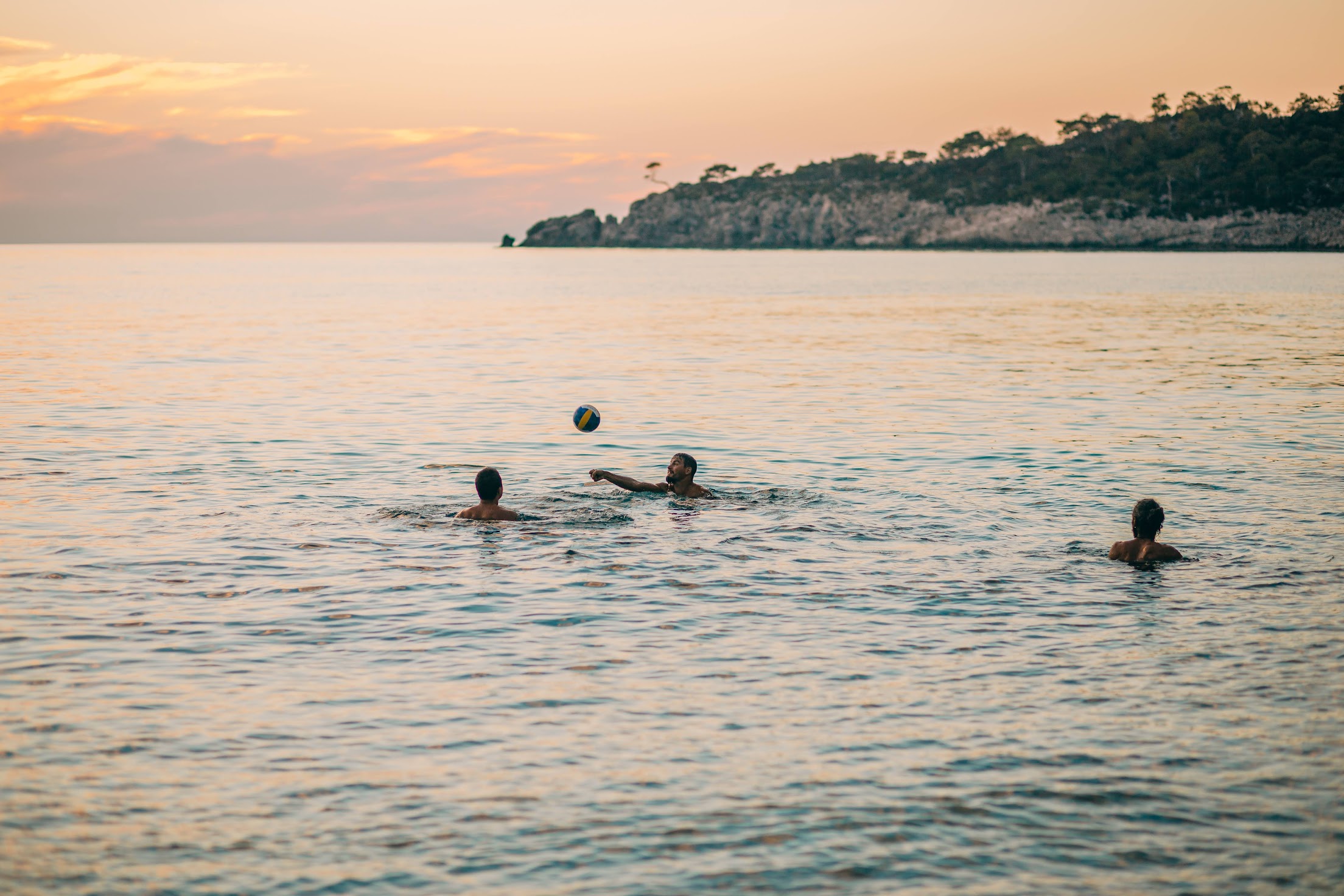 Мы взяли с собой волейбольный мяч, чему я был очень рад