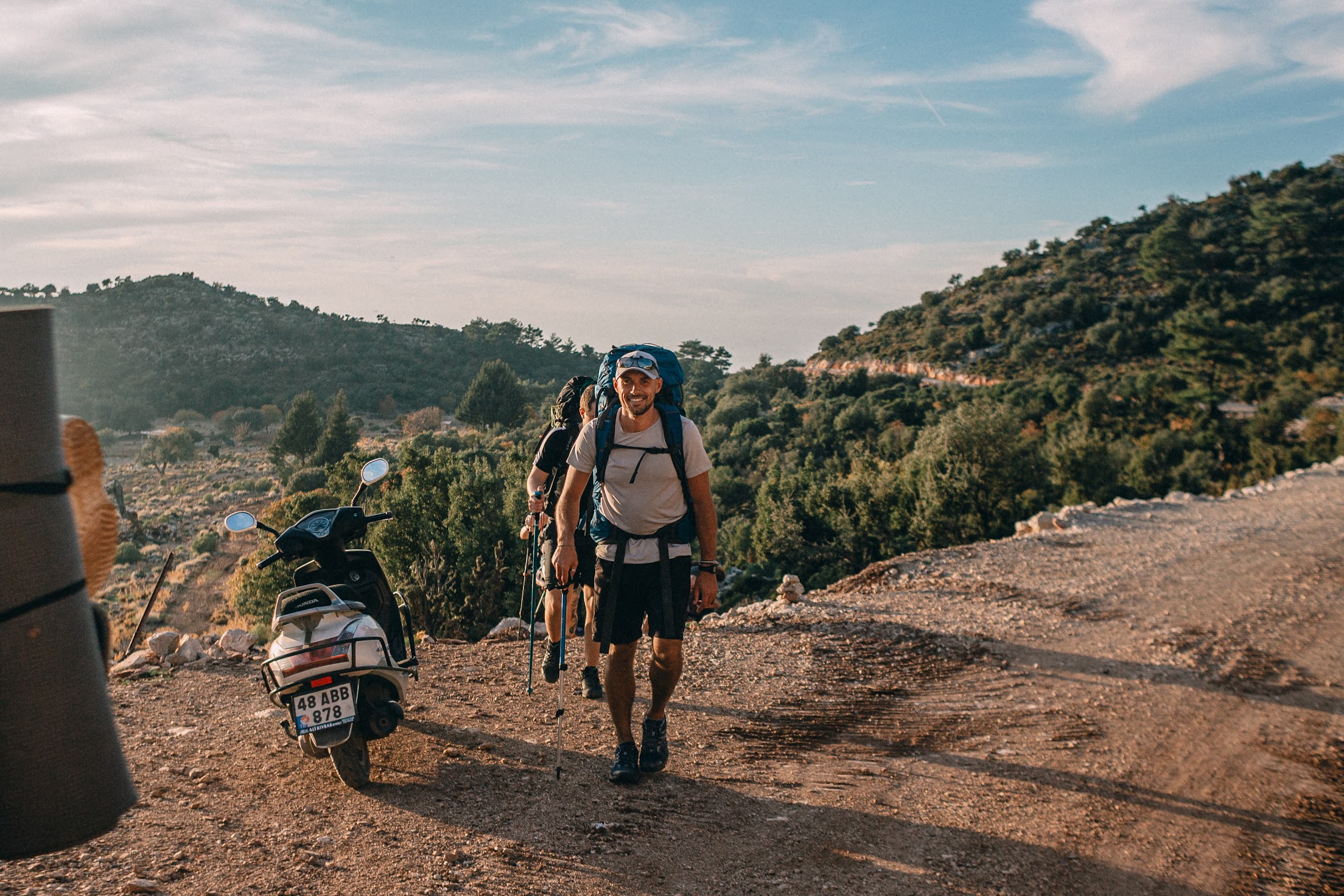 Нужно было преодолеть перевал, но он простой и идти надо преимущественно по дороге. Это те места, где мы можем идти (и ехать) в полном составе. Да да, вы не забыли про Олега?
