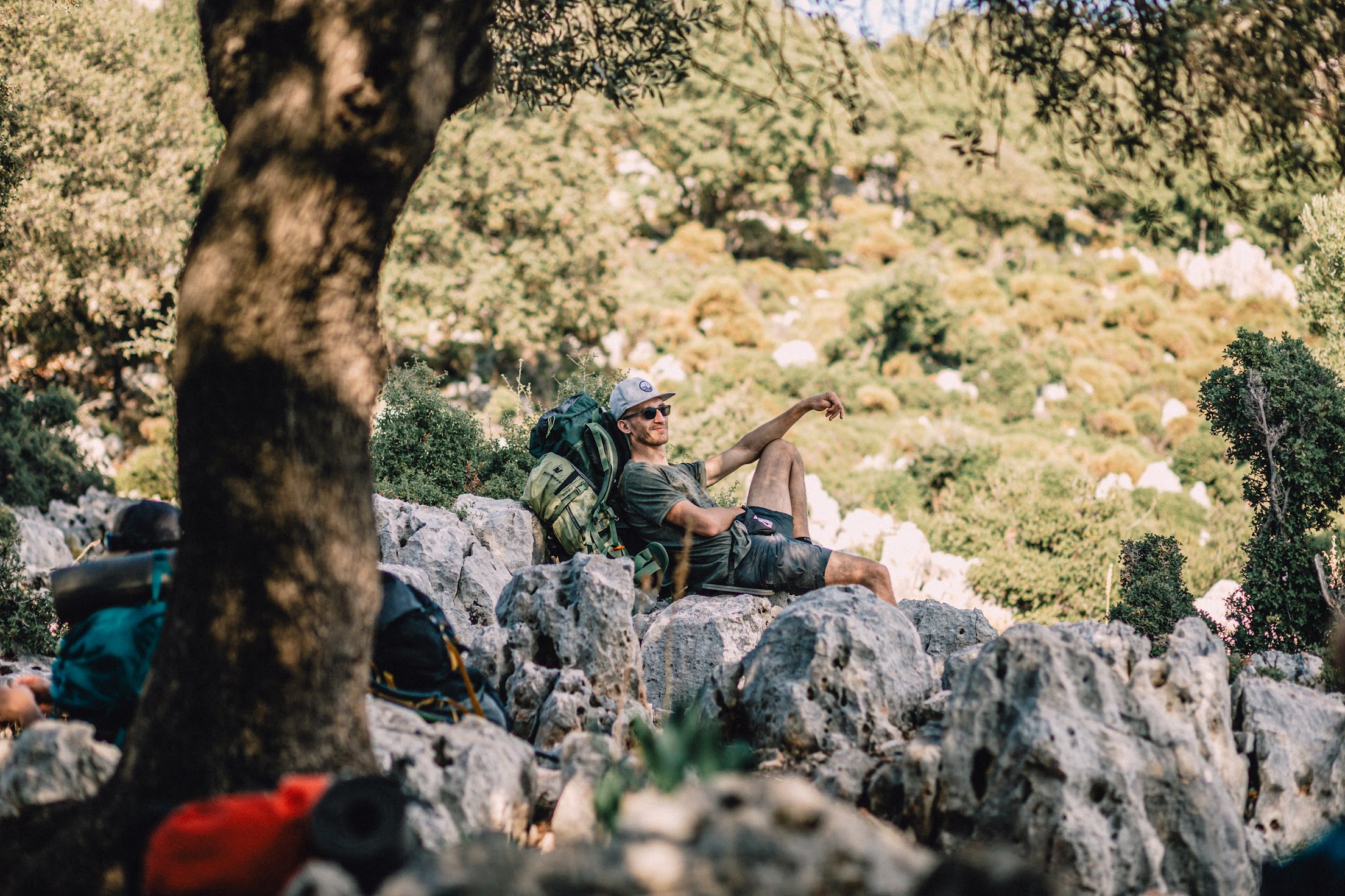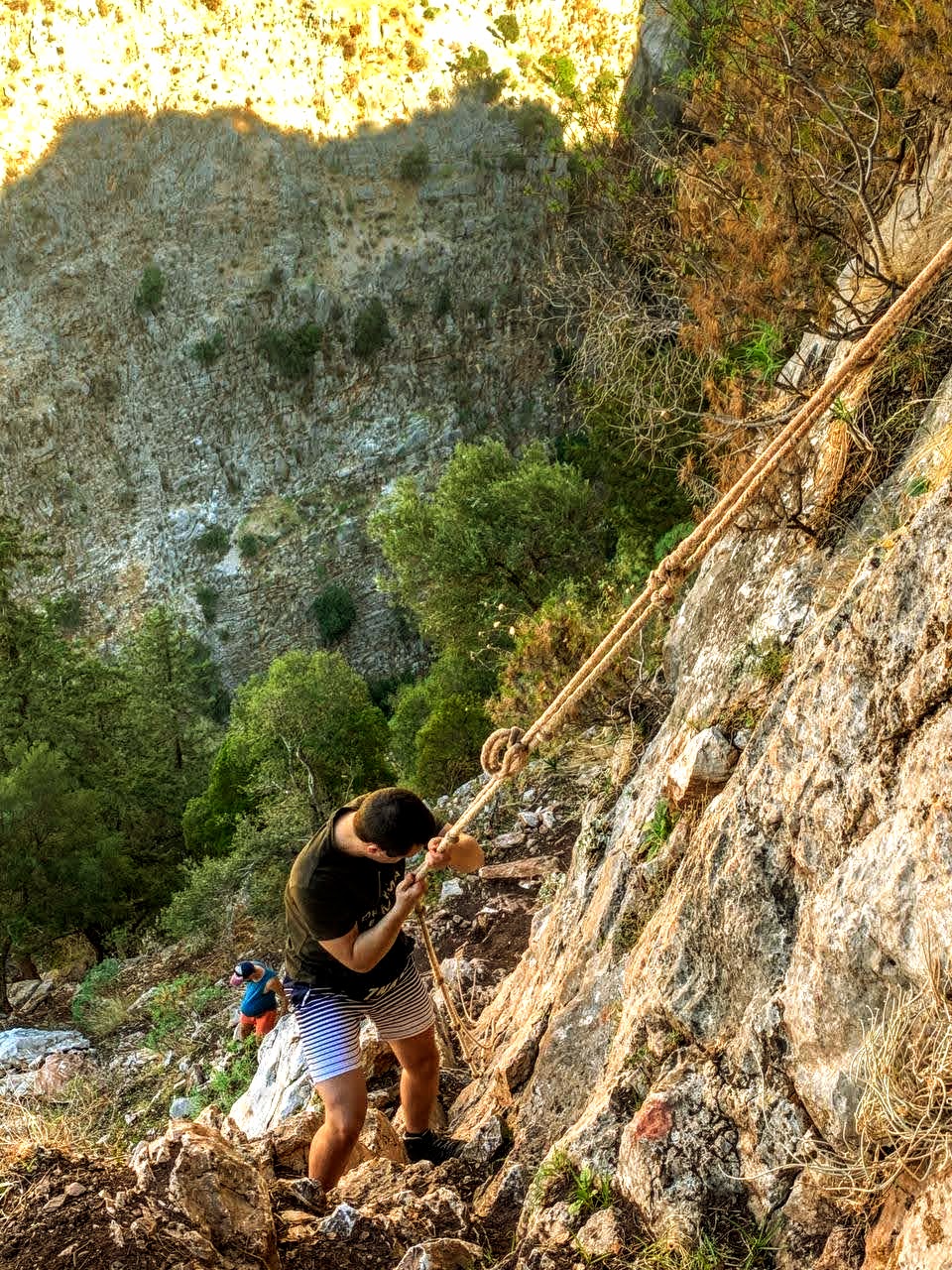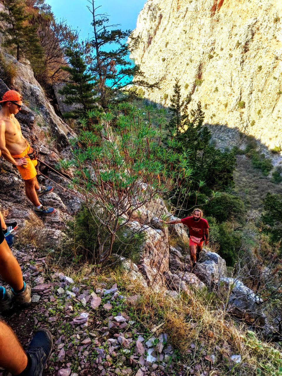 Неспешный выход и вот уже через один привал мы дошли до спуска в Долину Бабочек. В эту долину два пути: по морю на лодке и по веревке сверху со стороны Фаральи. Конечно же, мы спускались по веревке