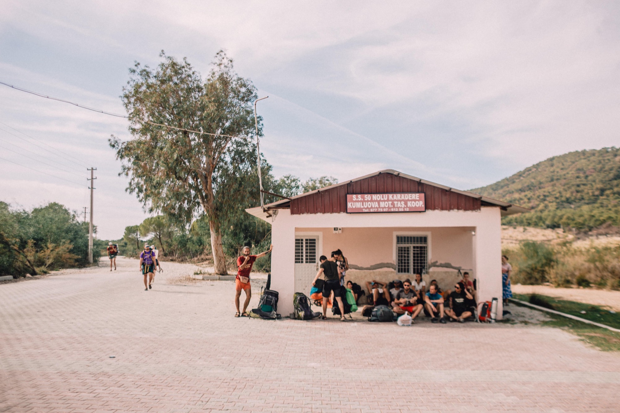 Перед этим можно сделать привал и покупаться. Спустя час пути мы выйдем к деревне Сахил Барак, где есть кемпинг 📍Lykia Camping. Здесь можно набрать воды, попить турецкий кофе и пообедать (даже со своей едой). Почти сразу после кемпинга сворачиваем направо на тропу.