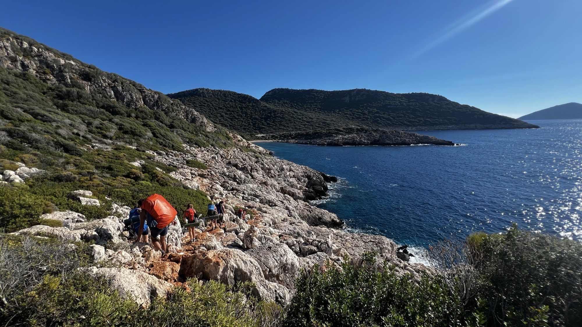 Утренние купания в море, завтрак и выход. Не забудьте в дорогу взять воду, до Богазичи её, скорее всего, не будет. За один переход доходим до бухты и древнего римского порта 📍Калабантии.