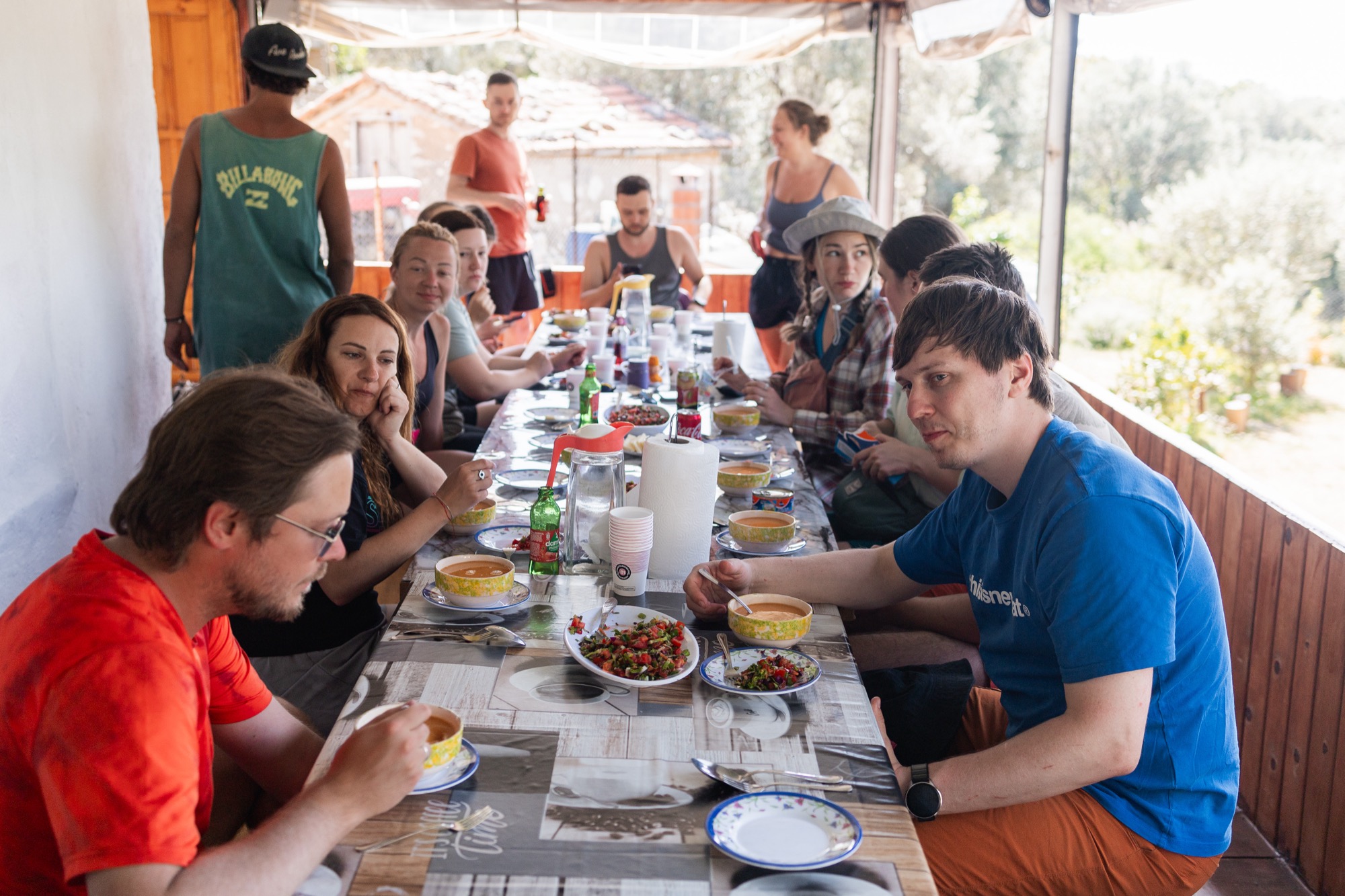 Хозяин Рамазан, добрый и отзывчивый, можно написать заранее на Whatsapp +90 537 314 67 43 (только по турецки, Google переводчик у вас есть) и заказать обед: он и его жена накроют стол: чорба (местный суп), салат, хлеб и местные соленья. Всё очень вкусно, не дорого и сытно. Также можно пополнить запасы на сегодняшний ужин и завтрашний завтрак. Дальше будут магазины.