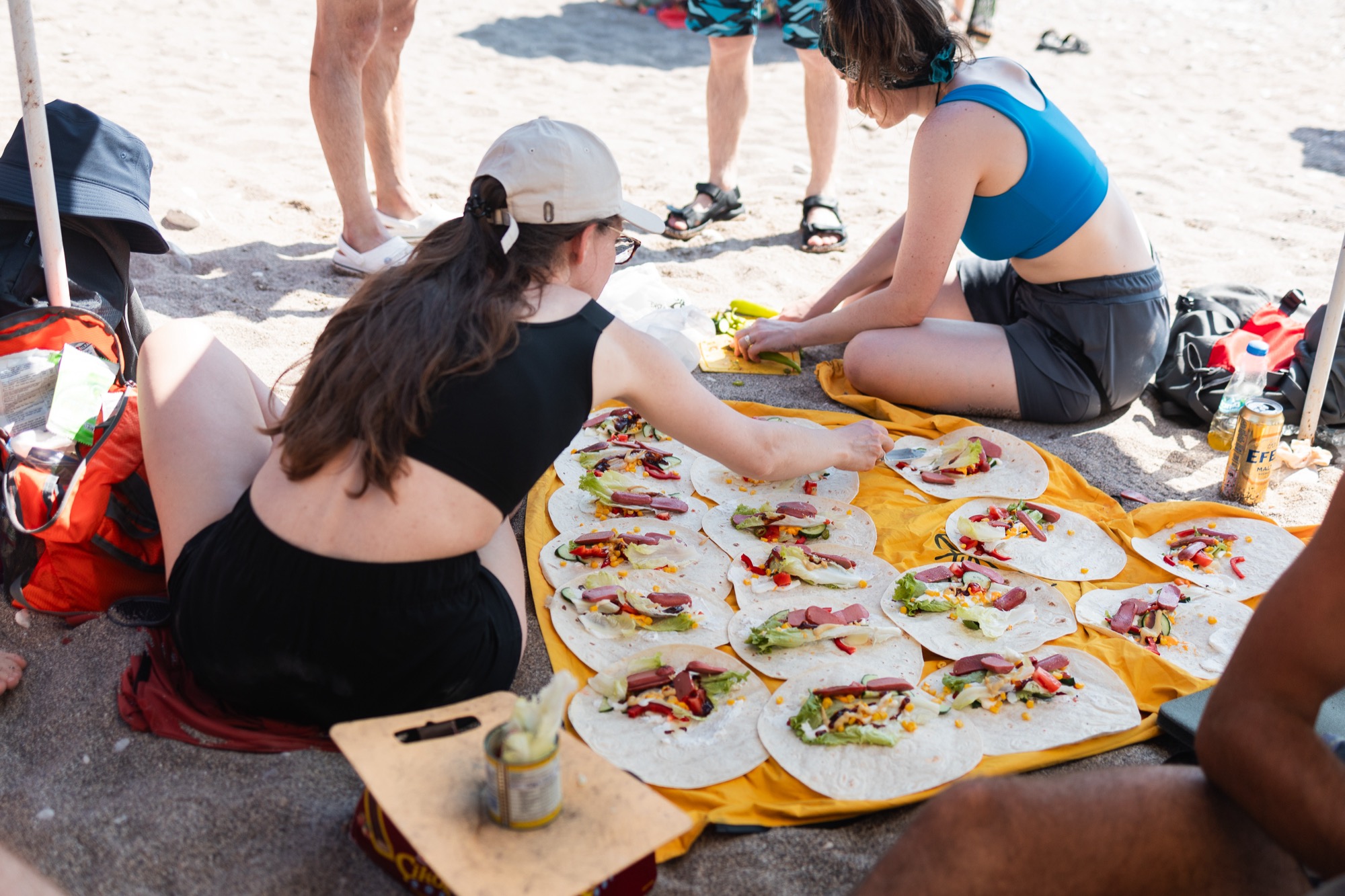 Возьмите с собой радиальный рюкзак и положите в него полотенце, перекус, солнечный крем и фонарик на всякий. Не нужно брать пакет или всё держать в руках: руки должны быть свободные