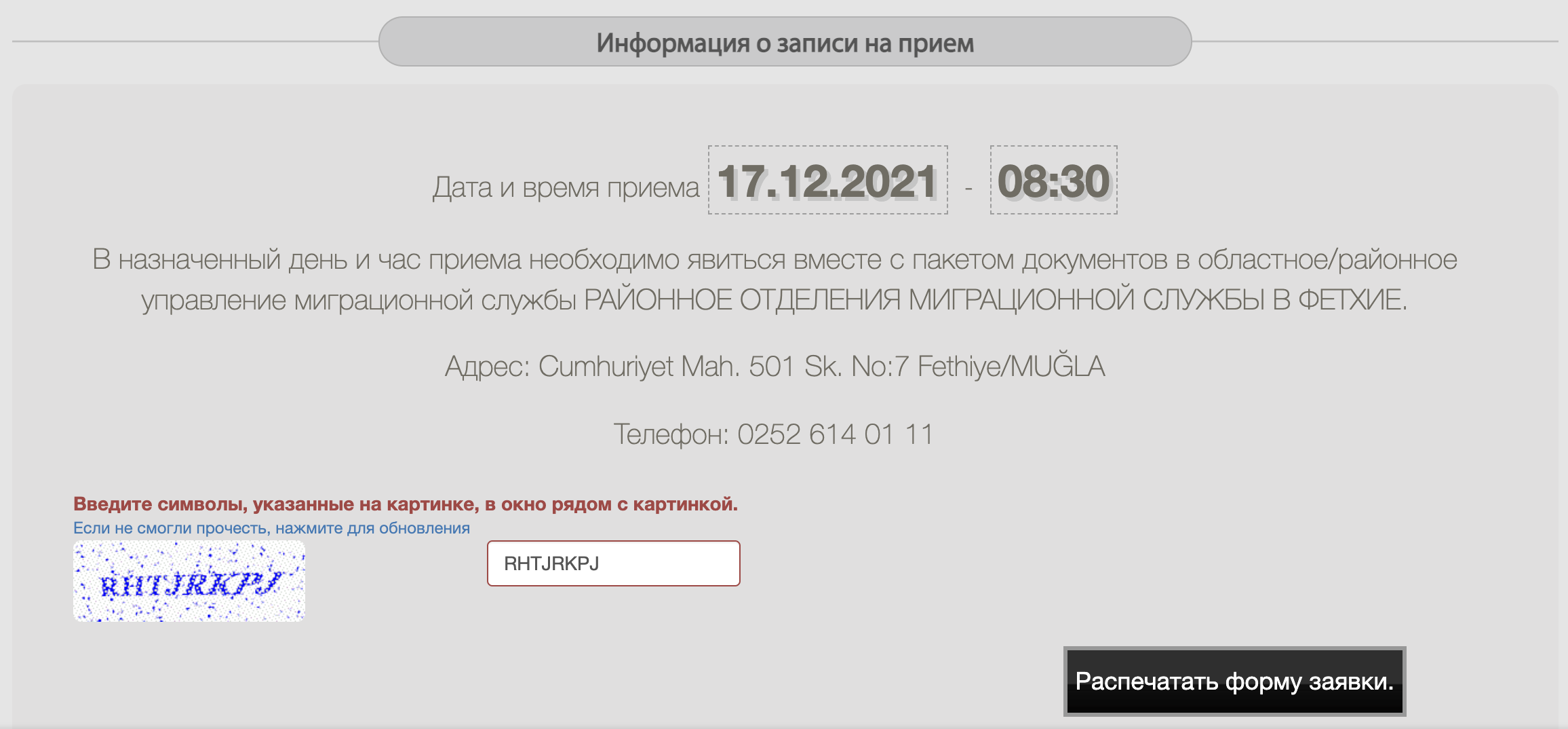 Fethiye Kaymakamlığı Göç İdaresi İlçe Müdürlüğü/Генеральное управление по иммиграционным вопросам. Здесь у вас проходит рандеву и сюда же вы относите все документы.