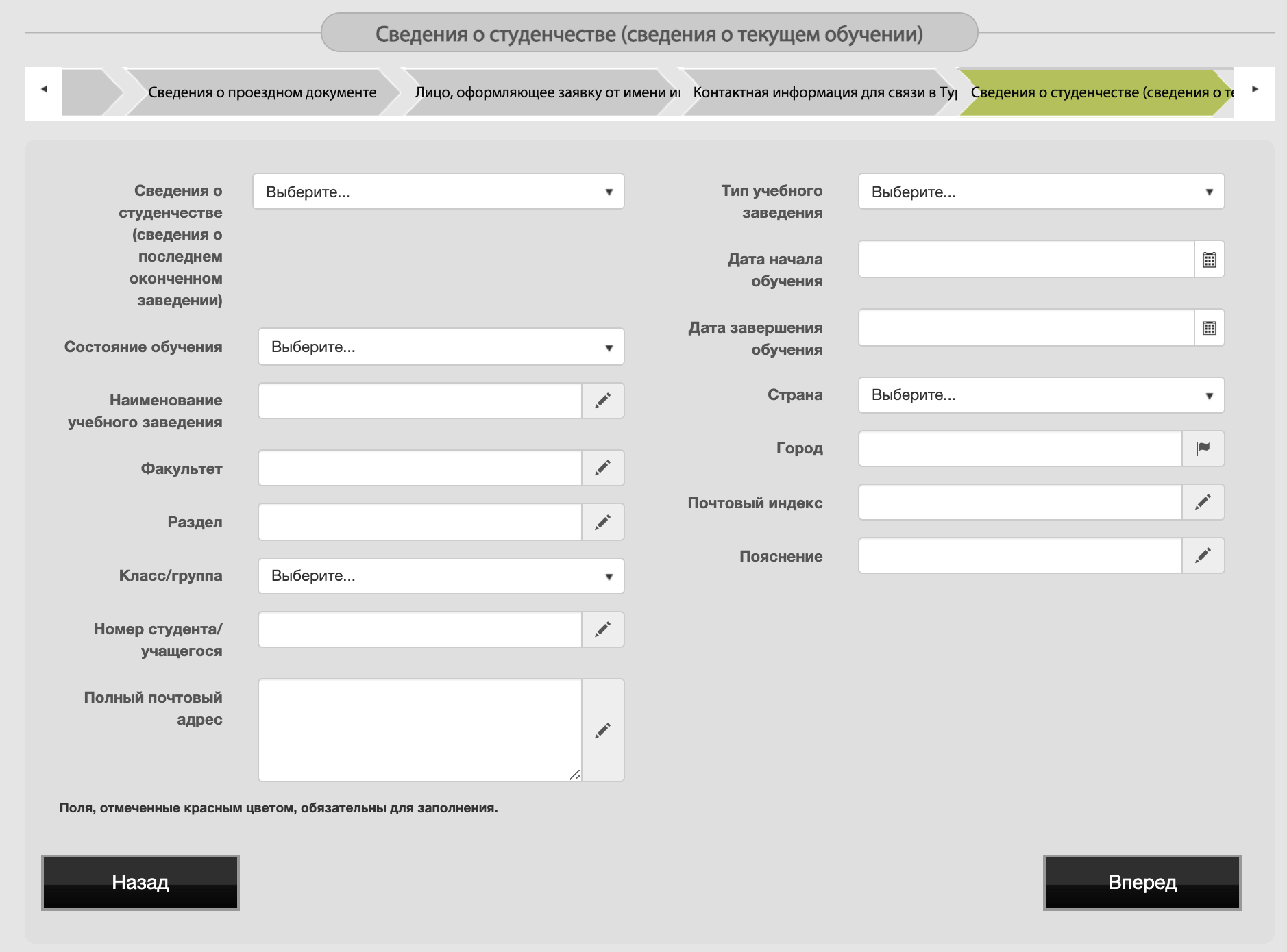 4.3 Обязательные поля выделены красным, остальные поля можно не заполнять.