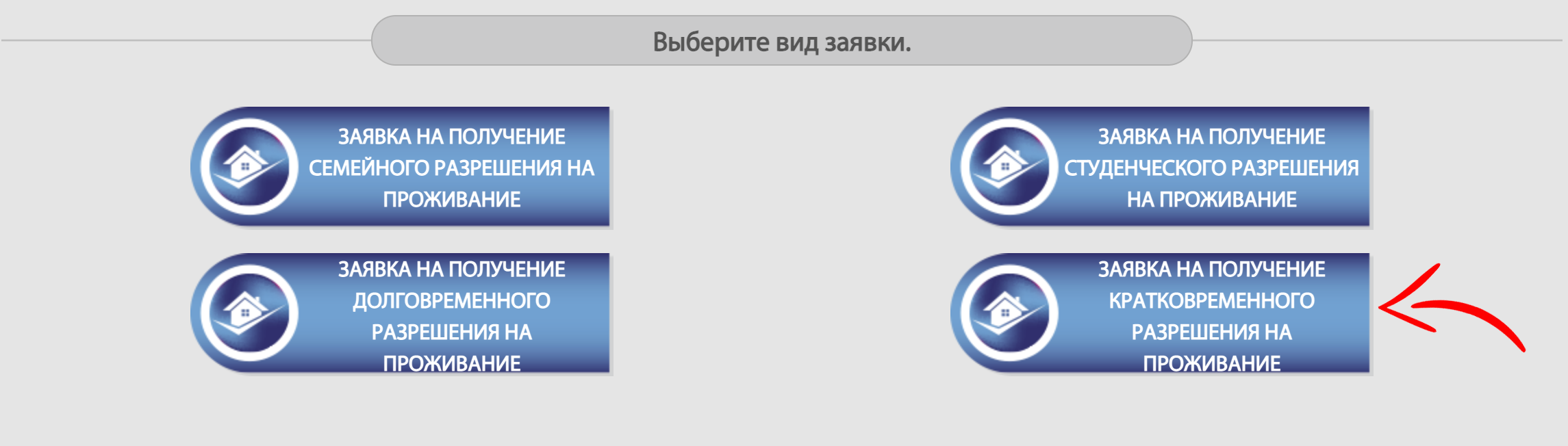 4.5 Выбираем раздел указанный ниже. Мы подавали заявку на ВНЖ сроком на 2 года, но все равно это “кратковременное разрешение на проживание”.