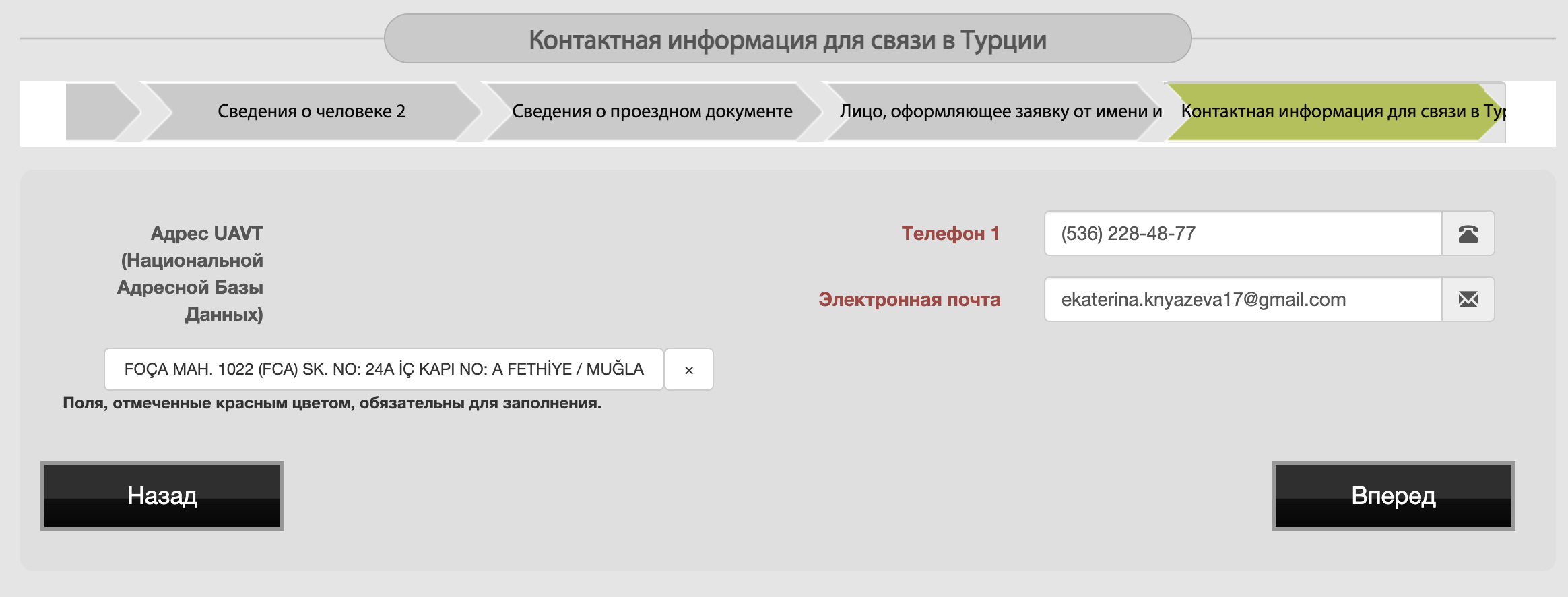 Шаг 4. Заполнение анкеты