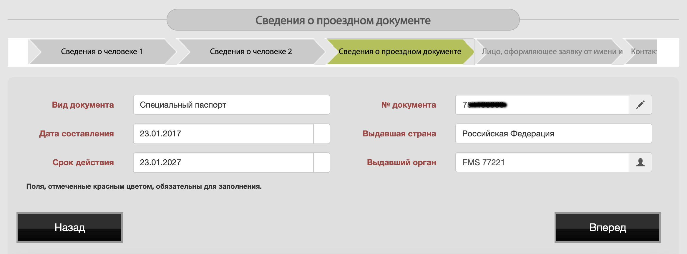 4.8 Сведения о паспорте. Обратите внимание, что выбрать нужно “Специальный паспорт”