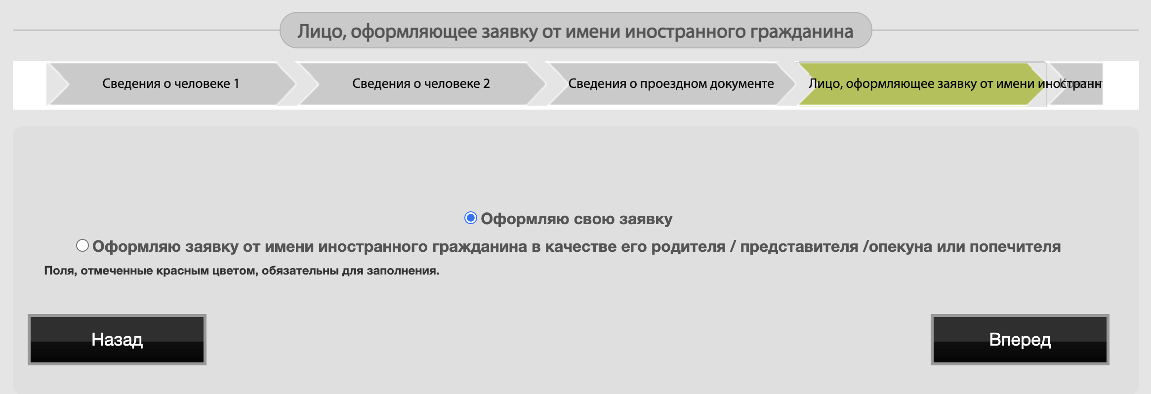 4.9 Тут указываем, что оформляем заявку сами на себя.