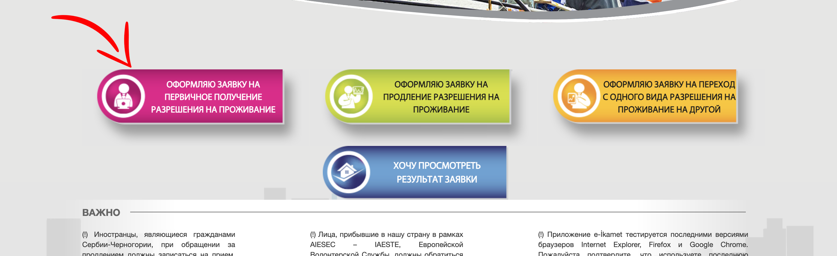 4.1 Выбираем раздел “Первичное получение разрешения на проживание”