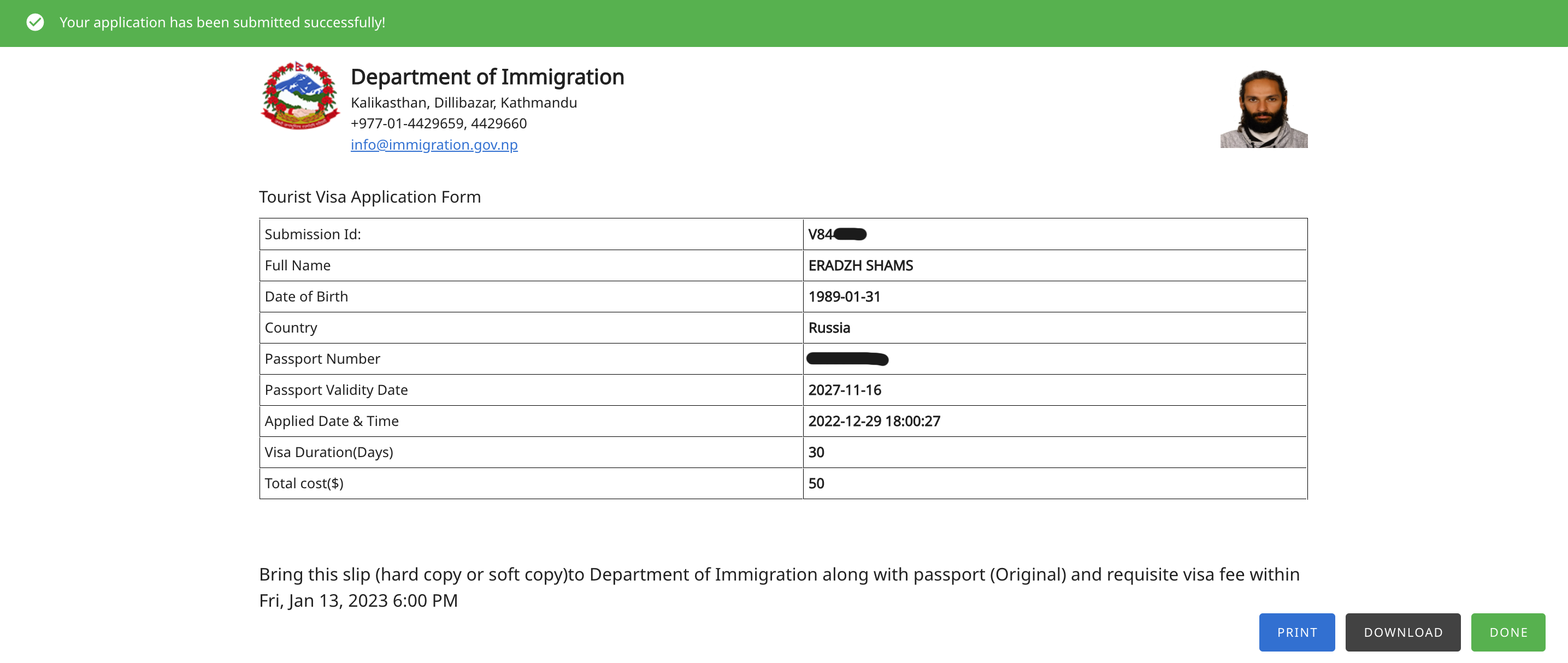- Заграничный паспорт, срок действия которого заканчивается не менее чем через 4 месяца с даты прилёта в Непал