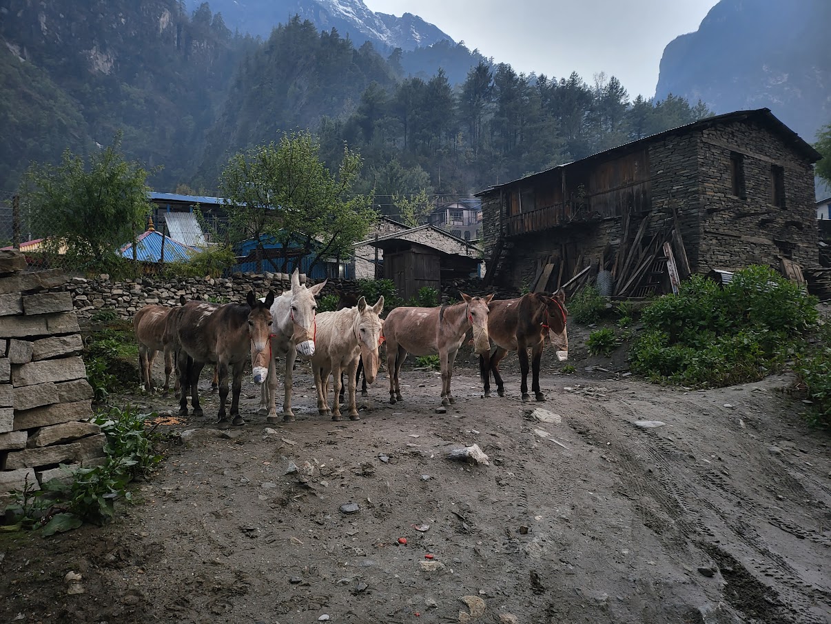 К вечеру приехали в Дарапани. Как будто бы начинался дождь. Прохладно, шумит горная река. Первая лоджия – огромный двухэтажный коттедж с большим количеством комнат и огромной столовой. Скорее всего, большинство водителей работают с ним. Много иностранцев из разных стран. Мы заселились в номера и поужинали. Момошки – очень похожи на наши пельмени или корейские дамплинги. Чаще всего овощные, но есть с сыром или картошкой. Реже с мясом. Еды с мясом вообще немного. Я так думаю: и потому, что они буддисты, и потому, что растительная еда дешевле и доступнее, даже здесь. Мне это нравится. Наконец-то мне не надо постоянно просить приготовить без мяса. А в меню вместо значка «vegan» чаще можно встретить «мясо». Момошки очень вкусные, но делают долго. Дал бата мы ещё наедимся, пока далеко в горы не ушли, принесите спагетти и жареную картошечку. Яблочный пирожок с корицей – отвал башки. В списке чаёв 15 позиций. Внутри было тепло и уютно. Снаружи мокро и зябко. В ход пошёл lemon-ginger tea. Завтра первый ходовой день.