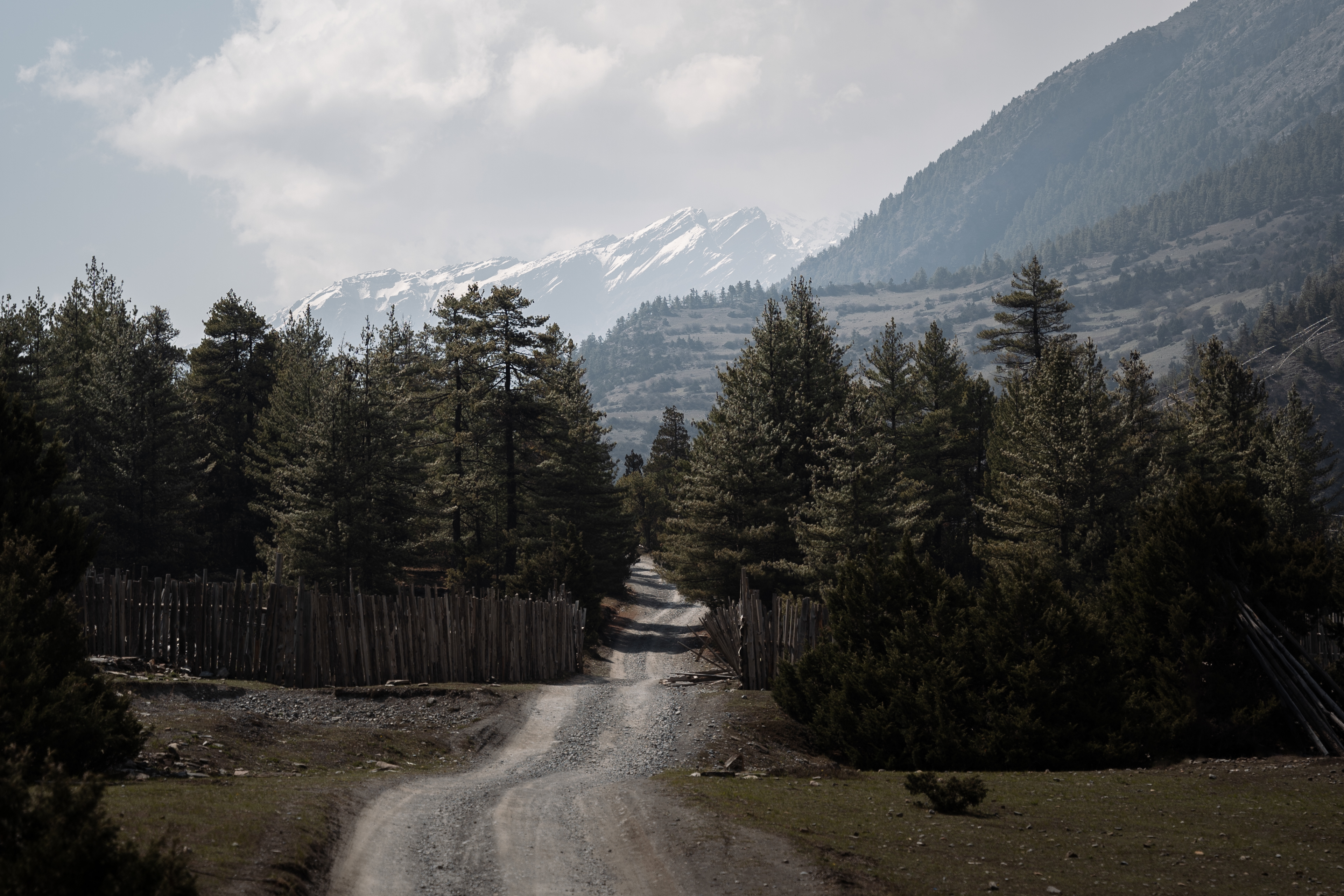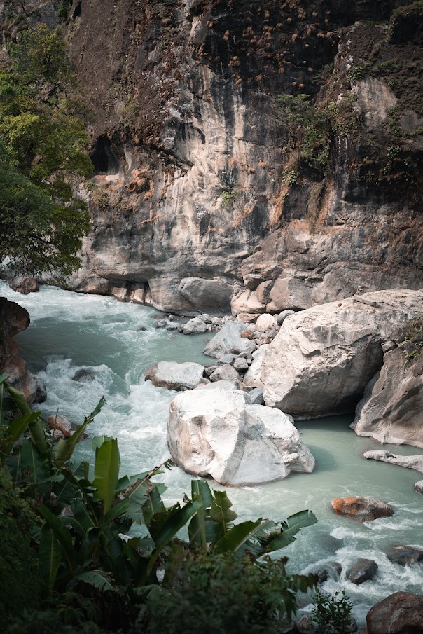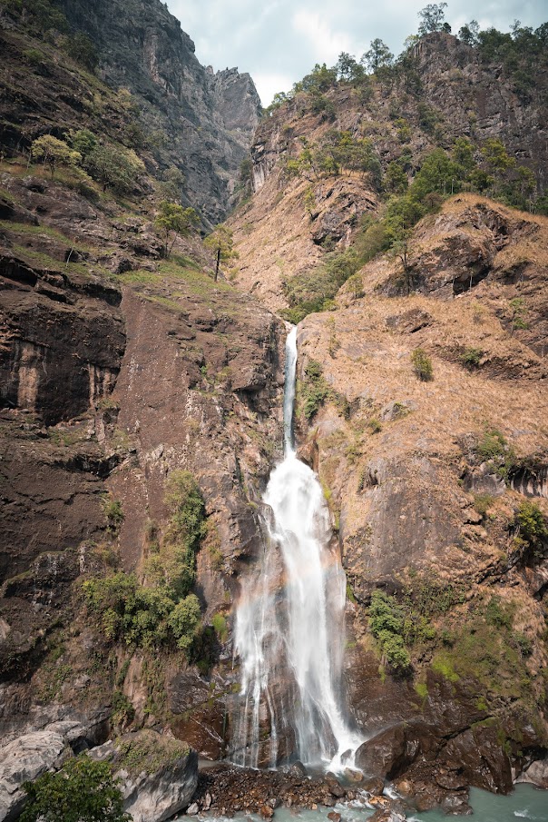 Единственная улица города оживает. Местные несут в руке нечто нашего кадило с благовониями, а во дворе каждого дома ждут можжевеловые ветки. Я не спросил, для чего это и что это значит, но наверняка что-то важное. Кофе вкусный. Пригревшись на солнышке, разделись до маек и шорт и вышли на тропу. Выходить рано утром отлично. - людей почти нет, солнышко приятно пригревает, но ещё не печёт. Идём по глубокому каньону вдоль реки. То тут, то там какой-нибудь водопад. Прячась в тени деревьев смотришь на заснеженные пики, стеной возвышающиеся над тобой.