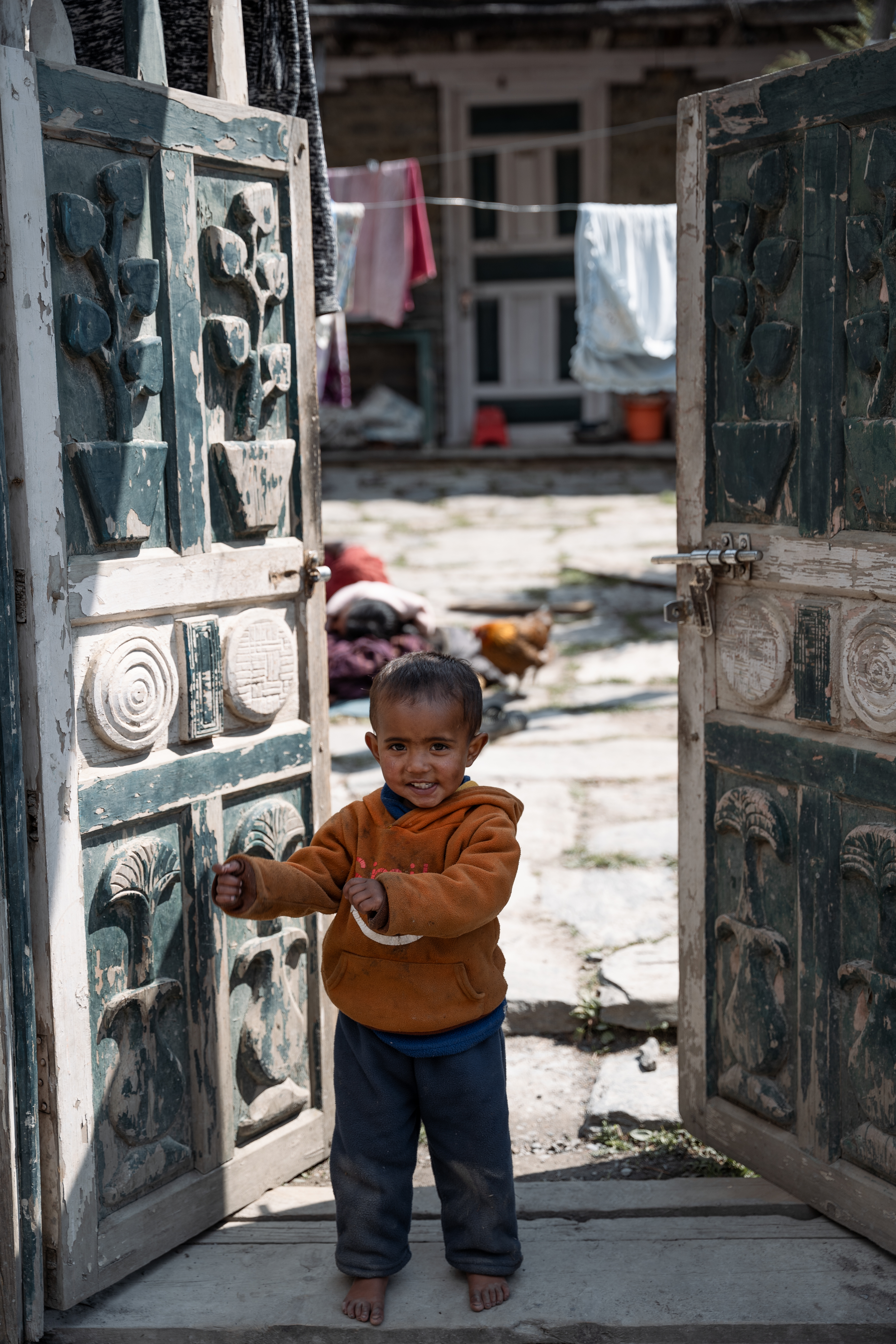Изредка проезжают джипы - несколько лет назад проложили грунтовку до Мананга, где мы будем только на 4-й день пути. Но проезжать этот участок точно не стоит вместо тряски на джипе и быстрых взглядов по сторонам получаешь гораздо больше: идти несложно, пейзажи завораживают, местные улыбаются. Детишки вызывают умиление, некоторые даже просятся на ручки. Чумазые и одетые во что попало, заливаются смехом и складывают руки у груди: Намастеее. Не сразу понимаешь значение этого слова. Это не просто приветствие, это коротенькая мантра, которая несёт большой смысл: "божественное во мне приветствует и соединяется с божественным в тебе", прославление мироздания, частичкой которого является человек. Последнюю букву протягиваешь, даже пропеваешь. Кроме этого слова ничего и не нужно, всё и так понятно.