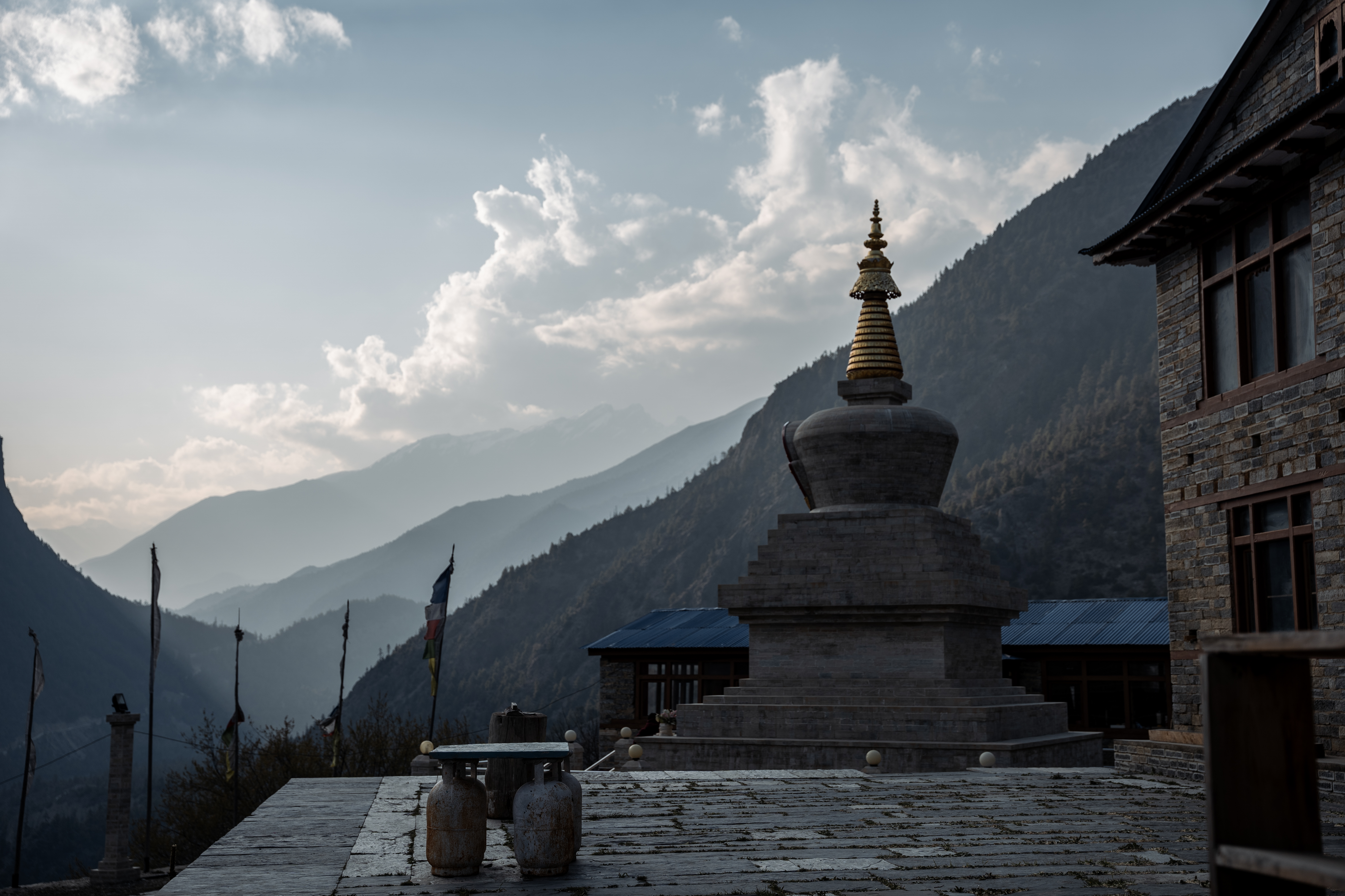 Встали в 6 утра. На балконе лоджии я поставил вариться гималайский кофе. Погода сегодня радует: на небе ни облачка. На востоке неожиданно показался величественный Манаслу. Я слышал про этот регион. Находясь на приграничной с китайским Тибетом территории, десятки лет он был закрыт для посещения туристами, и лишь несколько лет назад появилась такая возможность.