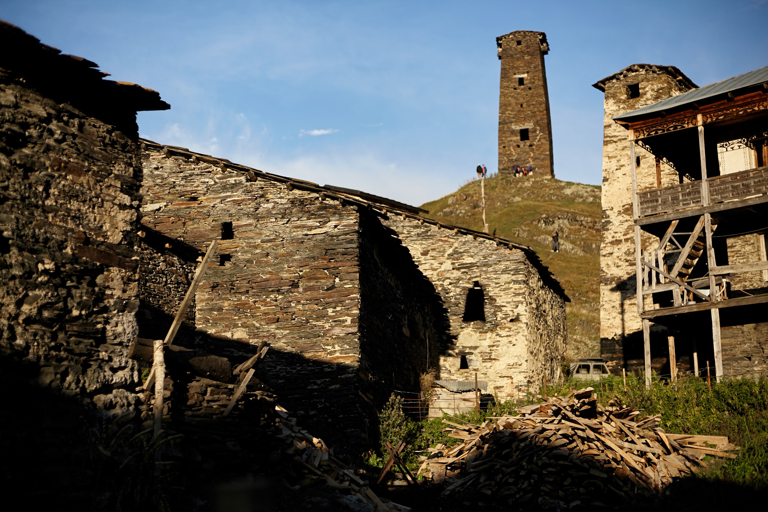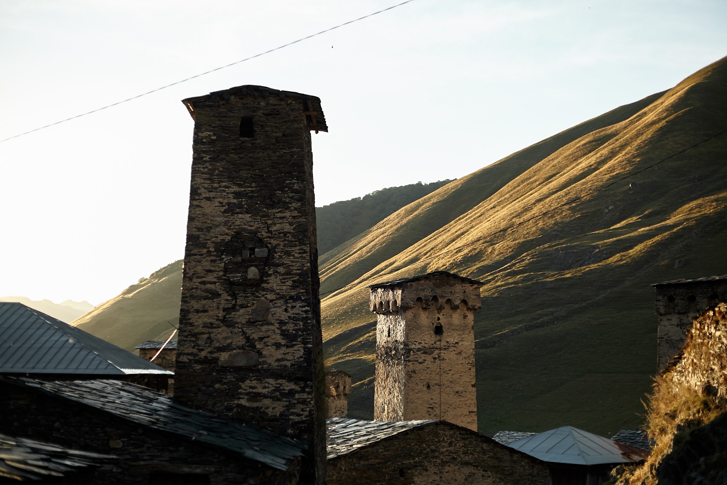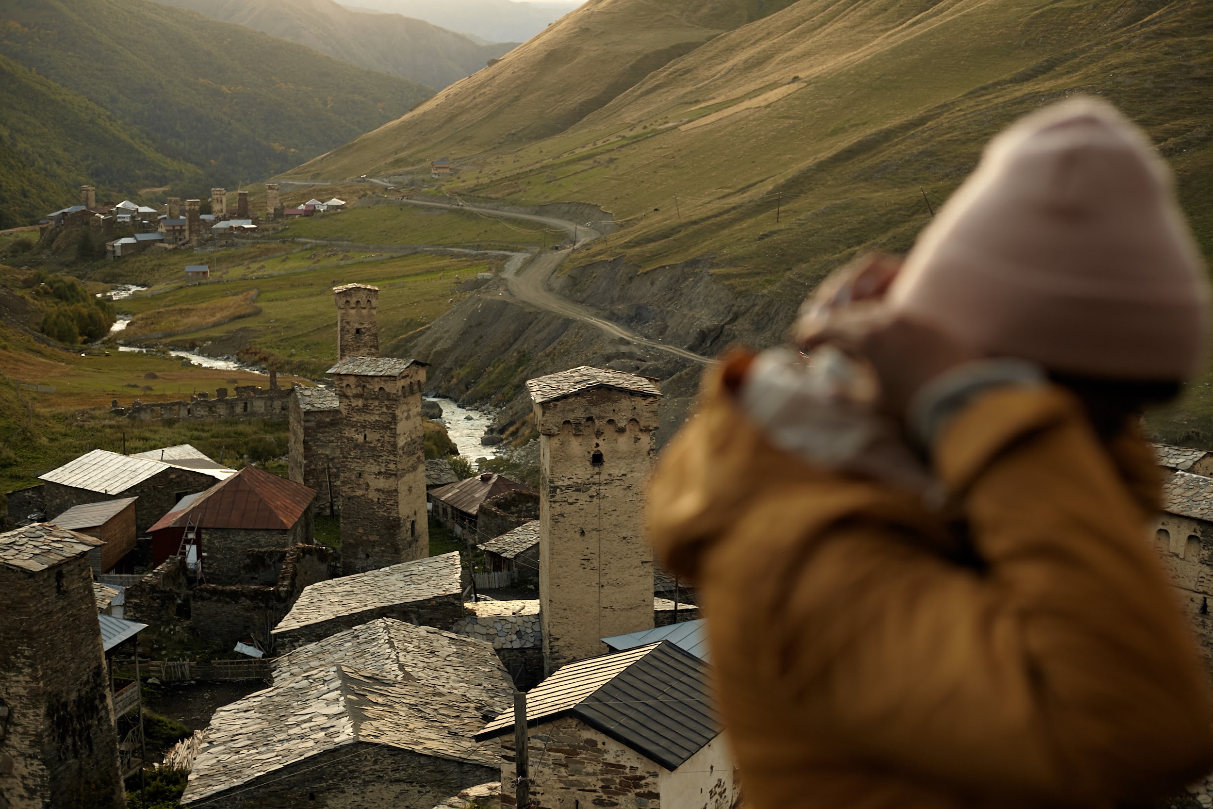 В запасах у нас ещё одна трехлитровая бутылка вина, которая греет наши души. В этот день тропа ведет нас по дороге, но виды все также не подводят, а лишь заставляют останавливаться каждые 100 метров, чтобы сделать фото сванских башен.