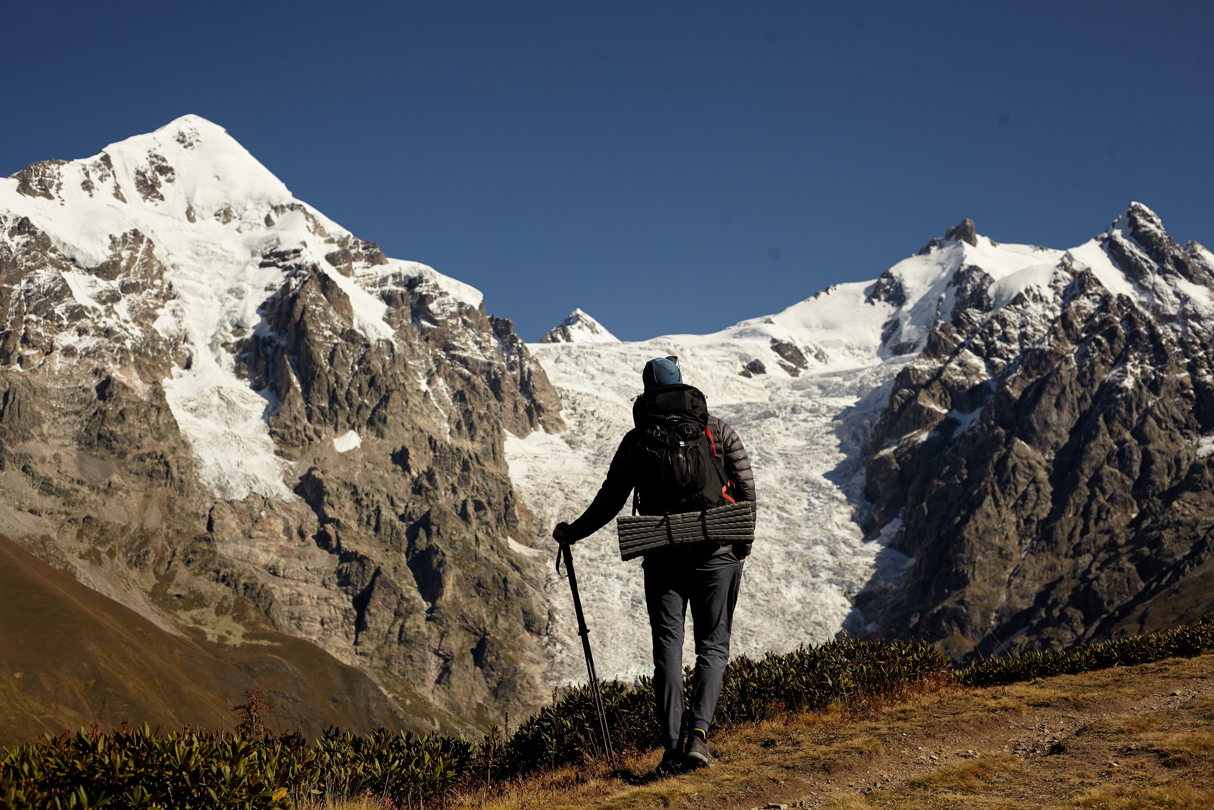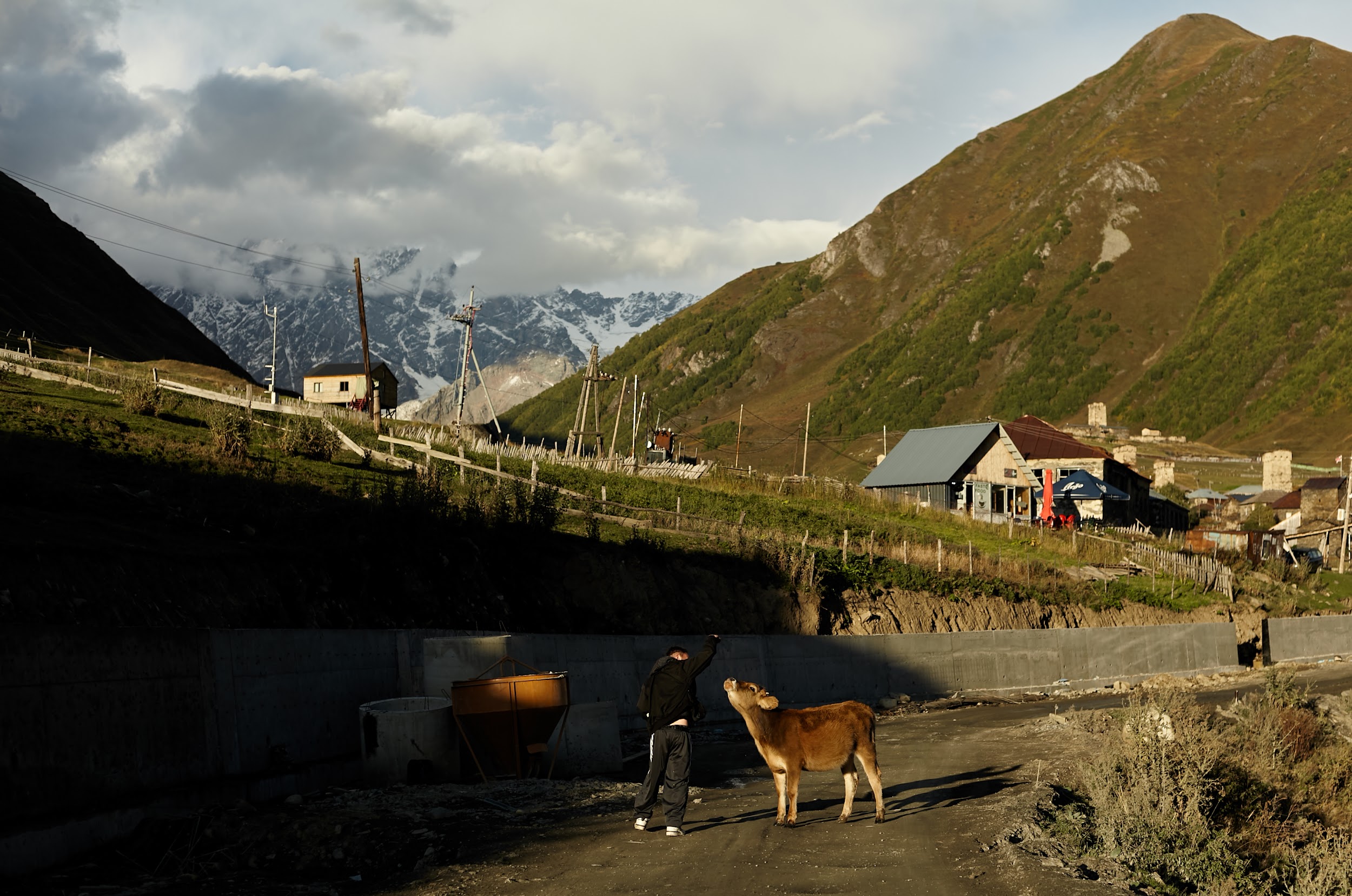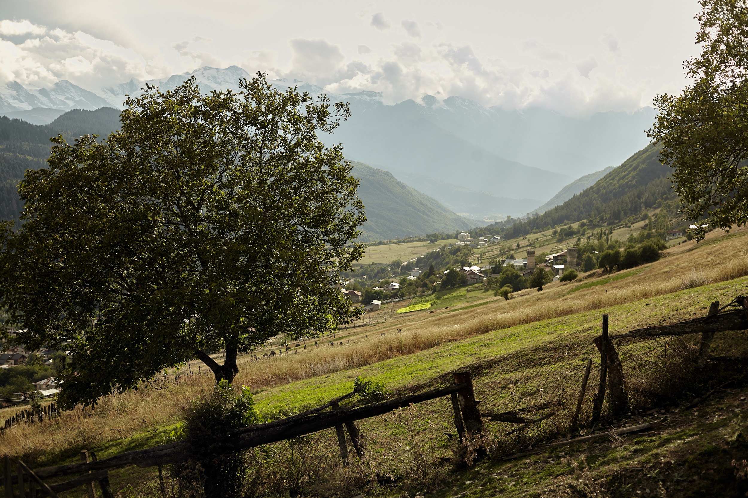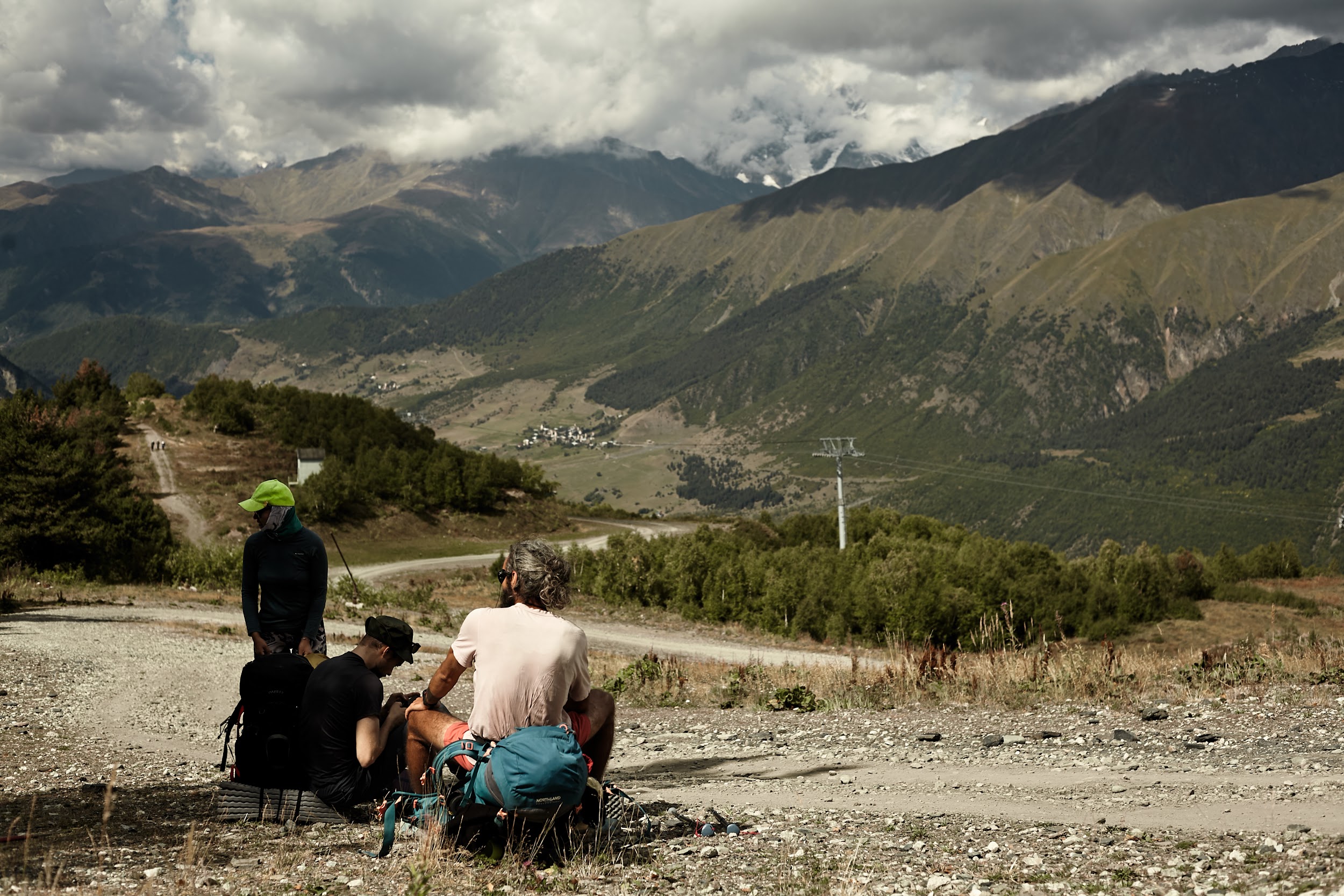 В запасах у нас ещё одна трехлитровая бутылка вина, которая греет наши души. В этот день тропа ведет нас по дороге, но виды все также не подводят, а лишь заставляют останавливаться каждые 100 метров, чтобы сделать фото сванских башен.