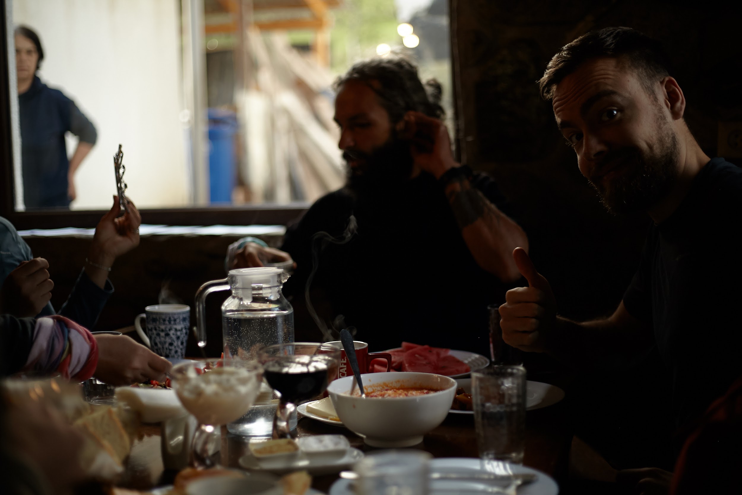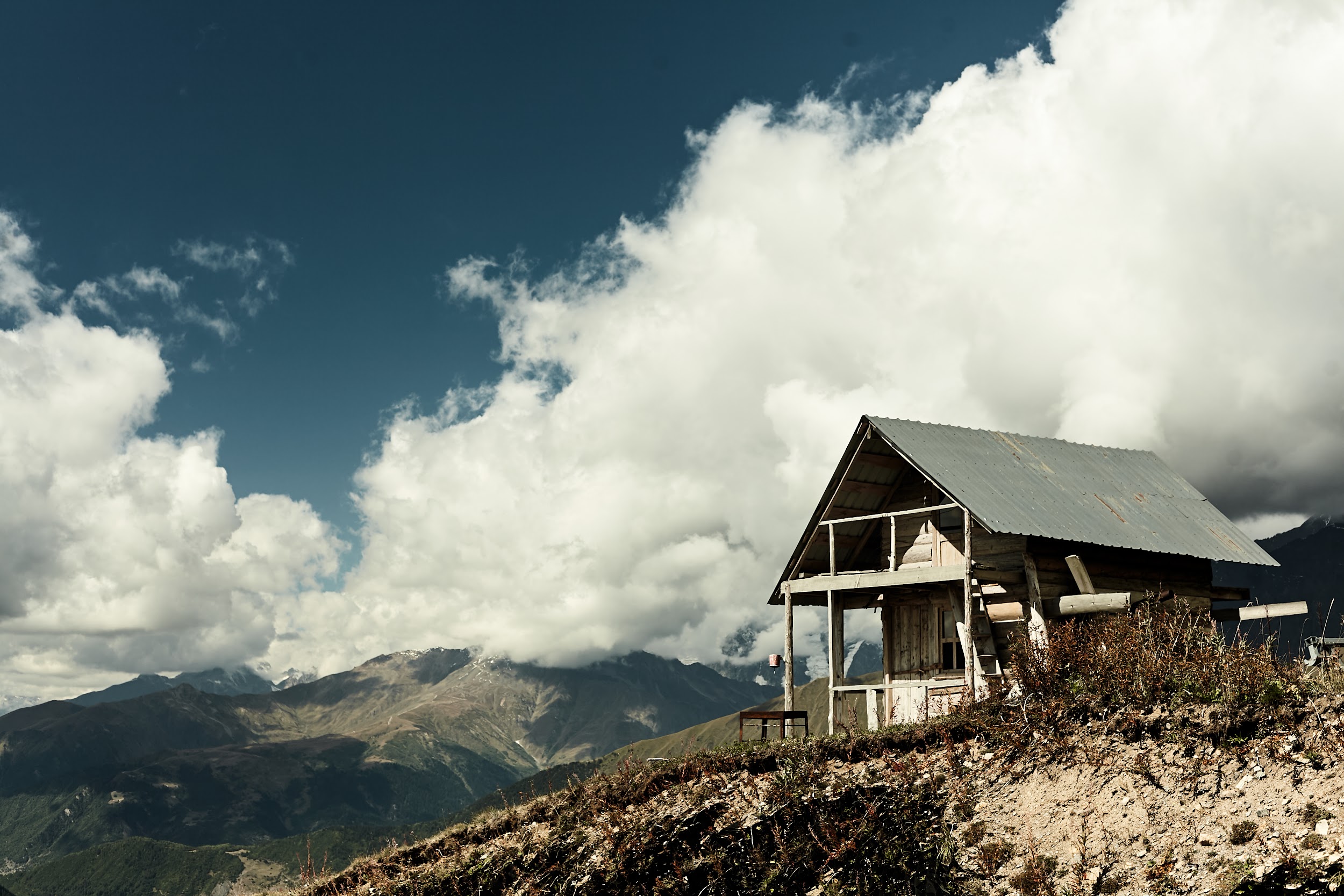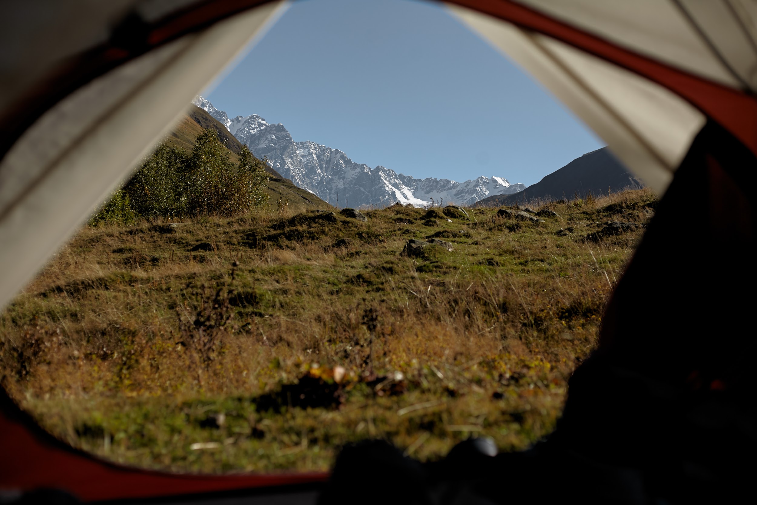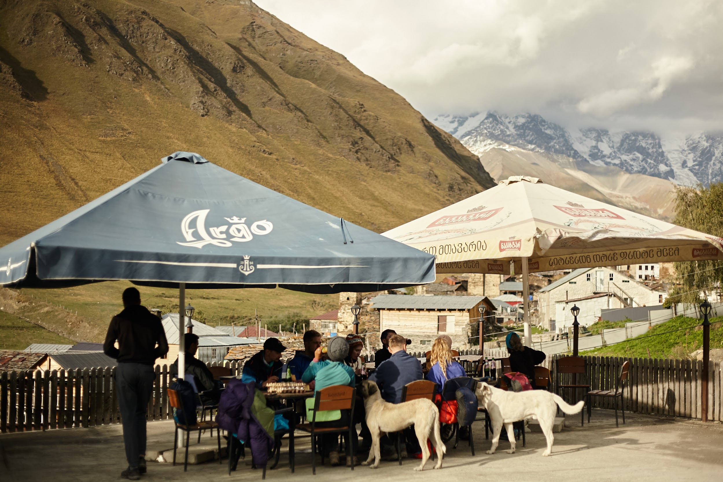 Проснулись мы на рассвете, когда ещё не было облаков, выглянула Ушба, Тетнульд, в общем, было очень красиво. Особенно в сочетании с вкуснейшим завтраком