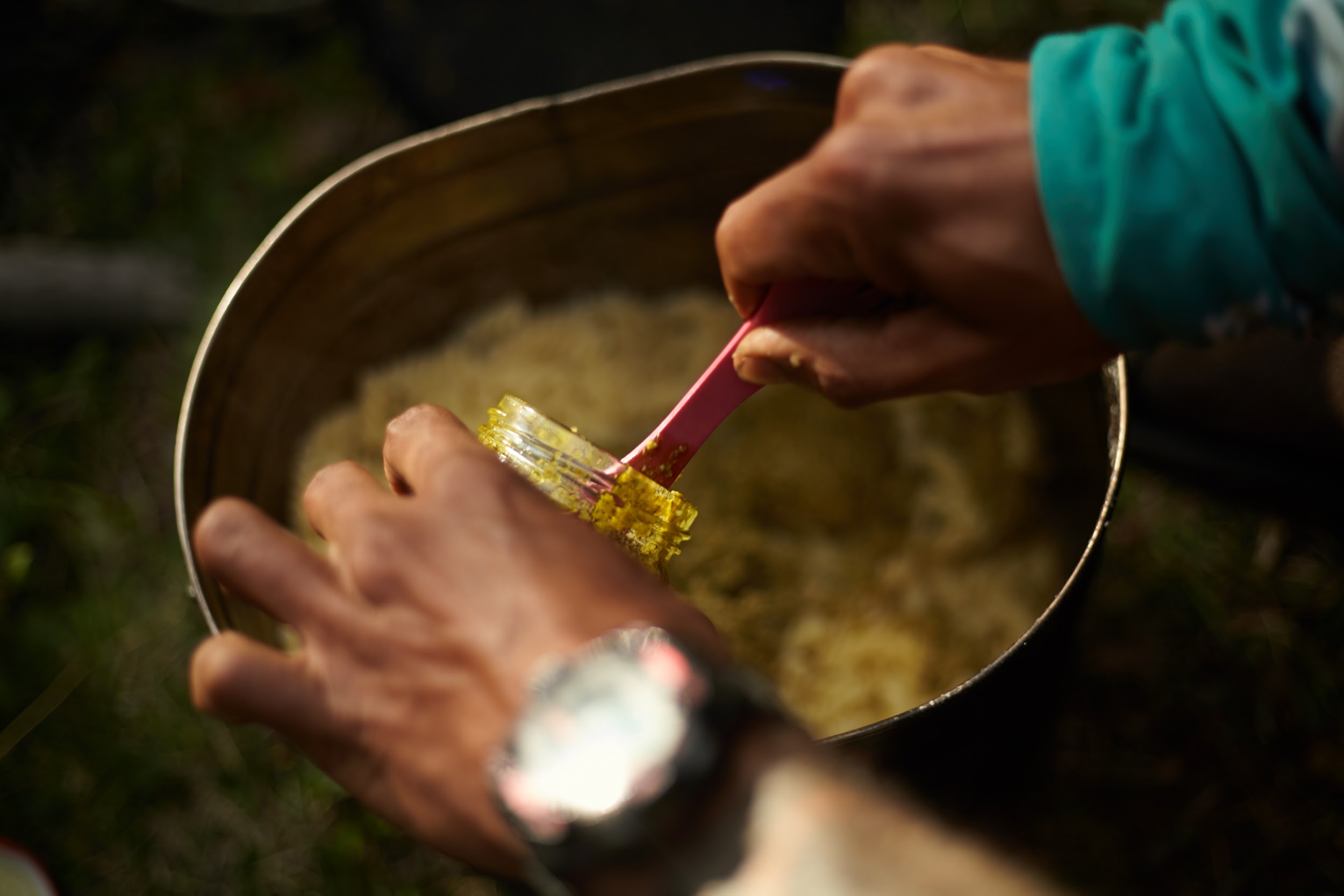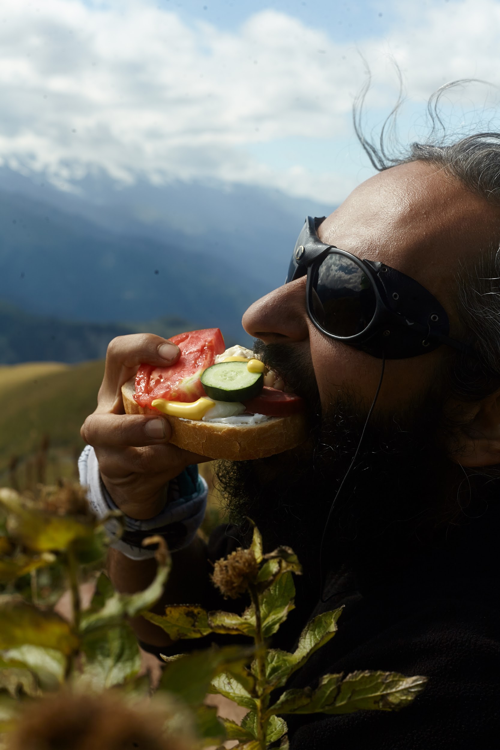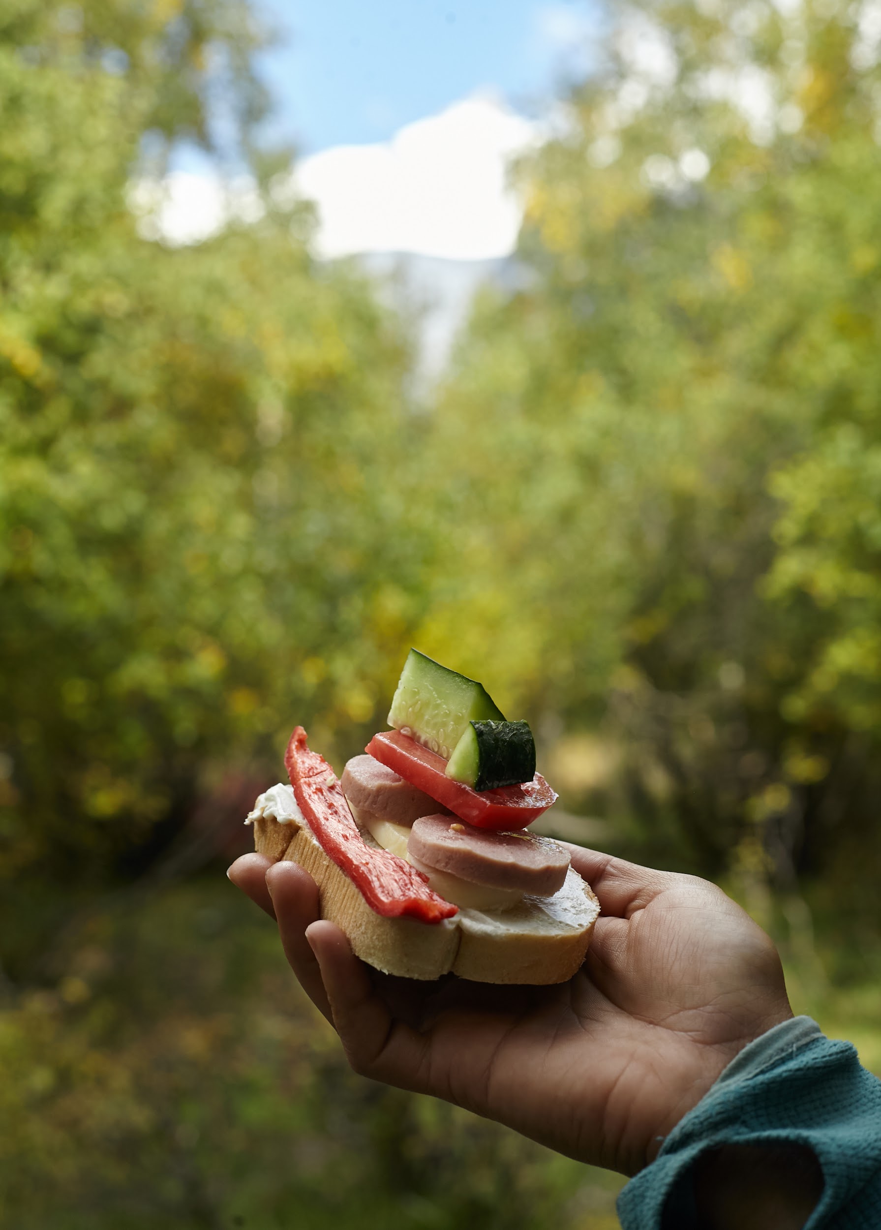 Встали лагерем на острове среди берез. Обычно здесь растет много грибов, удачный улов мы отметим вкуснейшей пастой с песто, сыром и грибами. Стоим около поселка Адиши (2100м). Перекусили