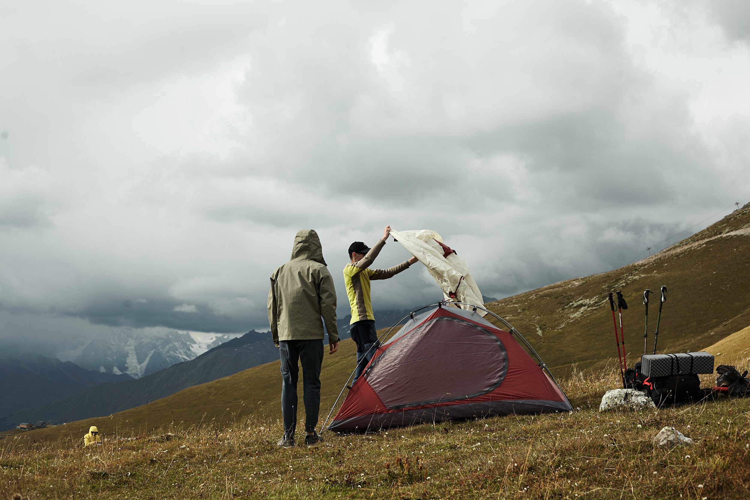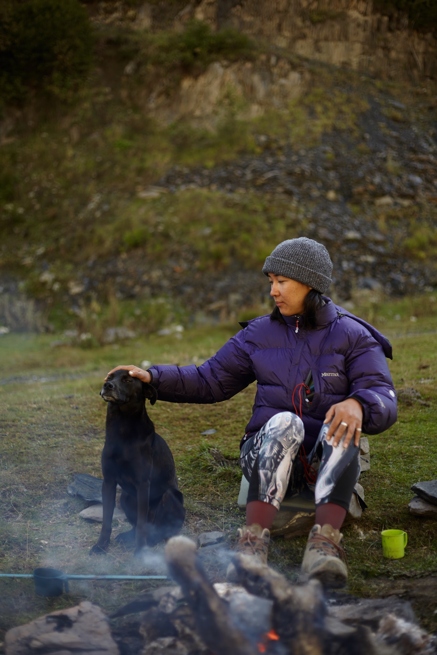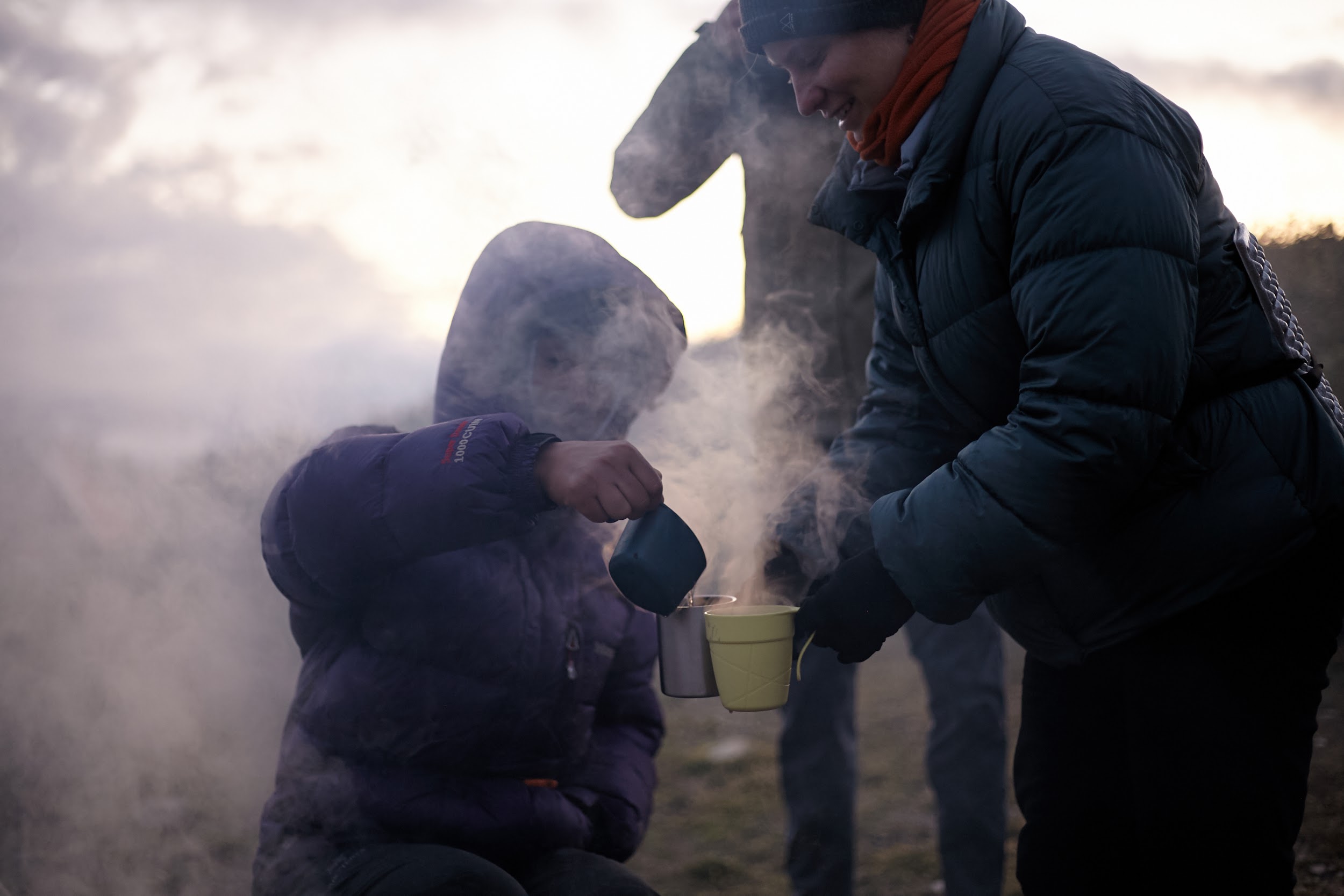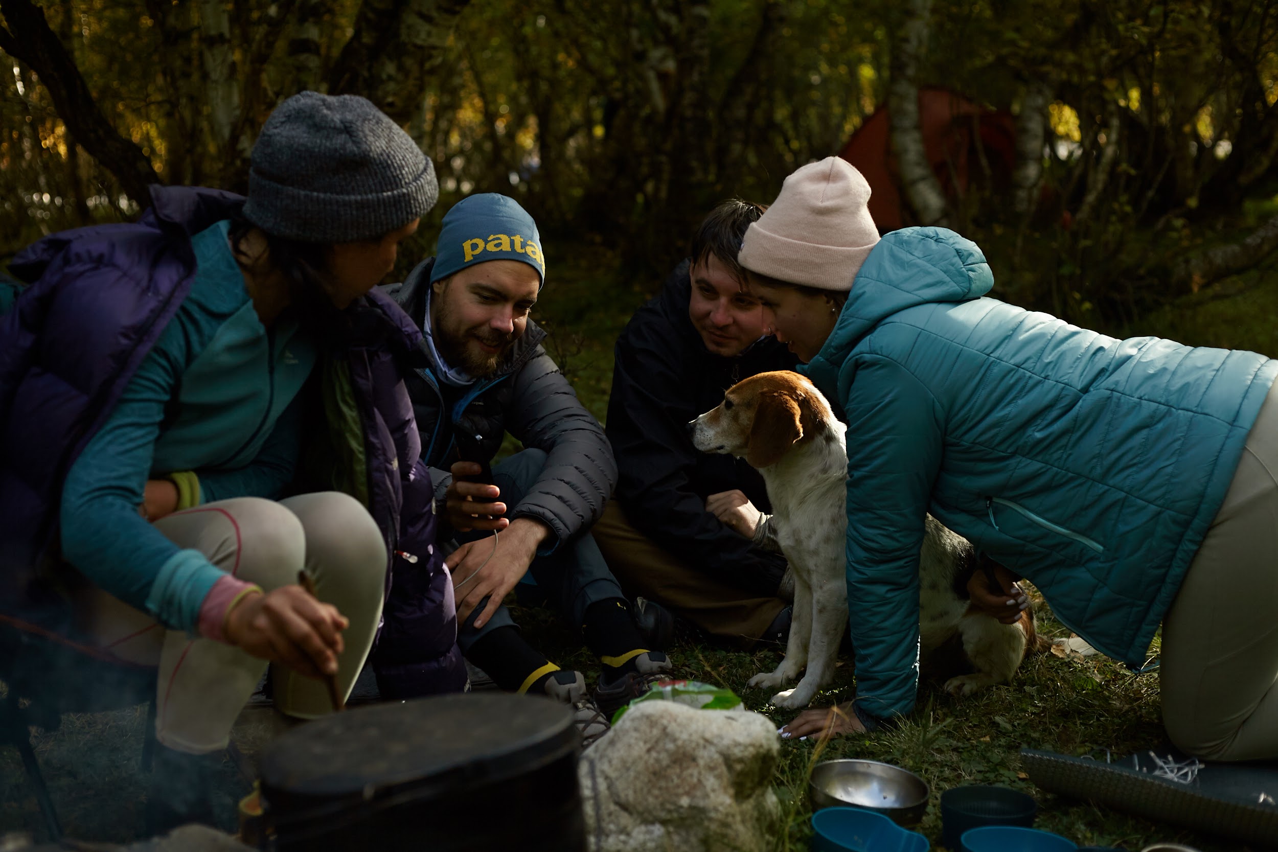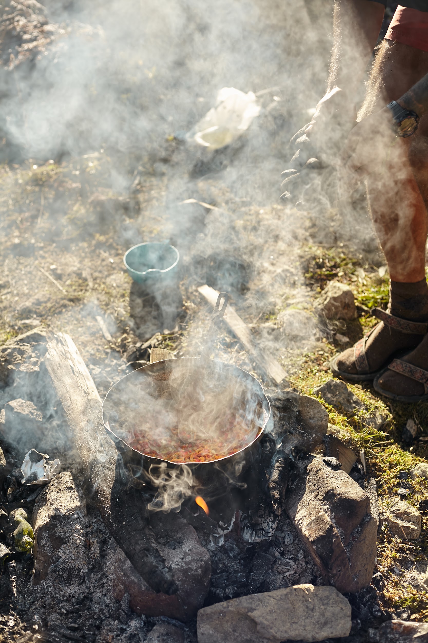 Первая ночь в палатках, вечером уже сильно ветренно, ребята подмерзают, мы готовим первый ужин на костре.