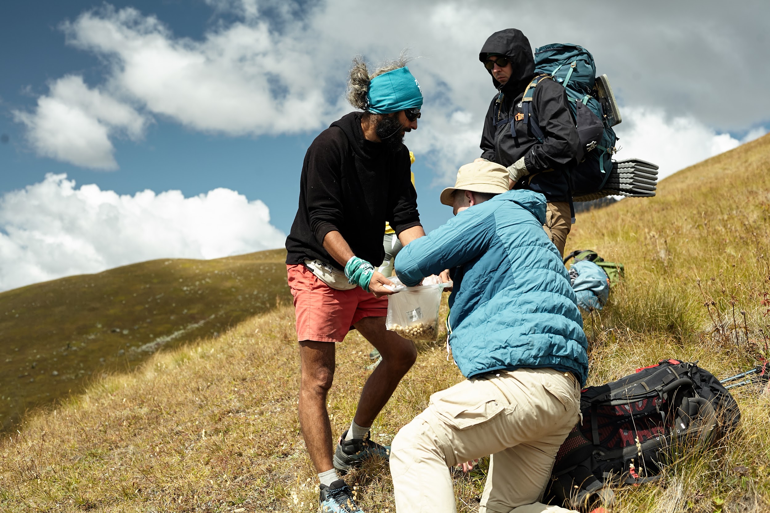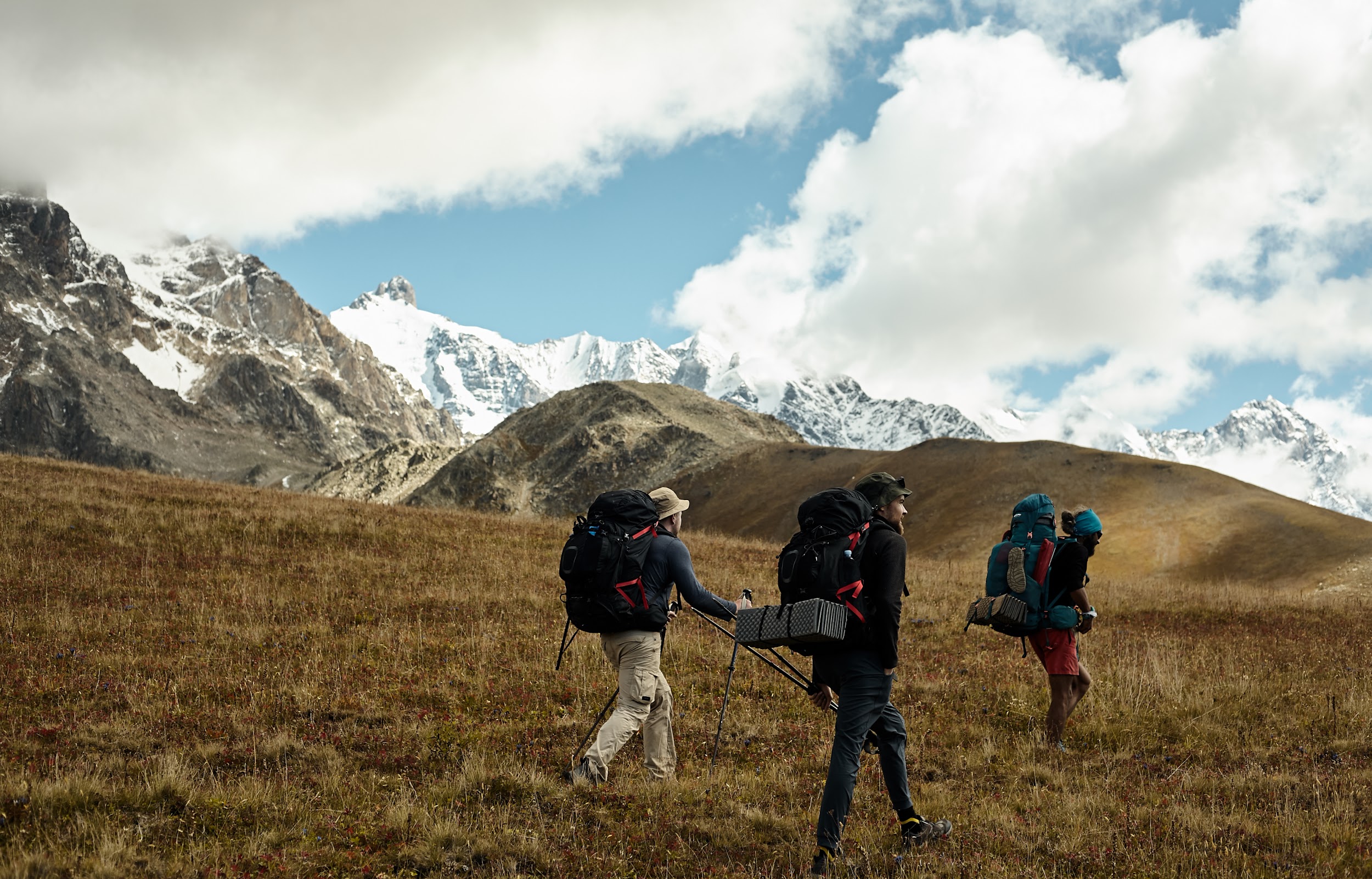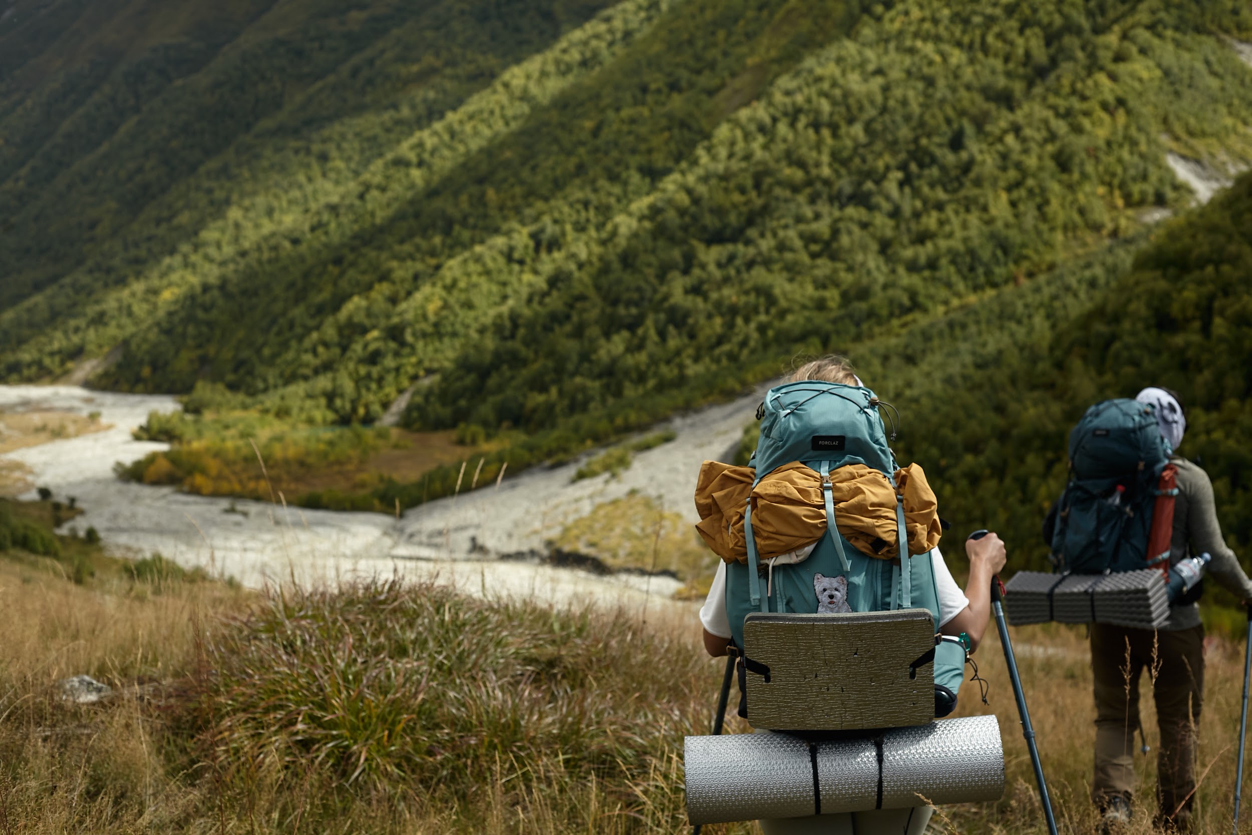 Изначально шли 4 км траверсом вдоль Тендульди, а потом начали спуск по траве,