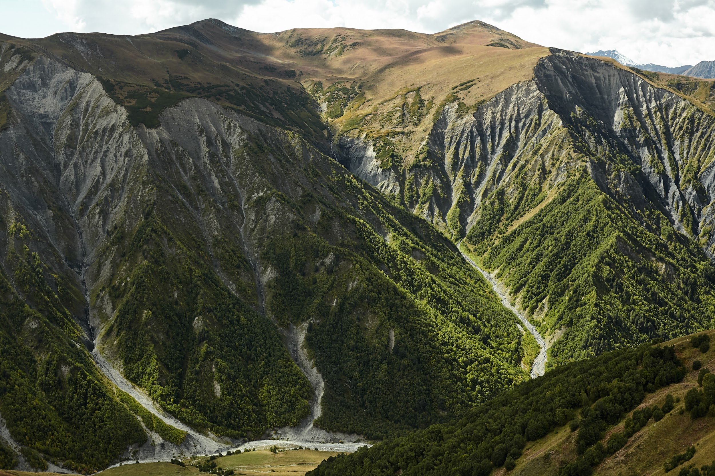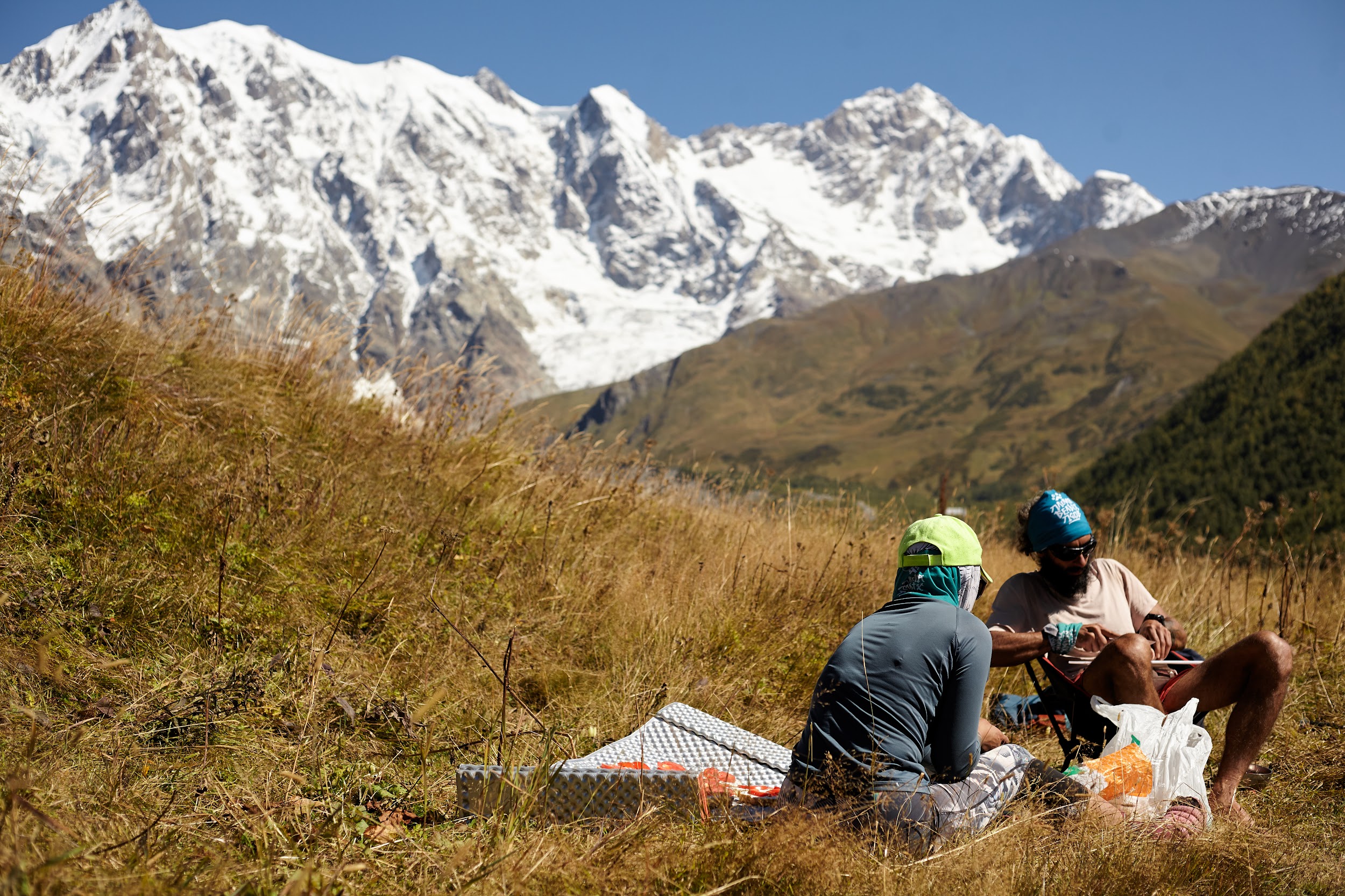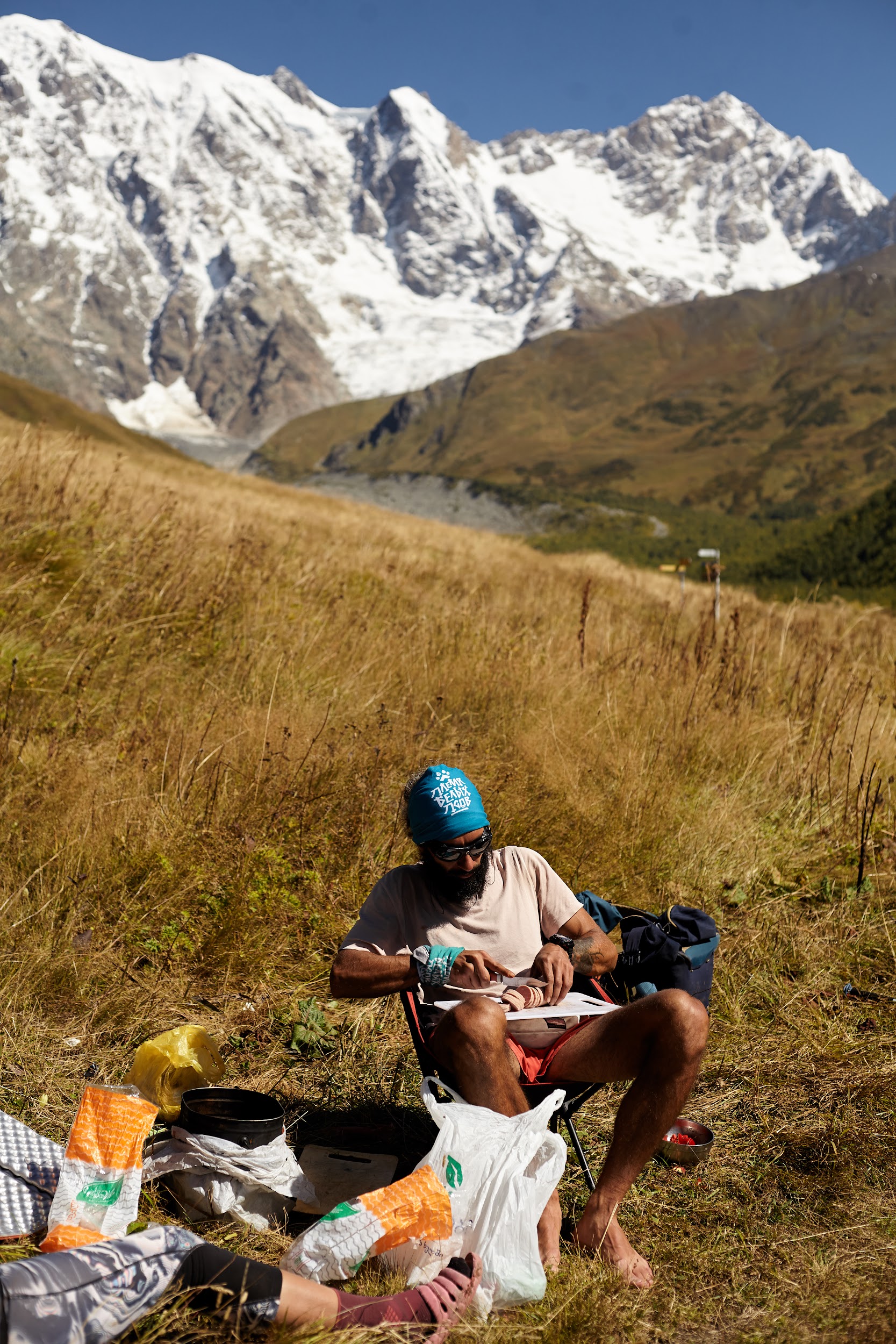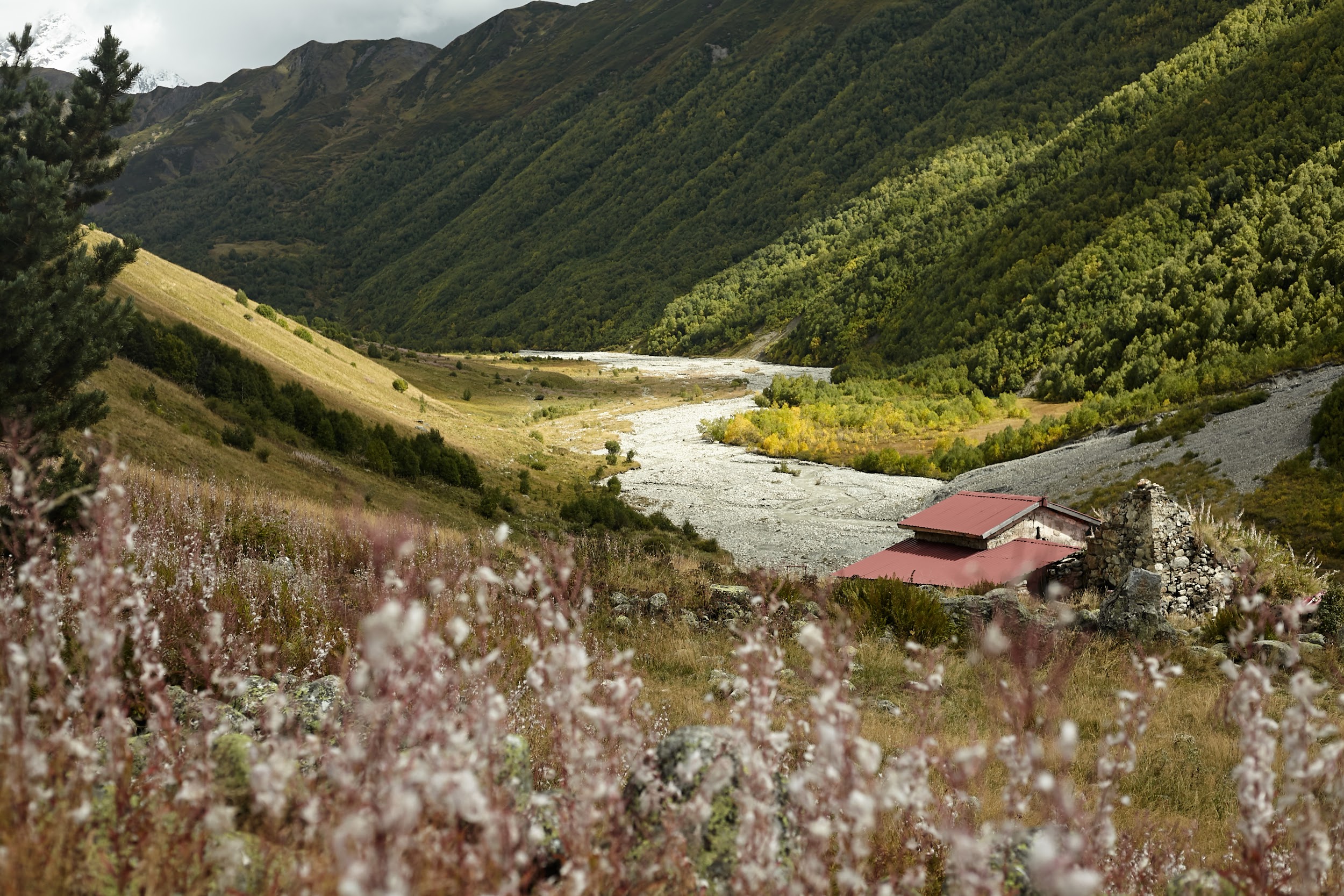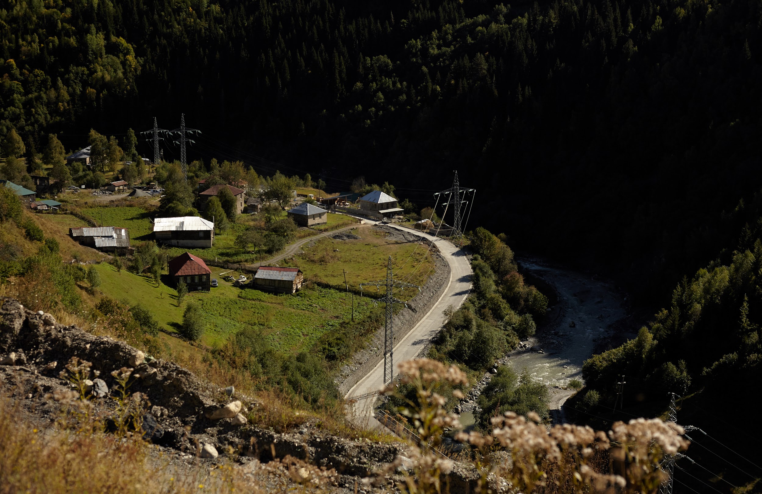 А далее плавно и легко спускаемся в долину реки Ингури через покинутый поселок Халде в Давреби, обедаем