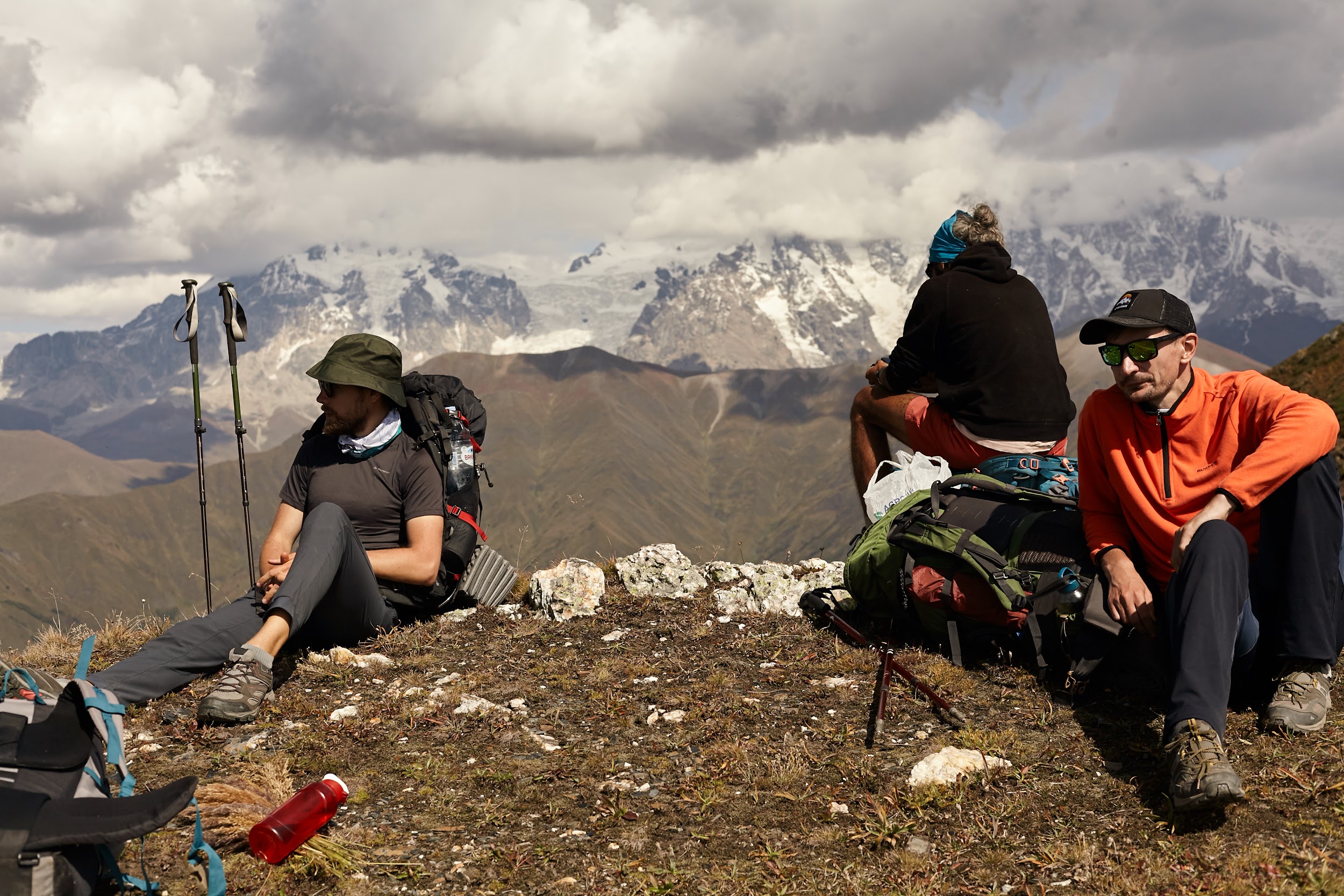 Этот день подарил нам много красивых кадров: траверс западного отрога вершины Тетнульд - панорама кавказских гор - Ушба, Башиль, Тихтинген, Сванетский хребет и самый восхитительный закат.