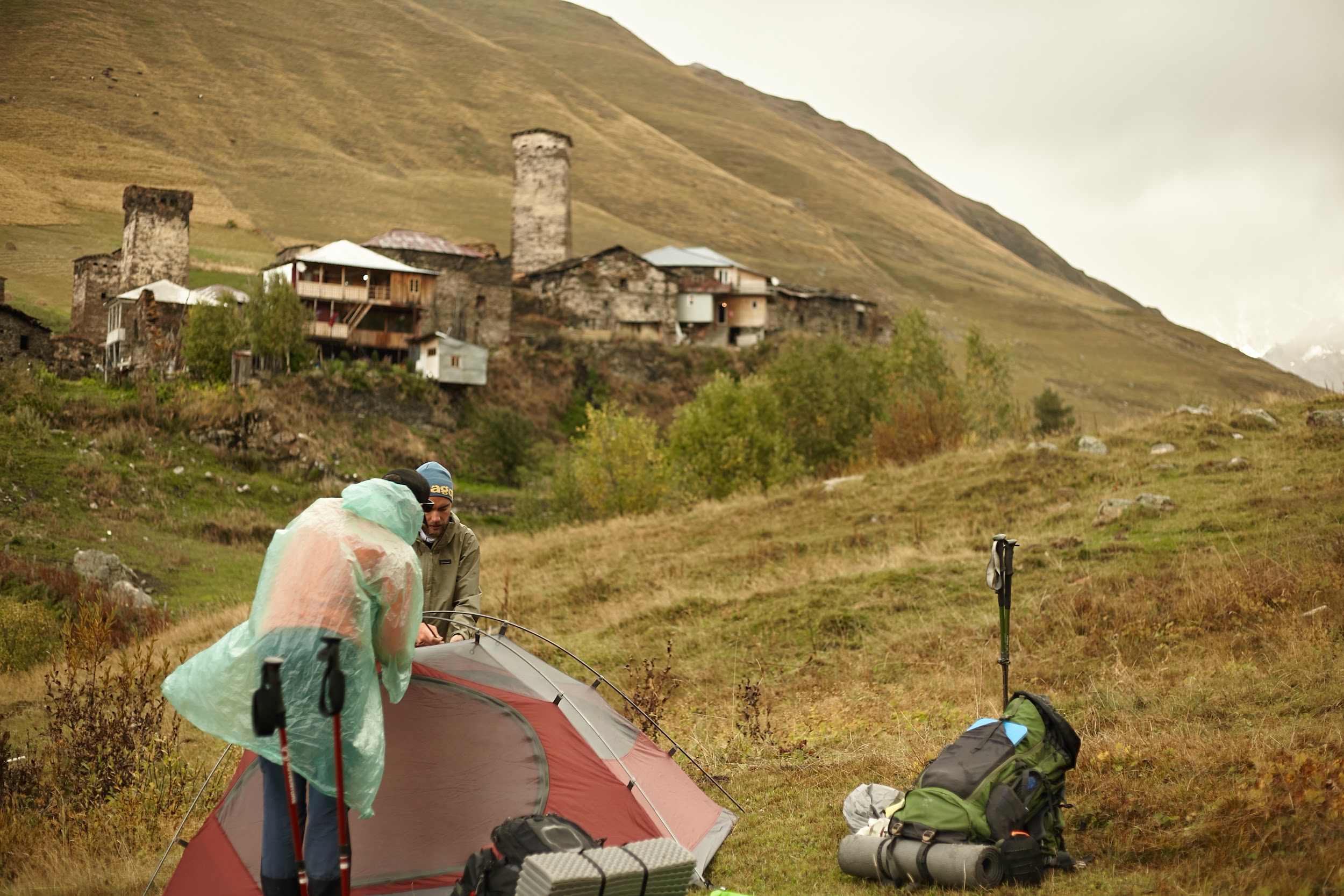 Мы поставили лагерь и решаем пройтись до поселка.