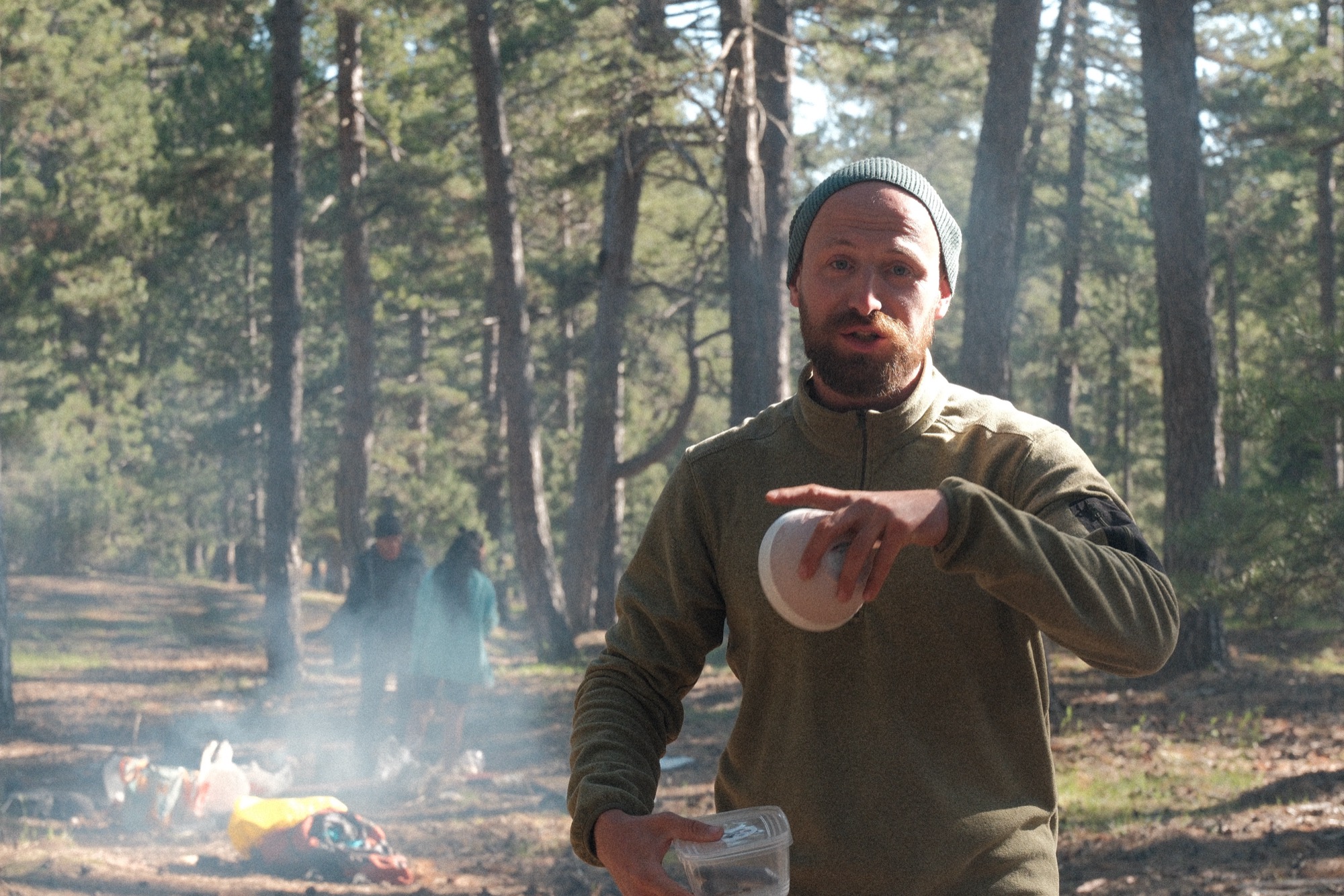 Привальнули у красивого дерева. Вове было тяжело, что он списывал на возраст, а не физическое состояние. Линар, наш дорогой пироман, спалил брошенный турками пластик. Палили всякое в весеннем лесу.