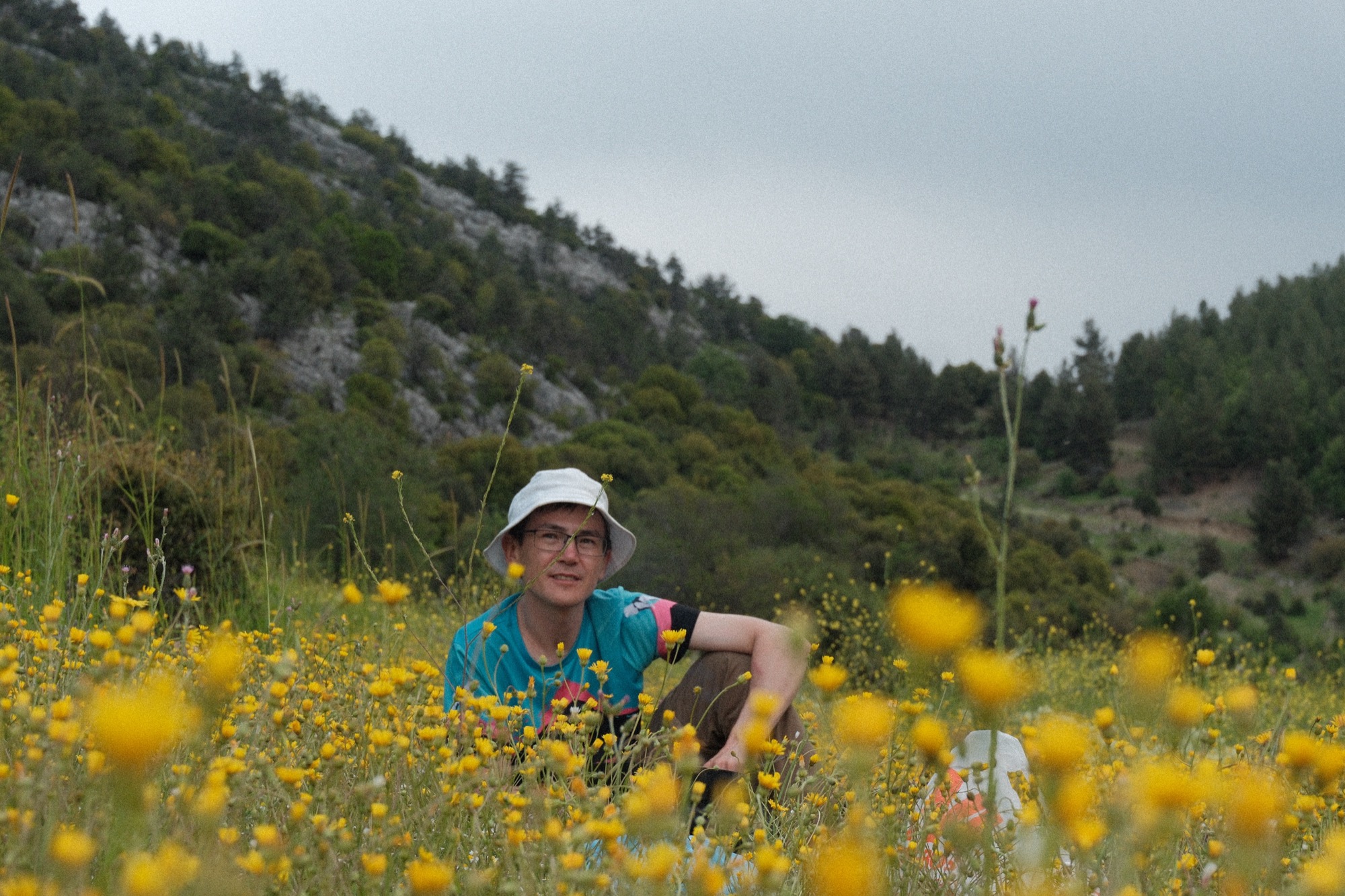 Спуск был великолепный! Не ожидал, что получу такое колоссальное удовольствие на маршруте, предыдущие пять дней не обещали такого кайфа, как то, что случилось сегодня. Было скалолазание, сыпуха, скалы сменялись разными видами леса. В какой-то момент свернул не туда и по ковру из иголок, огибая поваленные деревья, вышел к обрыву. Заплутал, что тоже подкинуло пару монет в копилку чистейшего удовольствия. Ощущение, что я животное, которое сломало клетку и оказалось в естественной среде обитания. Запах сводил с ума. Ноги сами выбирали путь, а голова улетела на другую планету. Из сладкого сна вывели Юра с Нари. Группа собирается. Скоро обед!