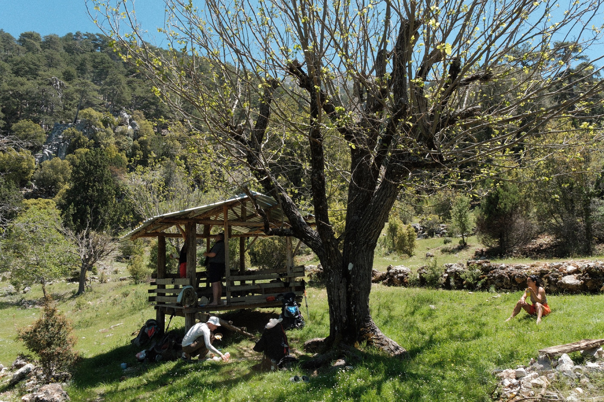 Спустились к альфа-платану у горной реки. Под ним точно когда-то купались греки, римляне, османы и прочие, кто еще жил и завоевывал эти земли. Под ним точно в виде обезумевших от удовольствия голых обезьян купались в кристально чистой воде мы сейчас. Сценки оправданного и великолепного безумия останутся частью памяти на наших телефонах. Было грандиозно. “Максимально” как бы точно выразился Вова.