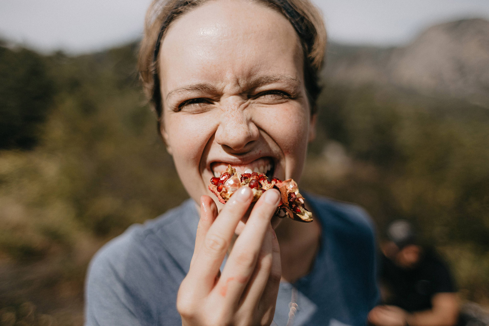 И вот мы уже шагаем по тропе. По пути нам попадается гранатовый сад. Как можно отказаться от такого искушения