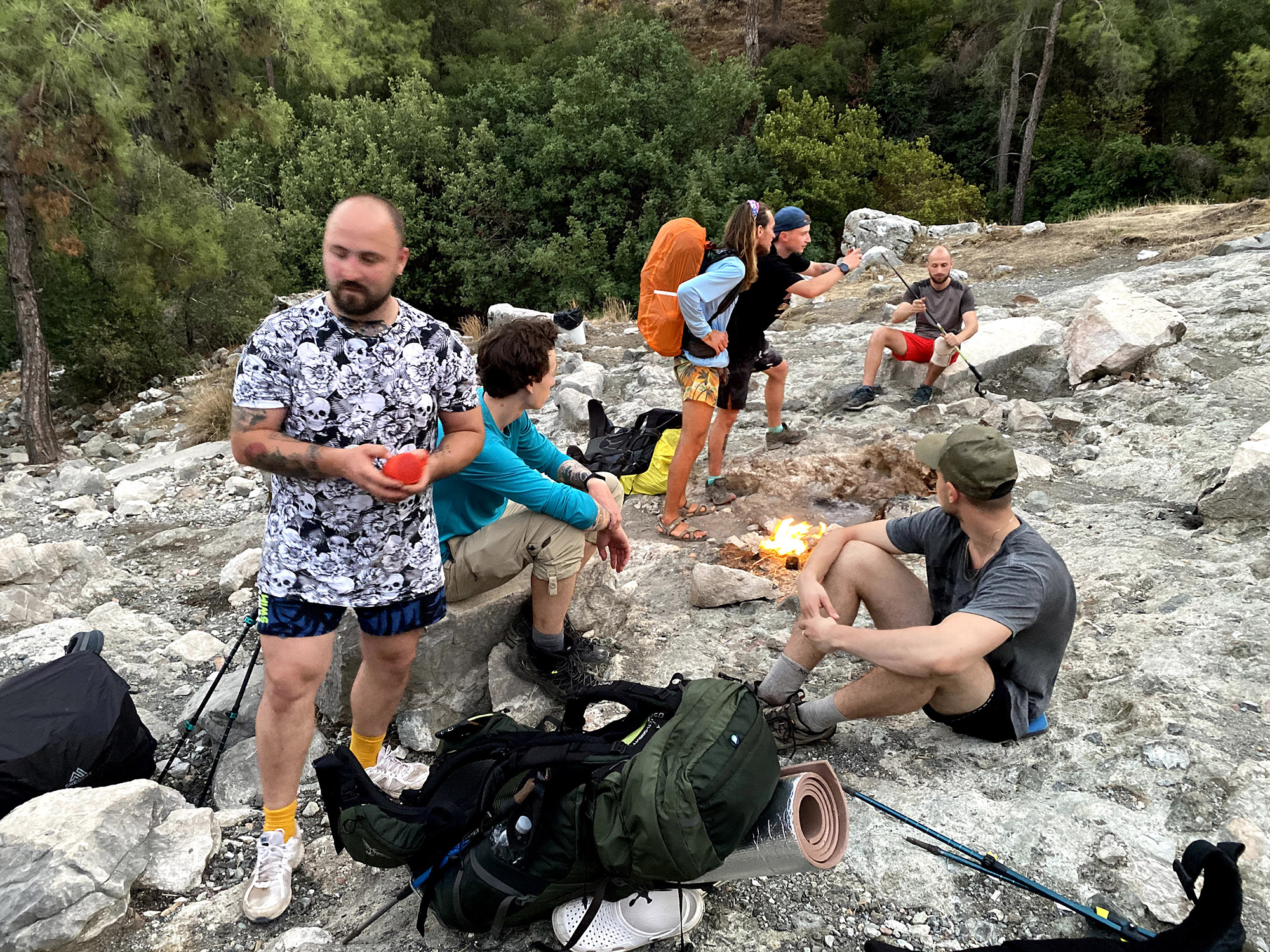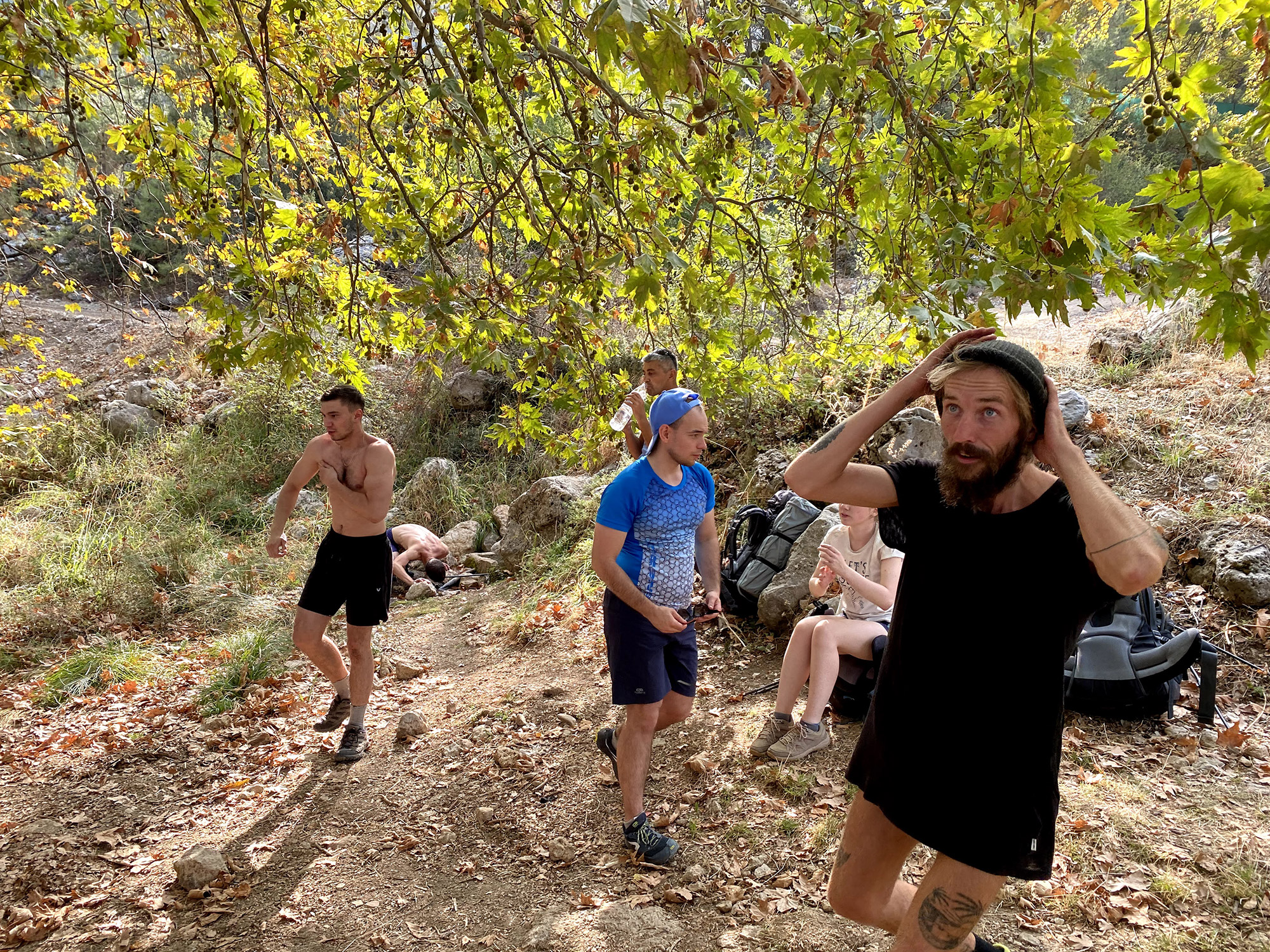 А я достиг первого лагеря, обыскал все кусты - пусто, ничего. Ну думаю, придётся идти в посольство, а пока делают паспорт, поживёт у меня в Фетхие. Немного расстроенный, я побежал обратно. Через час был уже на месте обеда, а к вечеру догнал группу, когда они только пришли на нашу вторую ночевку