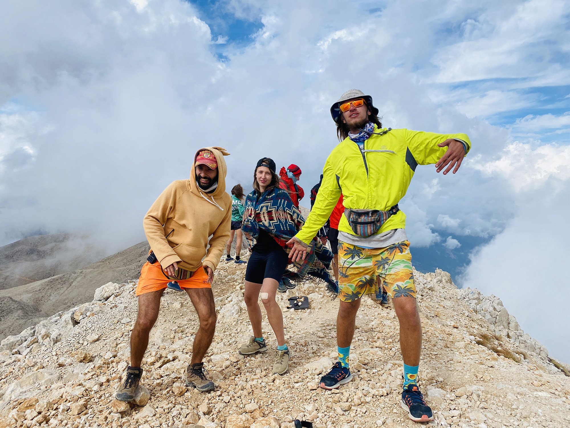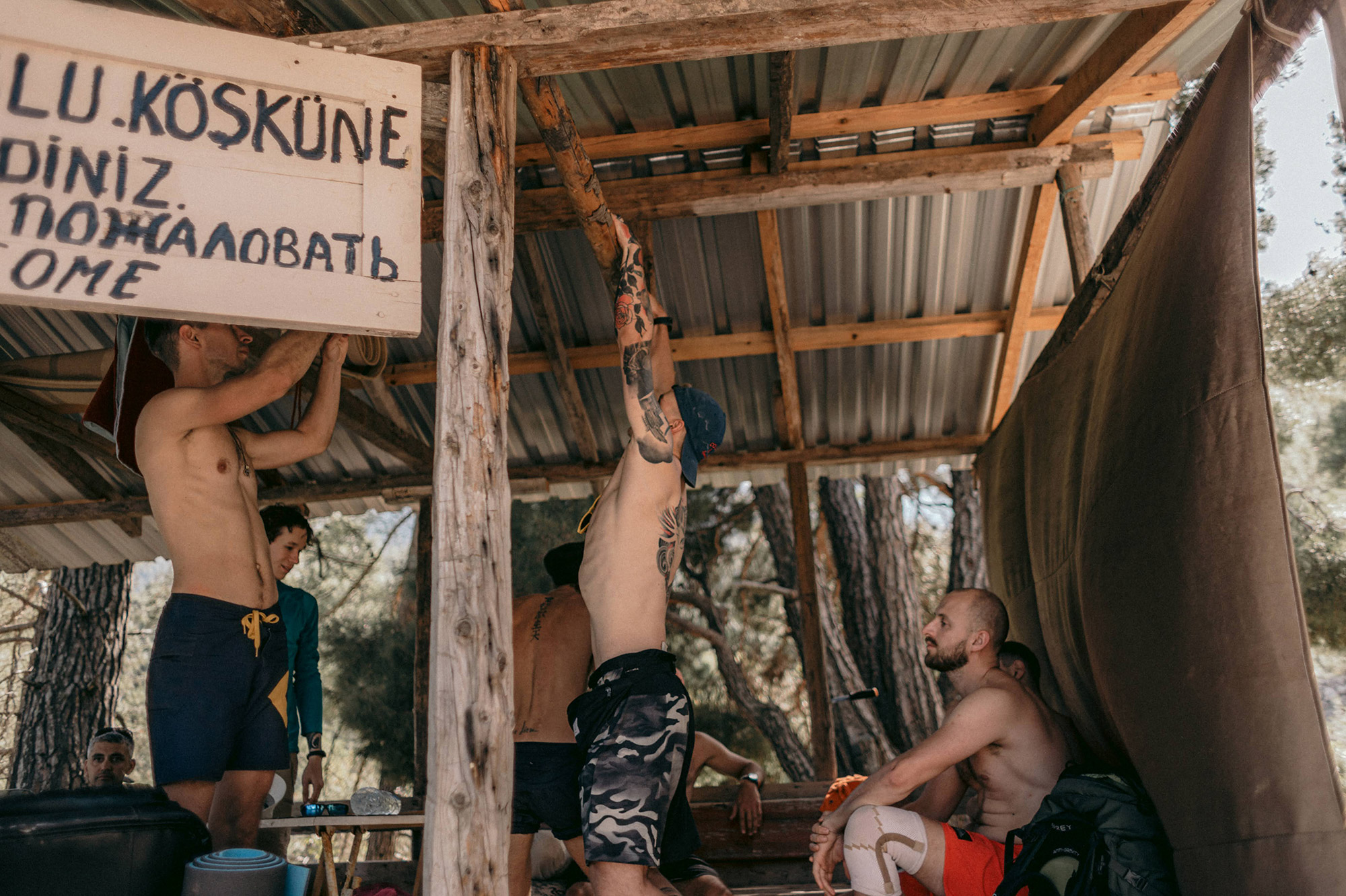 Перед главным подъемом сделали привал на обед. Парни были настолько обессилены, что начали игру в лесенку