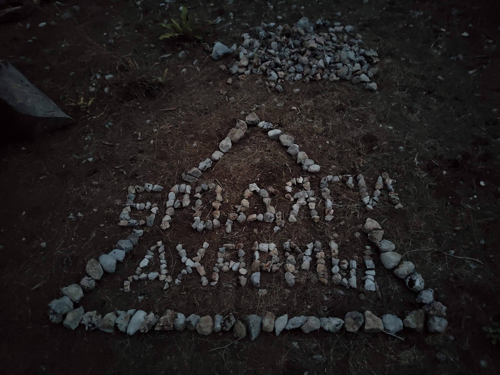 Но наша стоянка была занята и пришлось сделать новый лагерь, который мы назвали "Бродяги Дхармы", обозначив это инсталяцией из камней