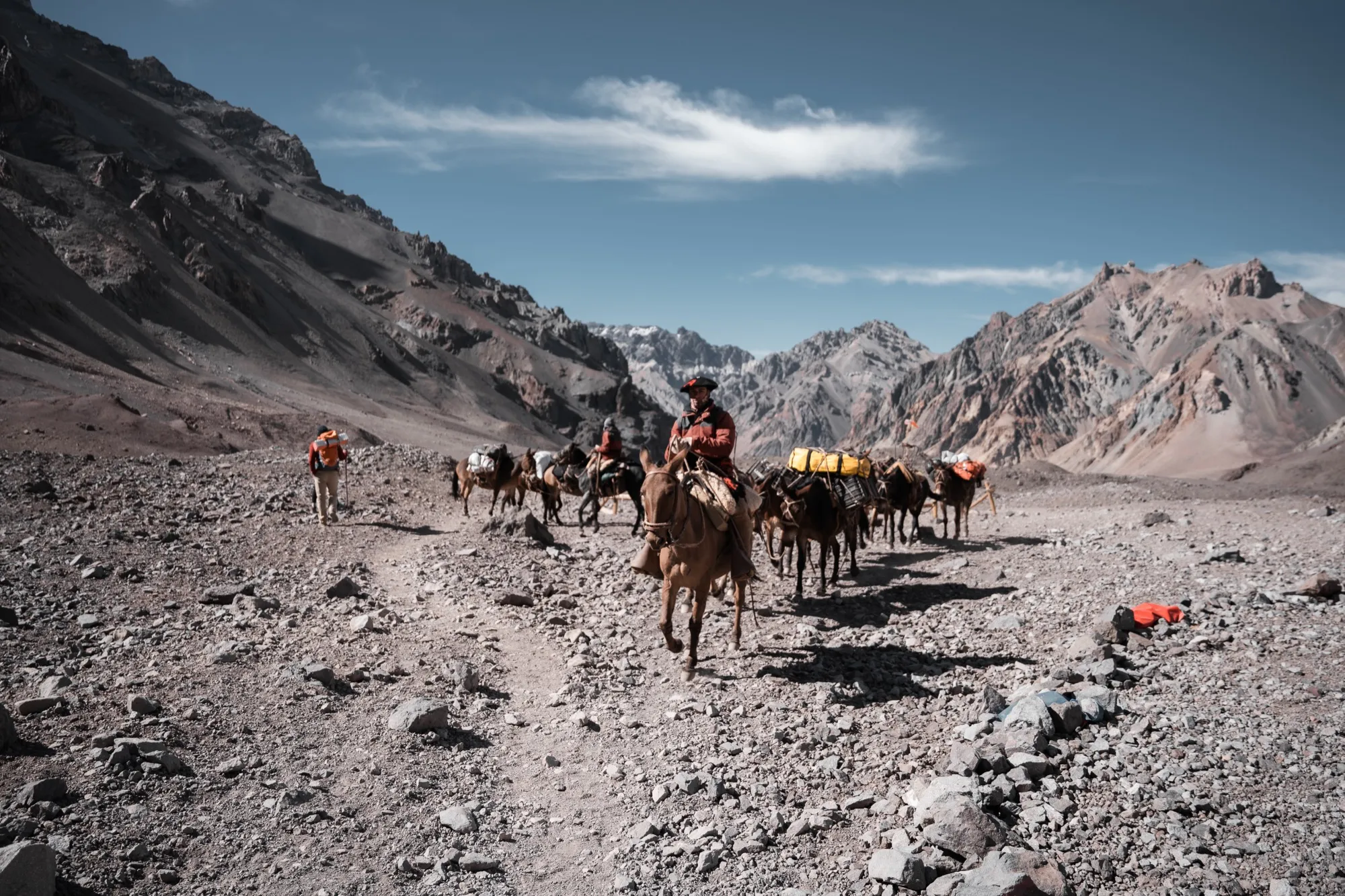 Сегодня целый день идём вниз. Спуск долгий и достаточно утомительный. Но с каждым шагом мы будем ближе к долгожданной зелёной природе и комфорту. А оборачиваясь назад, будет тяжело вериться, что всего сутки назад мы были на самой высокой вершине Южного и Западного полушарий Земли. В этот день есть вариант улететь в лагерь Confluencia (3390м) или прямо в Пенитентес на вертолёте, стоимость удовольствия от 400$. Праздничный ужин и бутылочка вина в честь восхождения. Последняя ночёвка в горах