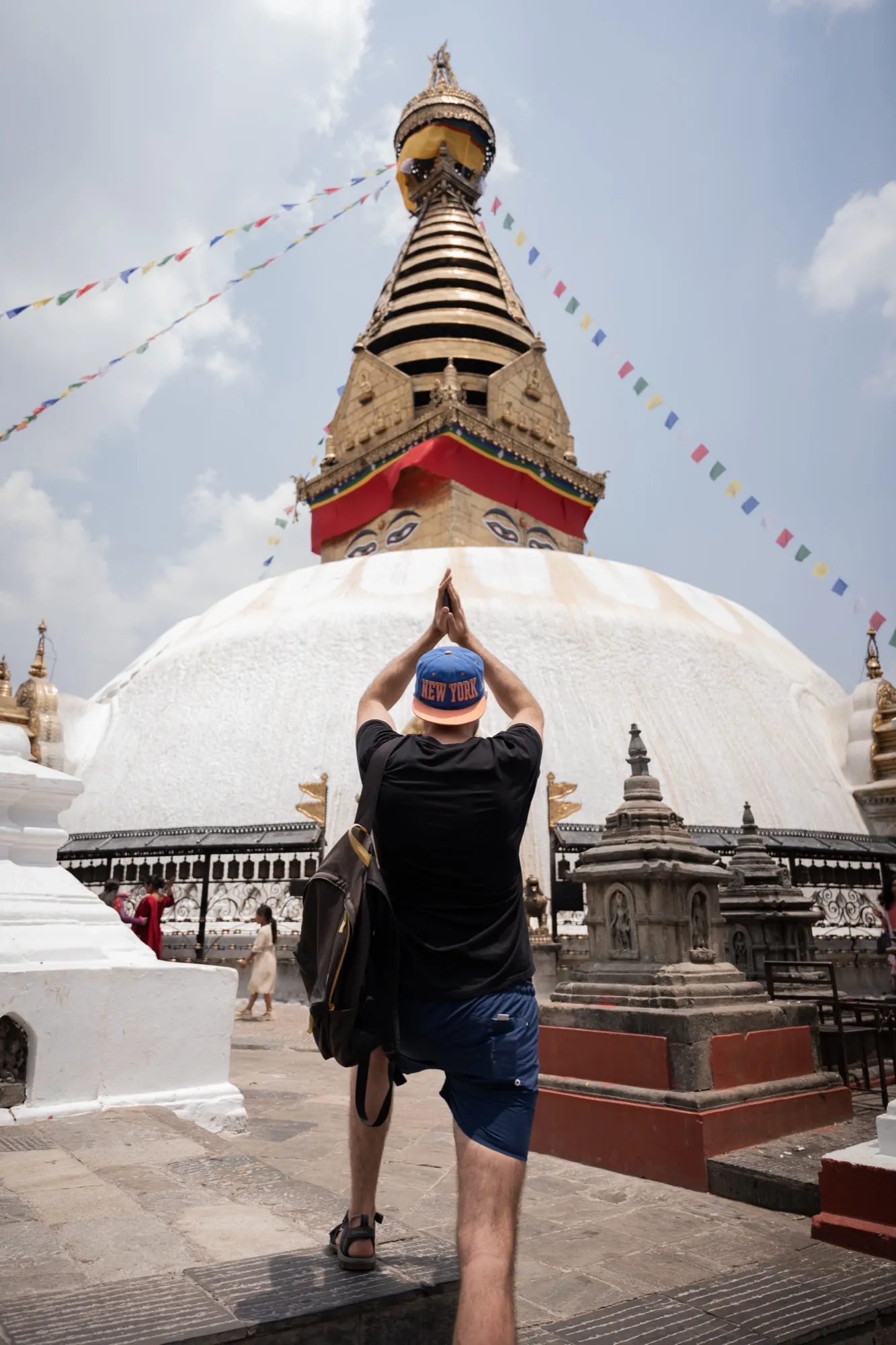 В течении дня собираемся в Катманду. Даже лучше прилететь за день, чтобы успеть посмотреть достопримечательности Катманду, такие как площадь Дурбар или храмовый комплекс Сваянбунатх. А ещё в Катманду можно часами ходить по туристическому району Тамель, где на каждом шагу есть магазинчики с туристическим снаряжением и сувенирами. По идеи, всё необходимое снаряжение можно купить прямо здесь: спальник, мембрану, пуховку, палки, цепи и всю необходимую одежду, типа термобелья, шорт, носков и футболок.