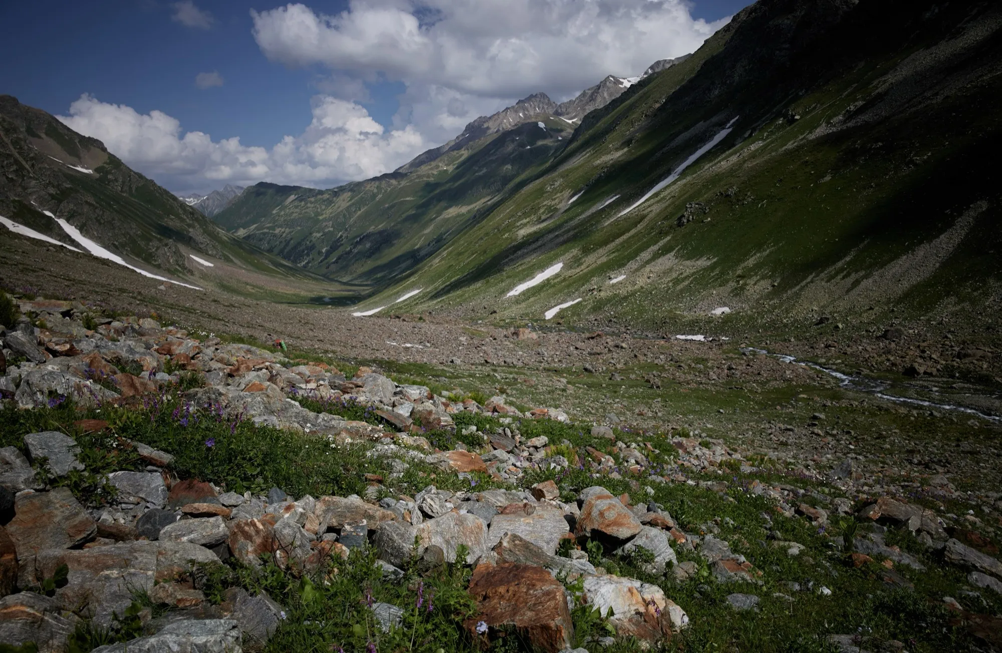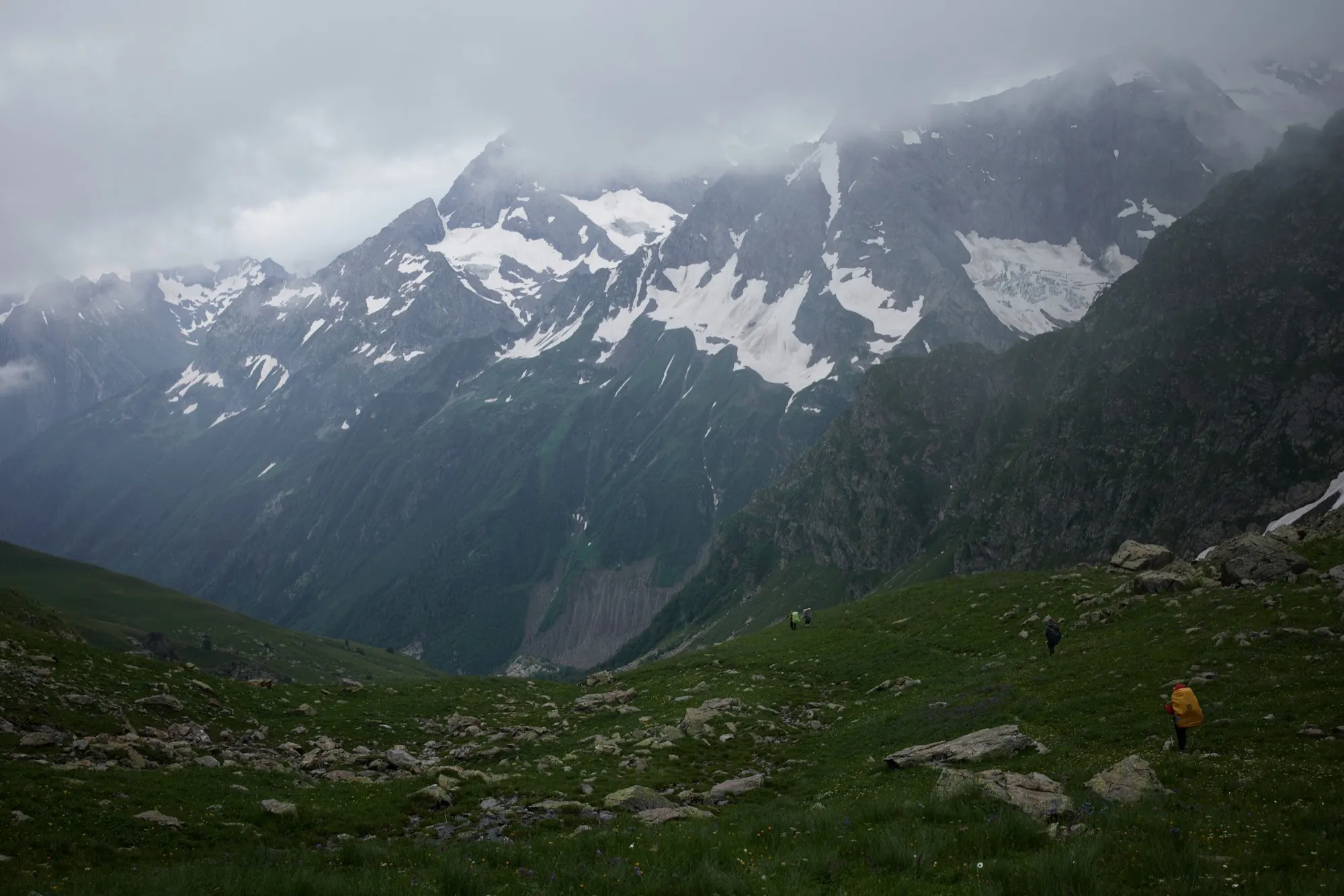 Сегодня нас ждет пер. Алибек - высшая точка нашего похода. За ним одноименный альплагерь. Изначально «Алибек» был палаточным лагерем для альпинистов, горнолыжников и туристов. Во время Великой Отечественной войны в период с августа 1942 по январь 1943 года Домбай был оккупирован немецкими войсками дивизии "Эдельвейс".