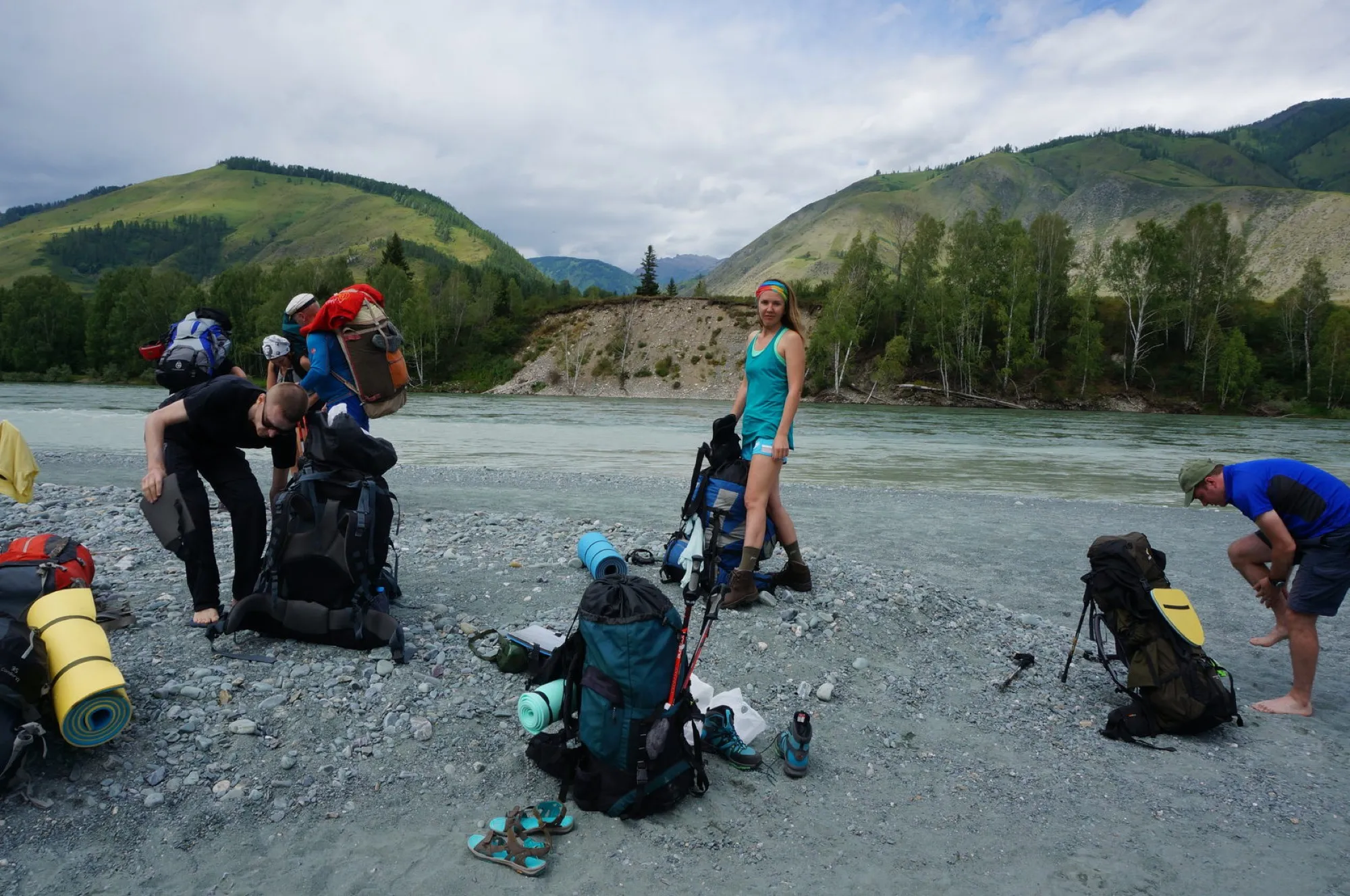 В этот день будет сплав, целью которого является обплытие 500 метрового перевала. По относительно спокойной Катуни можно сплавиться прямо до устья речки Аккем и потом спокойно пойти вдоль нее с плавным подъемом. После сплава нужно будет пройтись несколько километров для привыкания, может быть хватит сил до точки, называемой «Три березы». Время в пути — сплав 2 часа, пеший переход 2-3 часа. Переход за день: 20-30 км