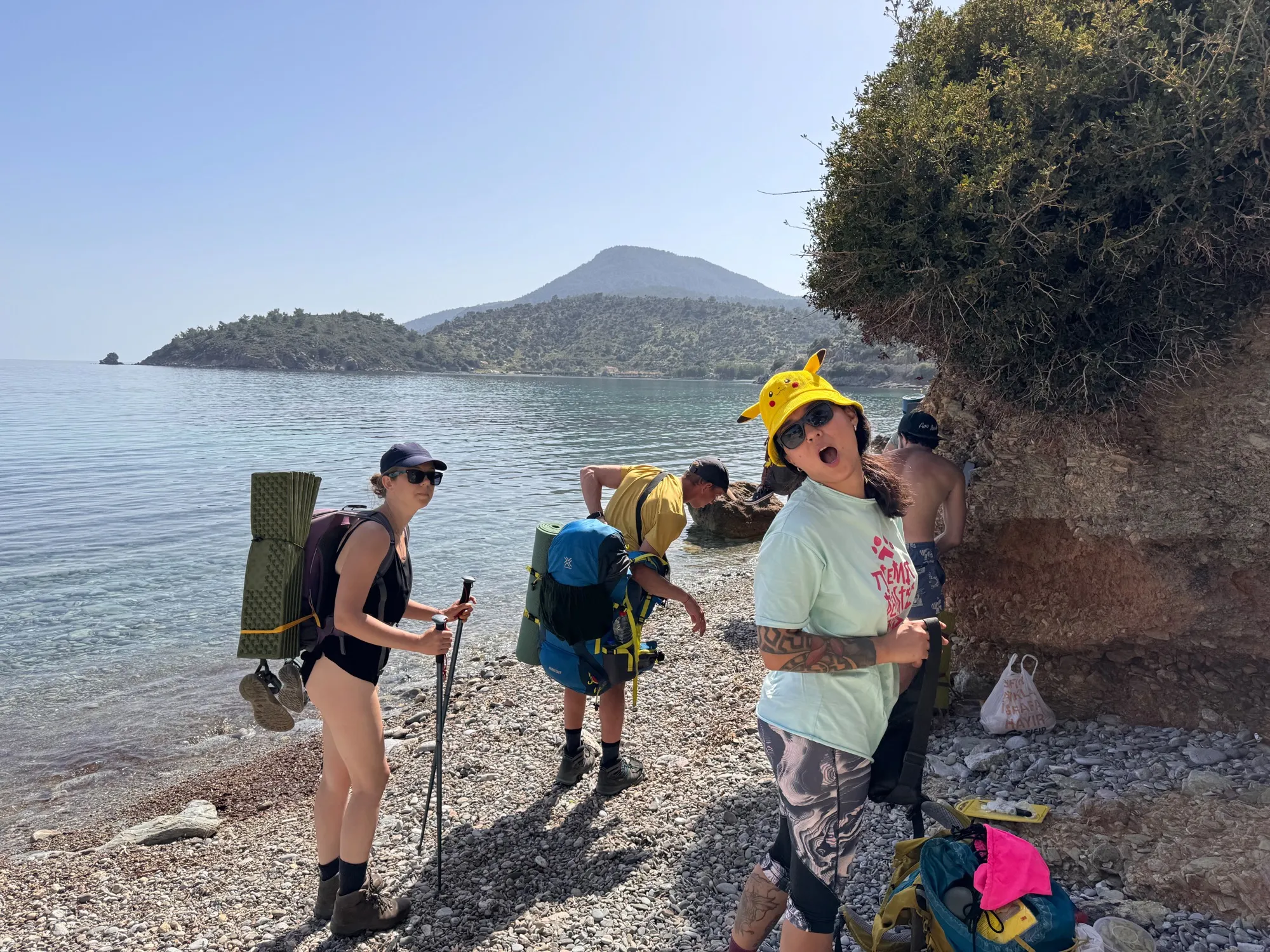 Рано утром завтракаем, грузимся в автобус и едем на старт маршрута. Время в дороге – 1,5 часа. Выходим на маршрут и начинаем путь. Сначала идём по красивой лесной тропе вдоль моря, а затем преодолеваем небольшой перевал. Отличная разминка. Ночуем прямо на пляже в уютной бухточке Домуз Чукуру.