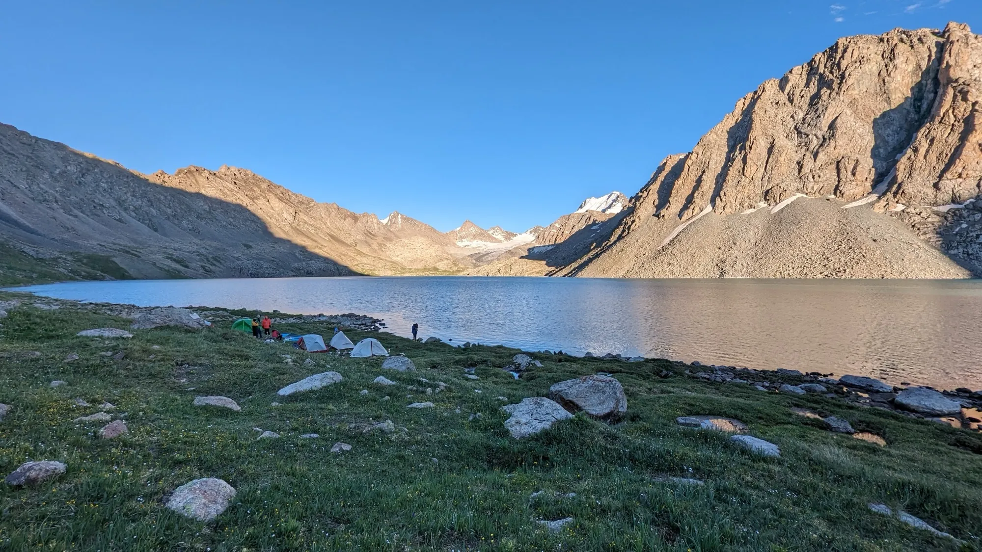 День отдыха. Если погода будет хорошая, мы можем прогуляться до ледника, который стекает в озеро (5 км в одну сторону). Тропа огибает озеро с левой стороны и подходит к пологому леднику, в котором тающая вода образует небольшие ледниковые расщелины. Спускаемся обратно в лагерь. Если есть желание посозерцать природу, то желающие могут остаться в лагере и никуда не ходить и отдохнуть.
