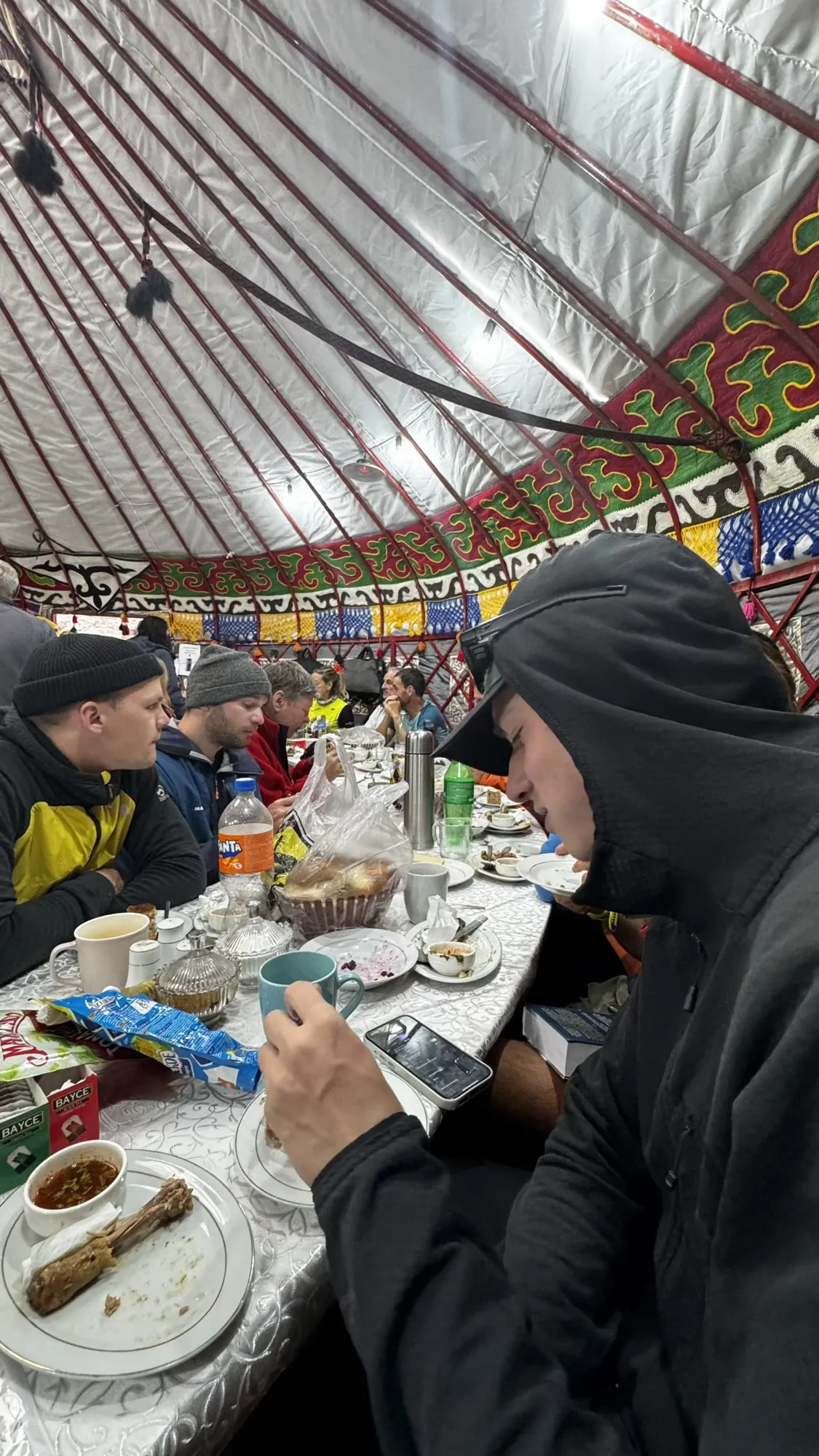 Как же мы будем рады очутиться в лагере, в котором провели 3 дня подготовки к штурму. Здесь и уютные юрты и чай в постоянном доступе. К обеду будем в лагере.