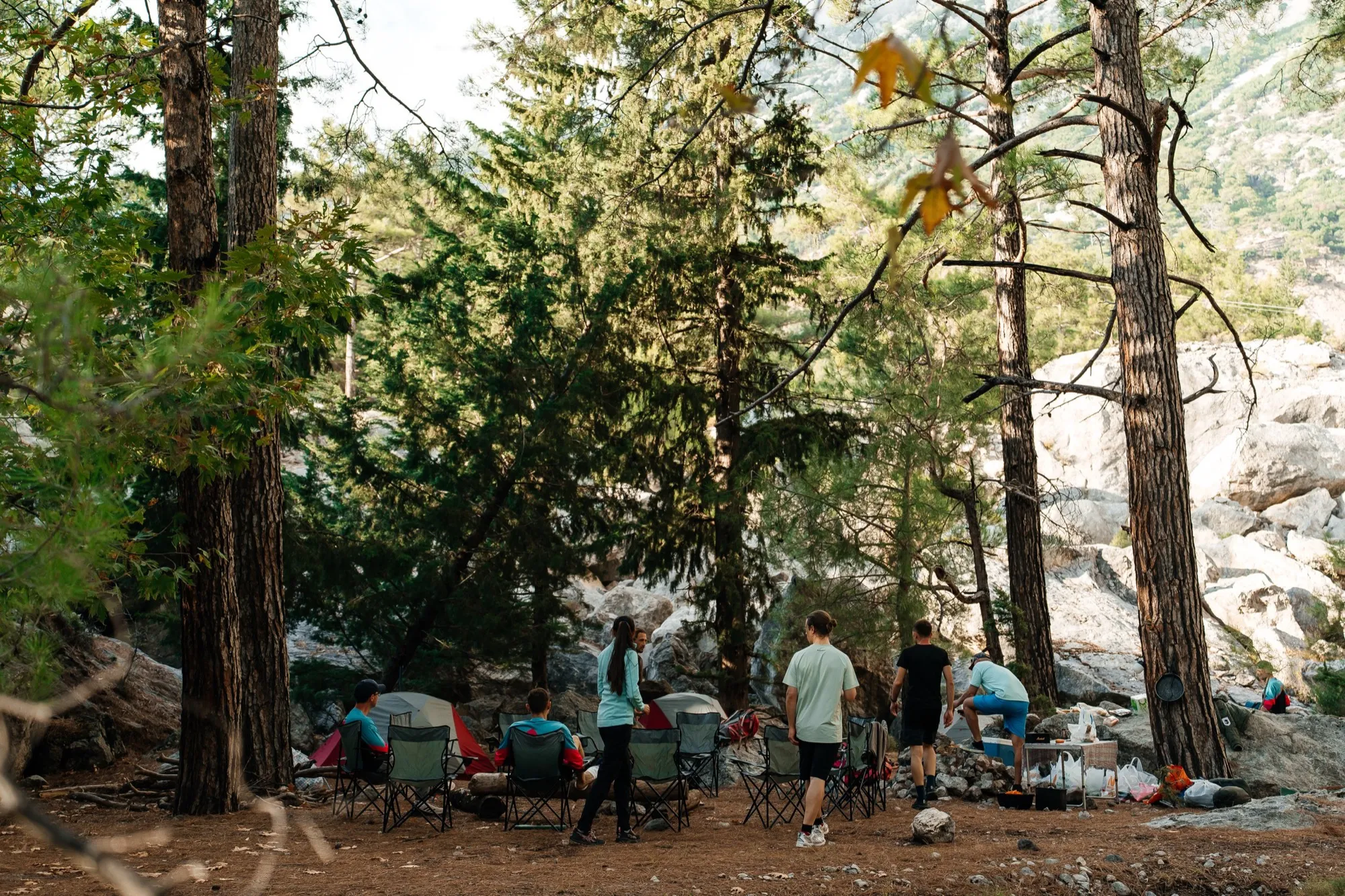 • Всё необходимое специально снаряжение: Палатки, карематы, спальники, баулы/рюкзаки, фонари, трекинговые палки, кружка, ложка, миска и походные стулья