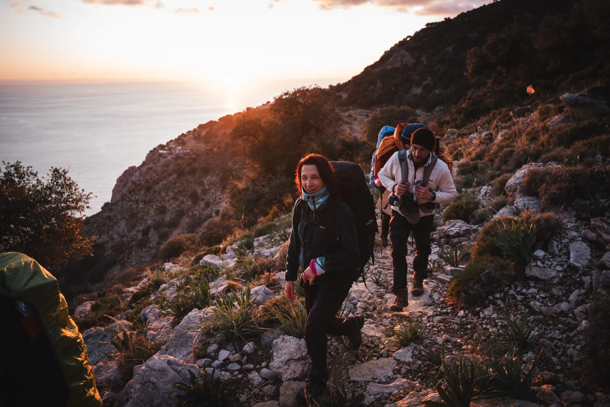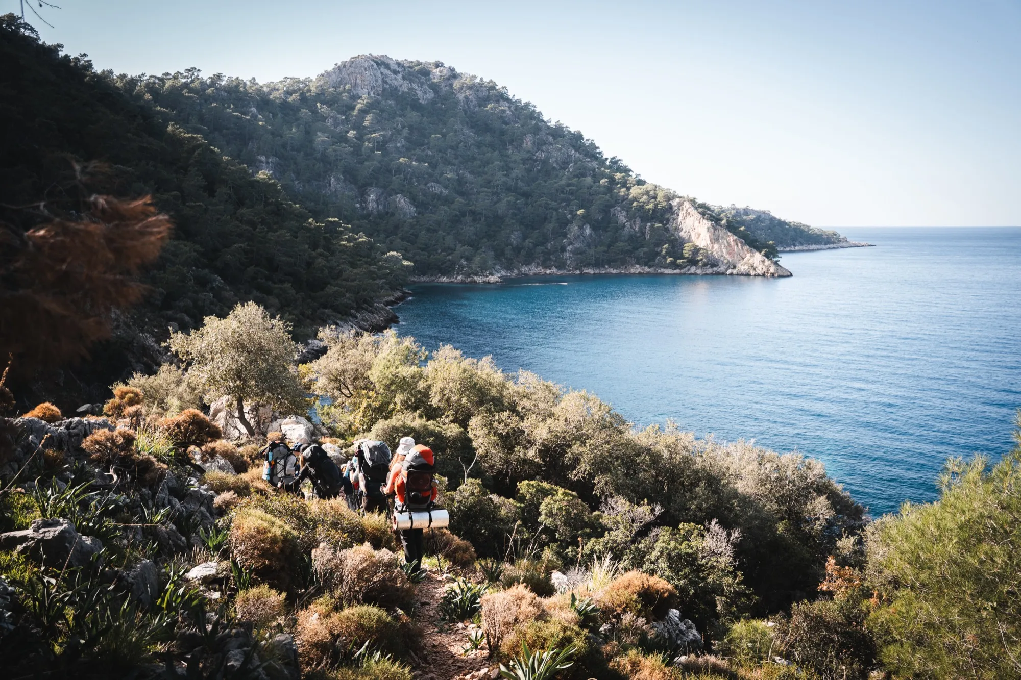 Зайдя еще в одну бухту, поднимаемся с побережья на 400 метров и идём вдоль моря, набрав ещё 400 метров, дойдя до посёлка Gey, там обедаем и дальше выдвигаемся к поселку Бель, где в кемпинге встанем на ночёвку